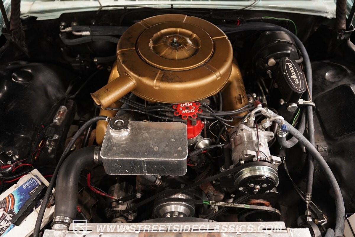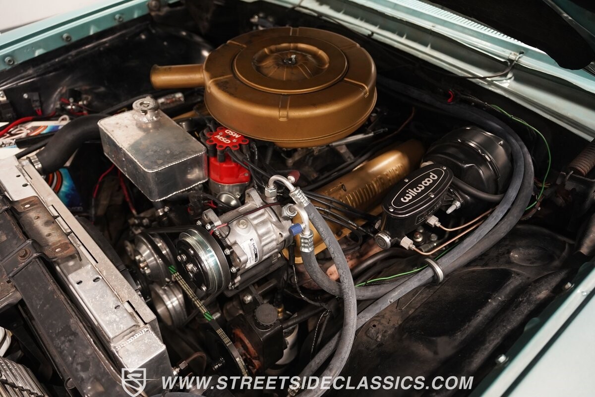 Beneath the sleek exterior lies a 390 V8 engine, believed to be original and paired with a 3-speed automatic Cruise-O-Matic transmission, enhancing its smooth yet responsive drive. The engine bay boasts updates including new plugs and wires, a high flow water pump, and an upgraded cooling system with a Champion aluminum radiator. The Galaxie 500 is equipped with power disc brakes all around, ensuring superior stopping power with modern enhancements like QA1 adjustable shocks and tubular control arms, ensuring every ride is as secure as it is enjoyable.