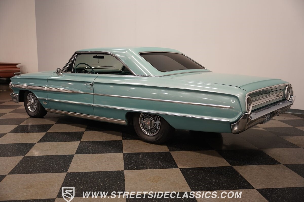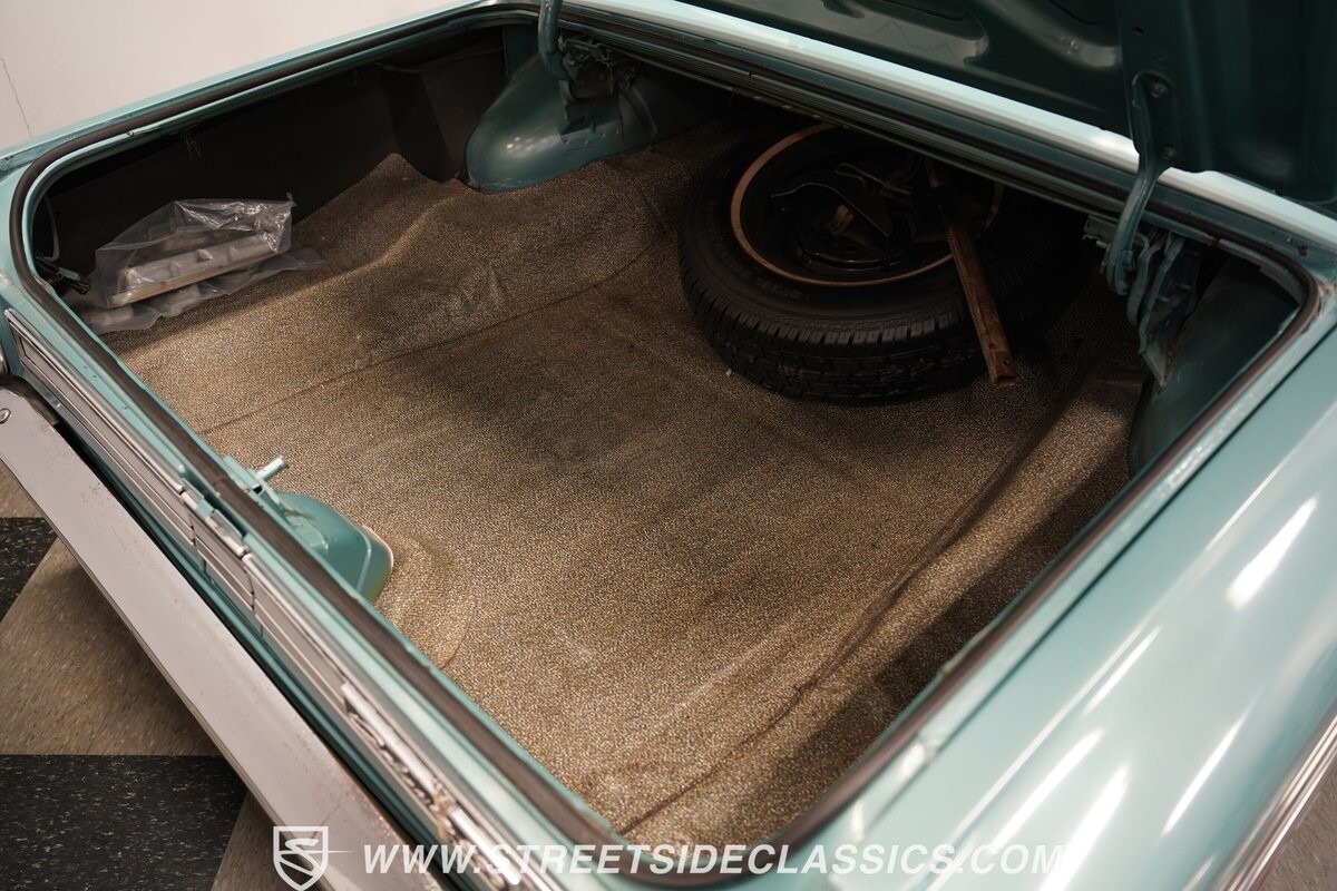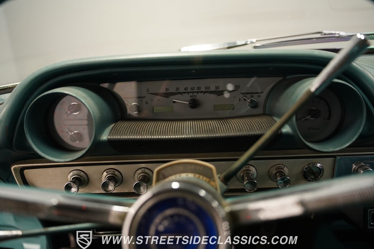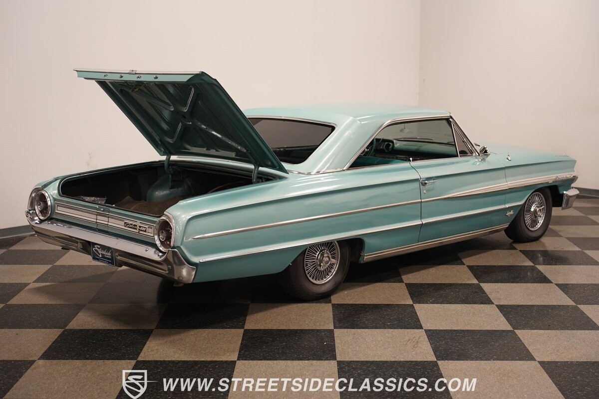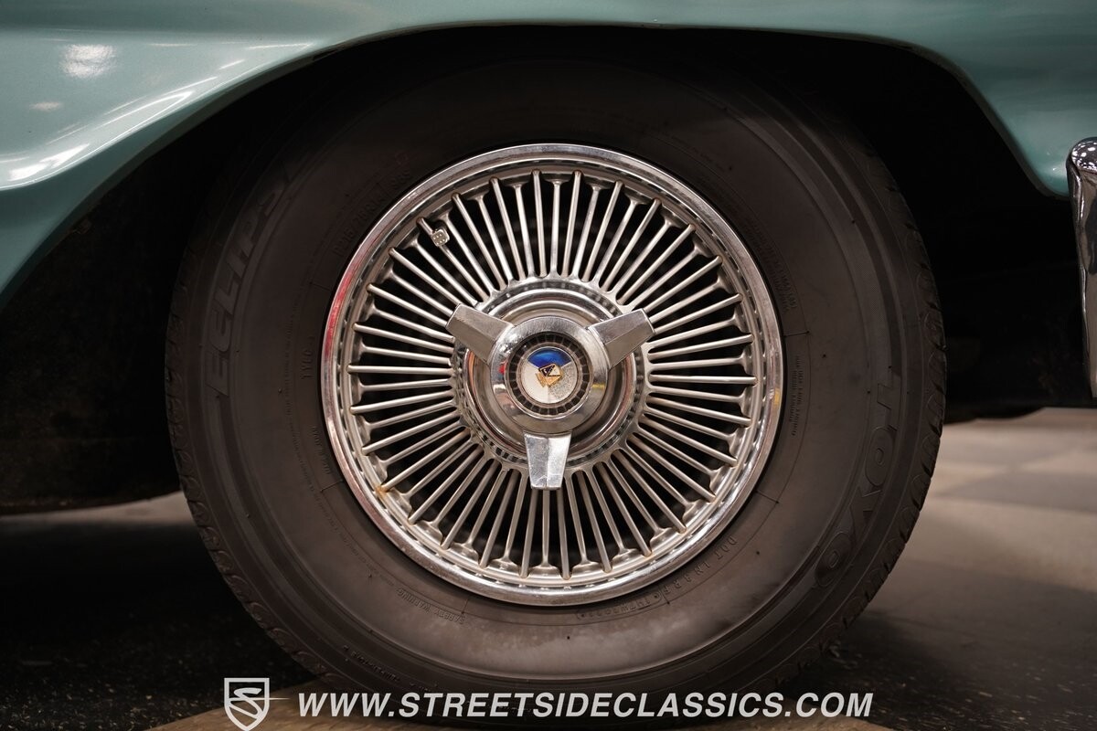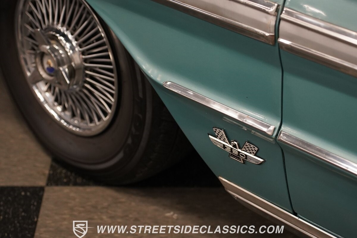 Step inside this Ford Galaxie 500 and you're enveloped in a turquoise realm that immediately sets a retro tone, thanks to original vinyl bench seats and matching door panels. Modern touches like a new custom center console equipped with USB ports, Dakota digital gauges, and an Alpine sound system blend seamlessly, enhancing the cabin's functionality. With Power steering it's got the right mix of original and modern to let you cruise in comfort.