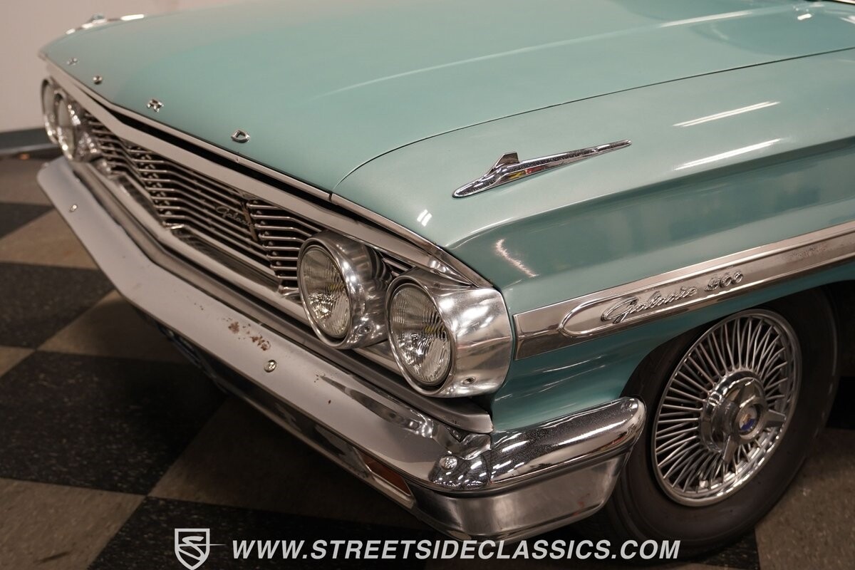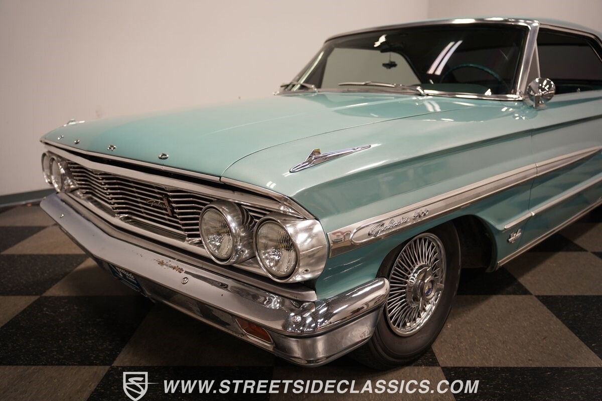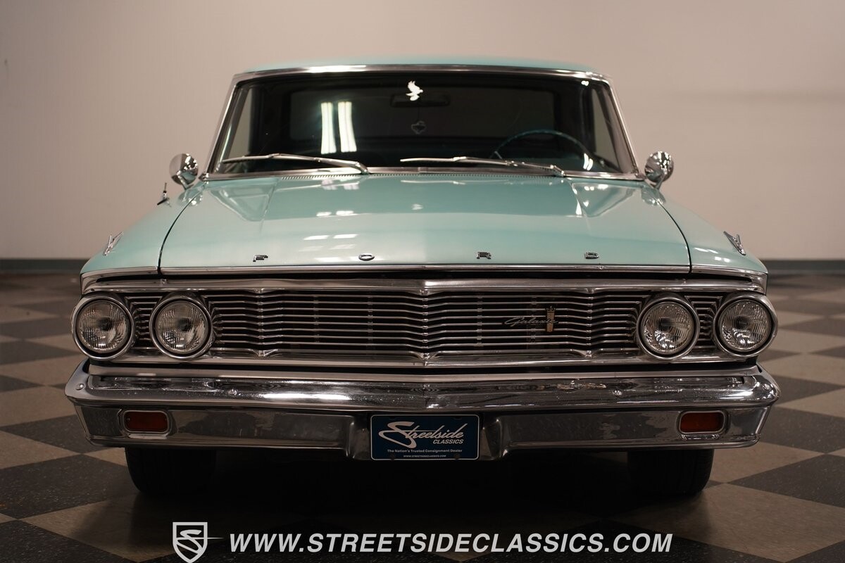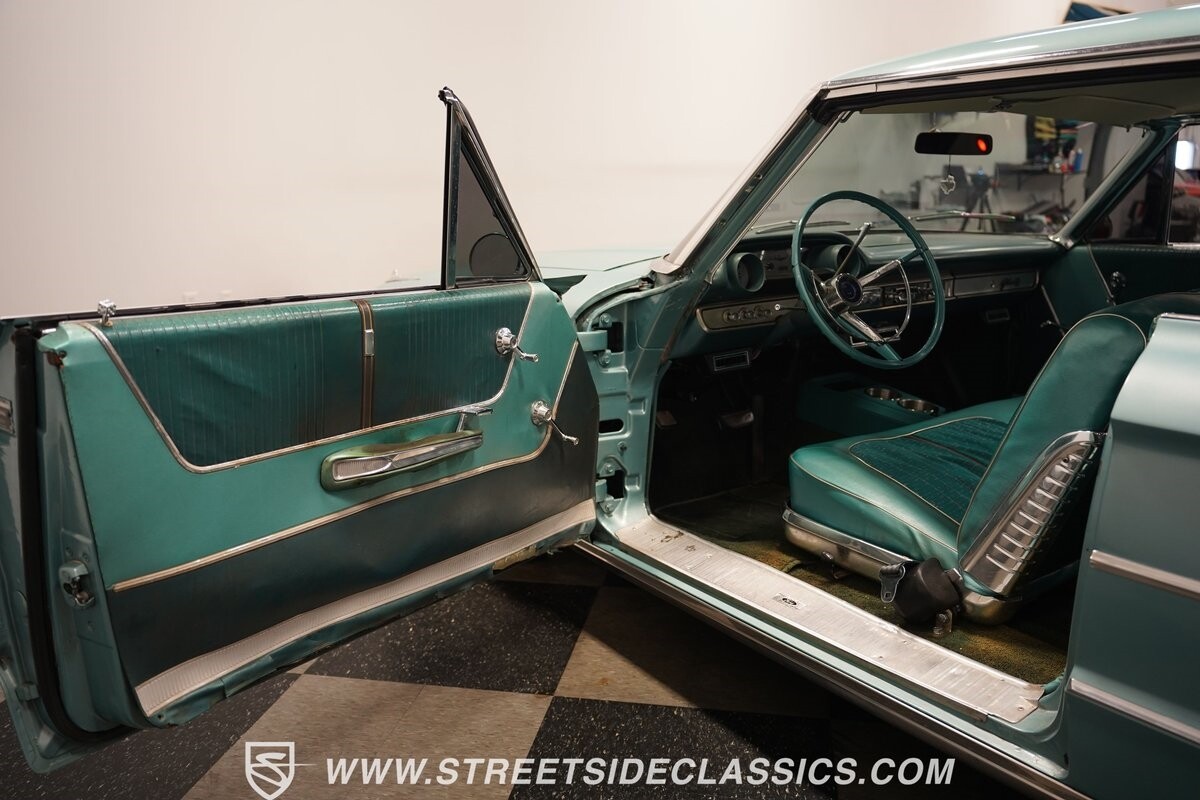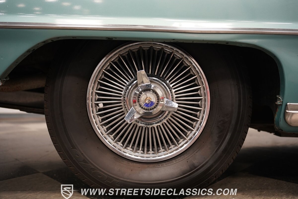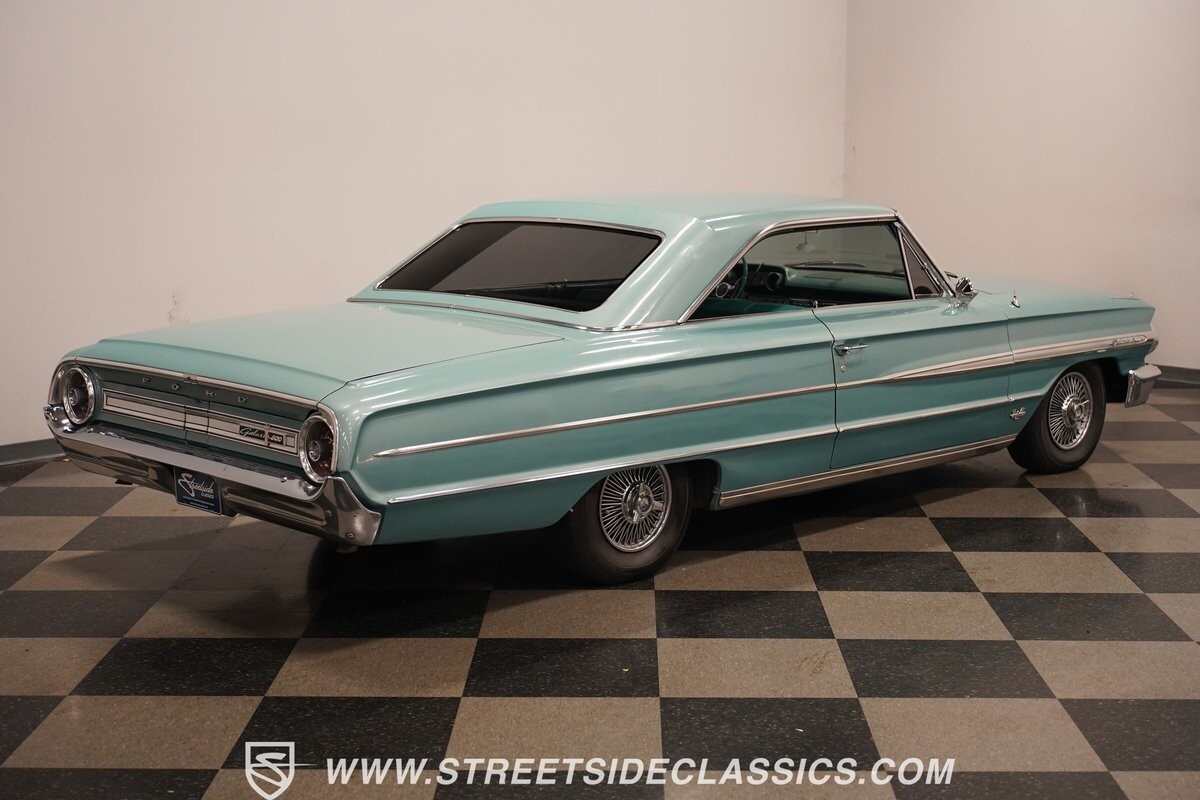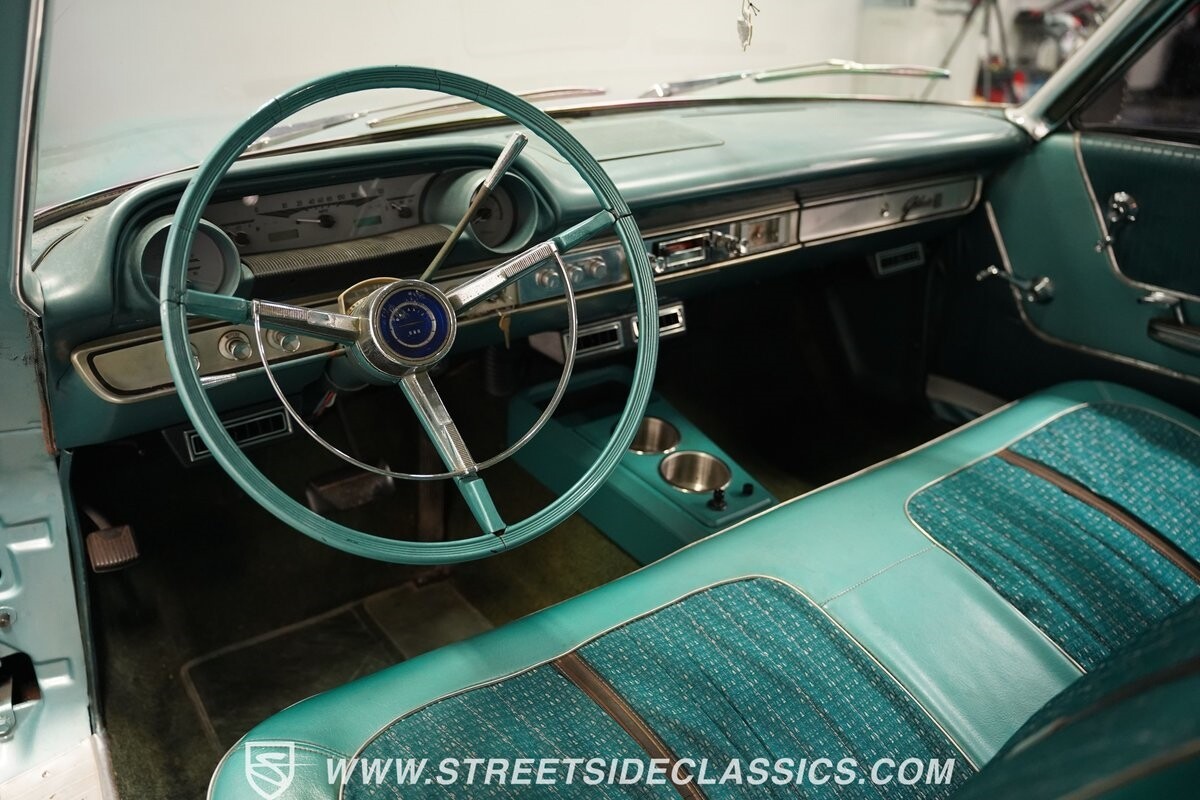 Step inside this Ford Galaxie 500 and you're enveloped in a turquoise realm that immediately sets a retro tone, thanks to original vinyl bench seats and matching door panels. Modern touches like a new custom center console equipped with USB ports, Dakota digital gauges, and an Alpine sound system blend seamlessly, enhancing the cabin's functionality. With Power steering it's got the right mix of original and modern to let you cruise in comfort.