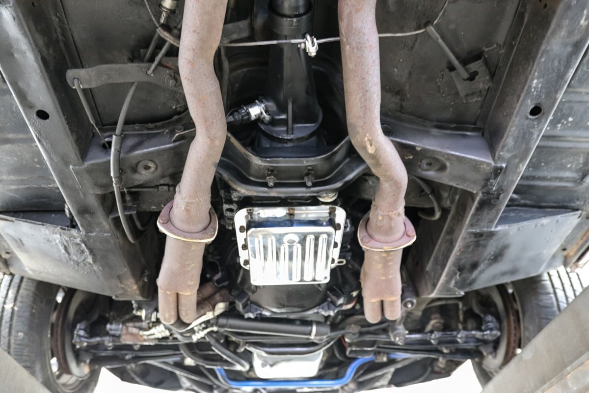 The 1967 Mustang is a revered model in automotive history, known for its performance and design. This example is equipped with 14-inch Keystone chrome wheels that enhance its classic look. The Edelbrock intake and carburetor, along with long tube headers and dual exhaust, ensure that this Mustang not only looks good but performs exceptionally well. The MSD distributor and chrome valve covers add a touch of modern reliability and style to this vintage engine bay.