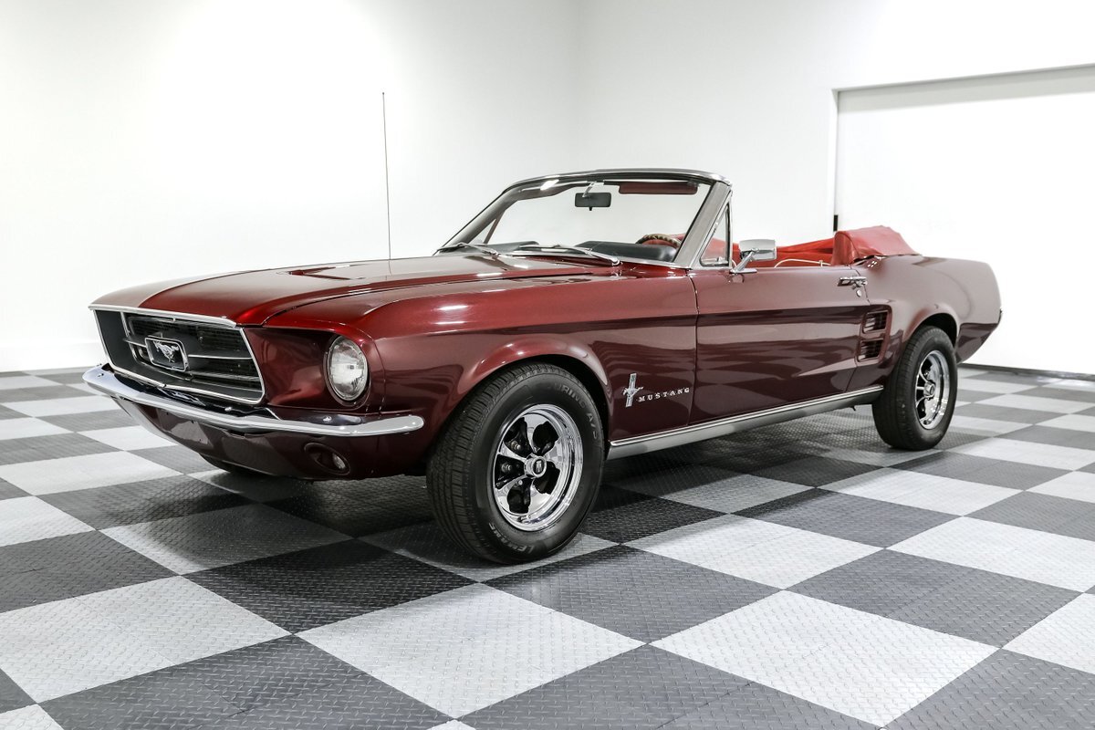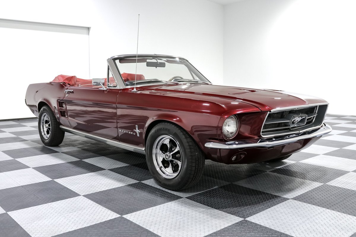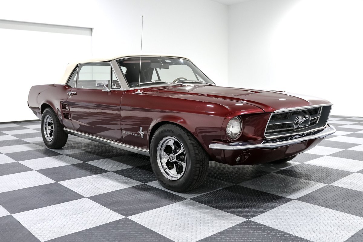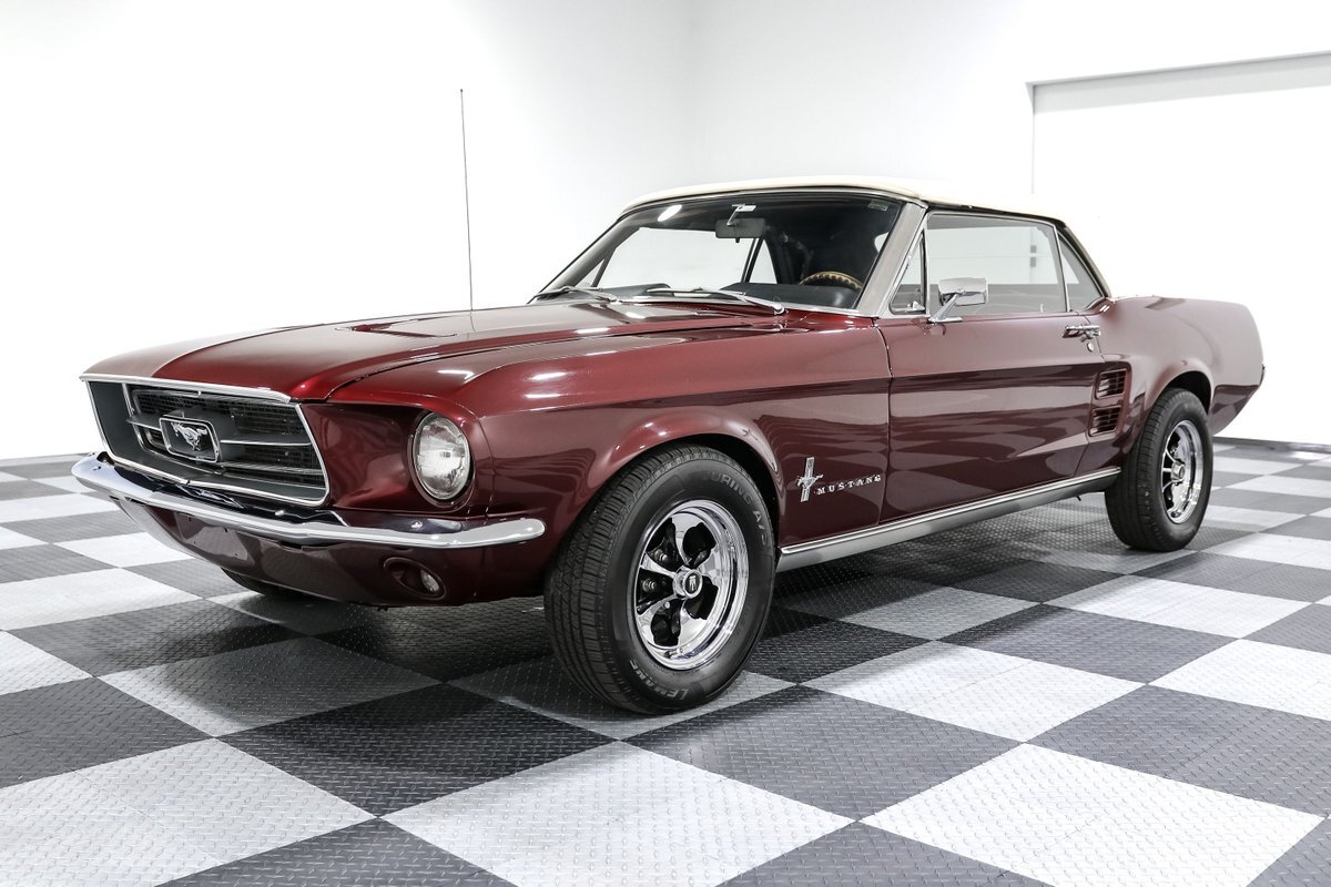 Get ready to cruise in style with this 1967 Ford Mustang Convertible, a true icon of American muscle and elegance. Cloaked in a rich Maroon exterior and featuring a matching Maroon vinyl interior, this Mustang is a standout classic that exudes timeless appeal. Under the hood lies a potent 289CI Ford V8 engine, paired with a smooth C-4 automatic transmission, delivering the perfect blend of power and drivability.