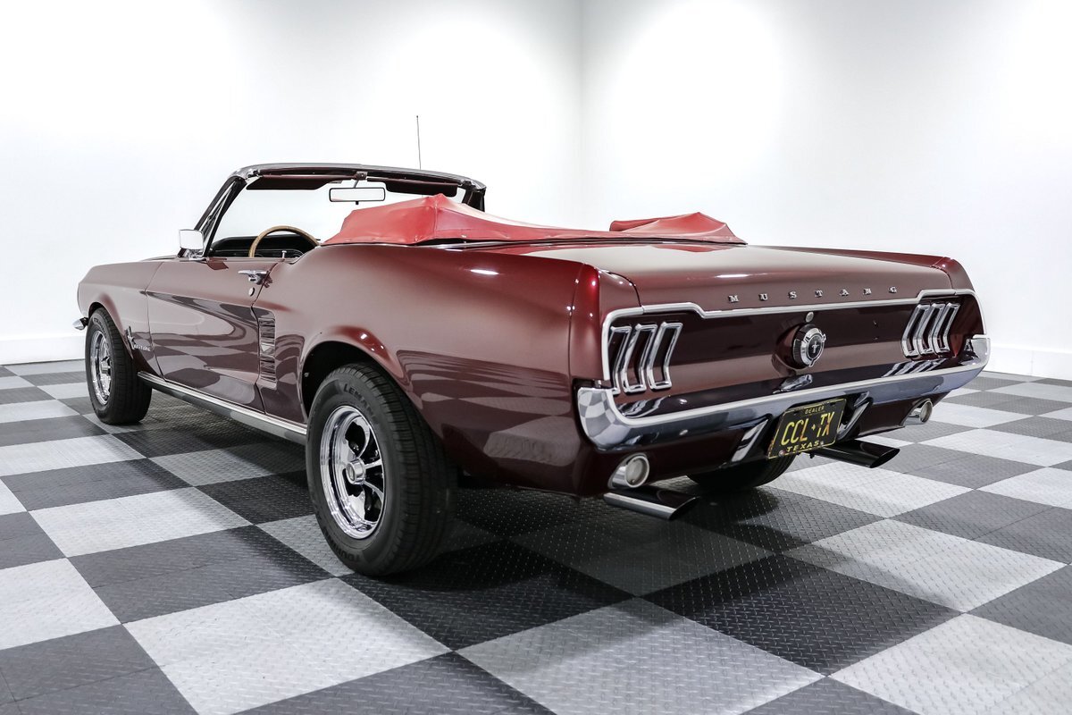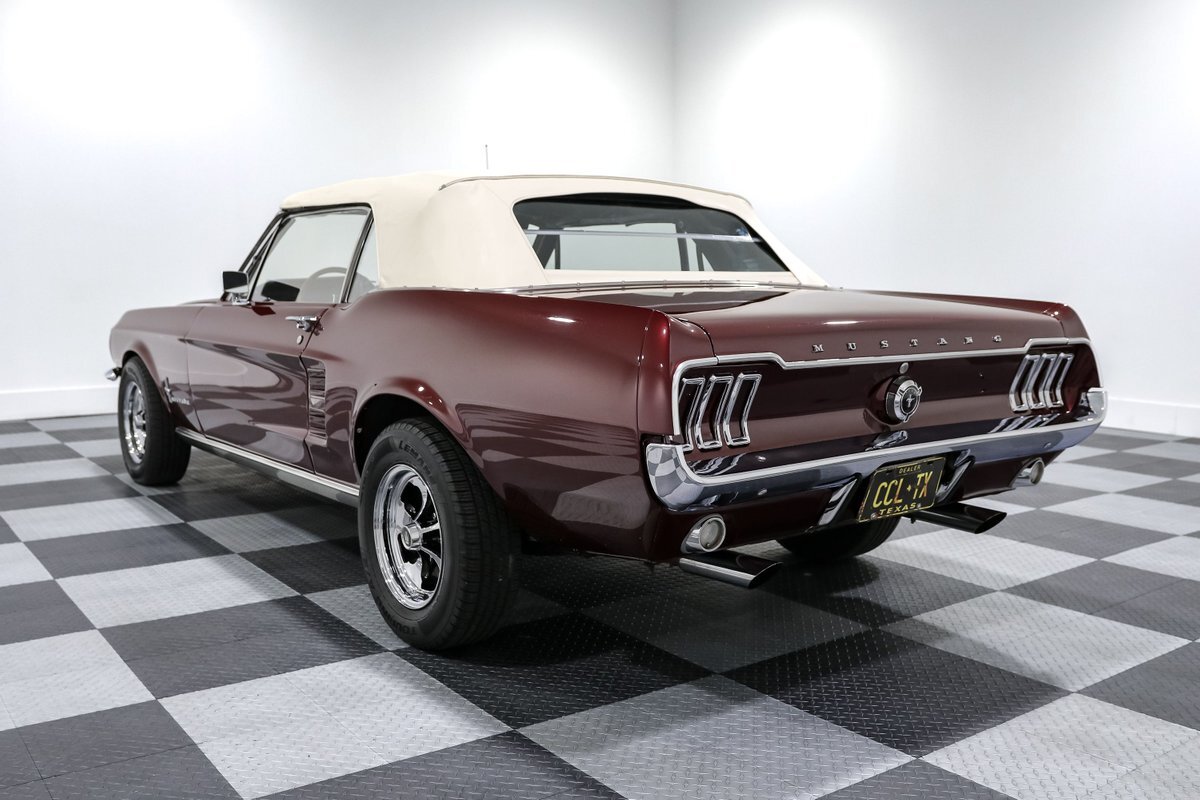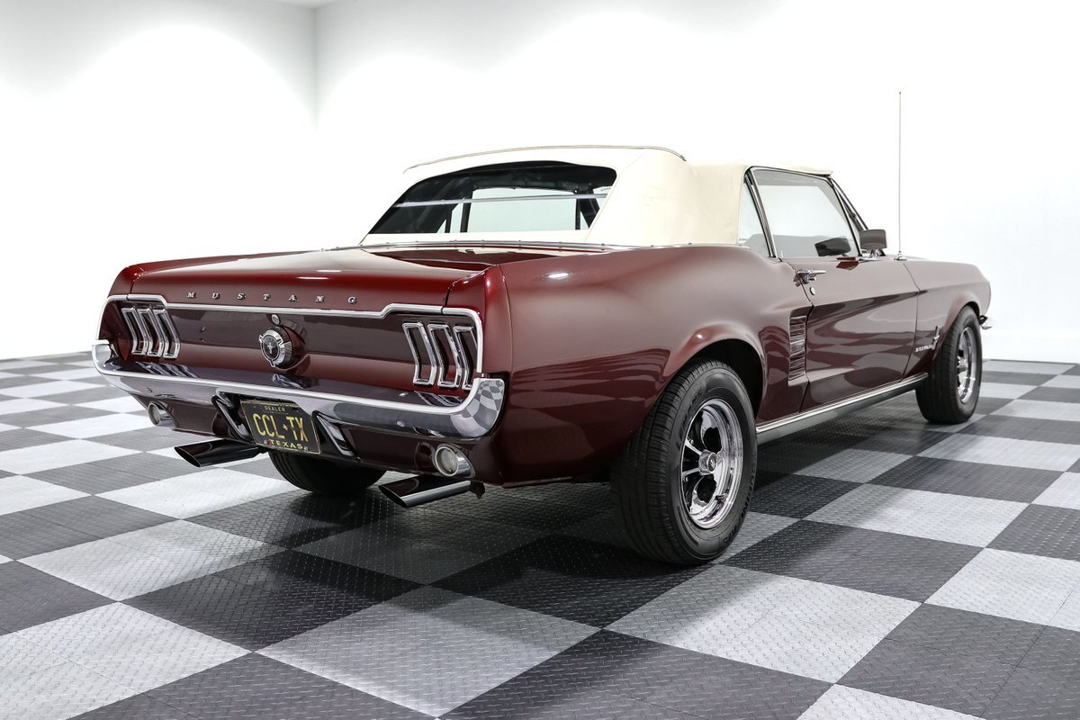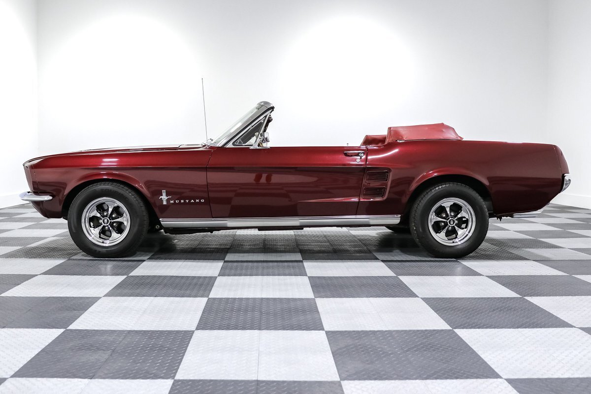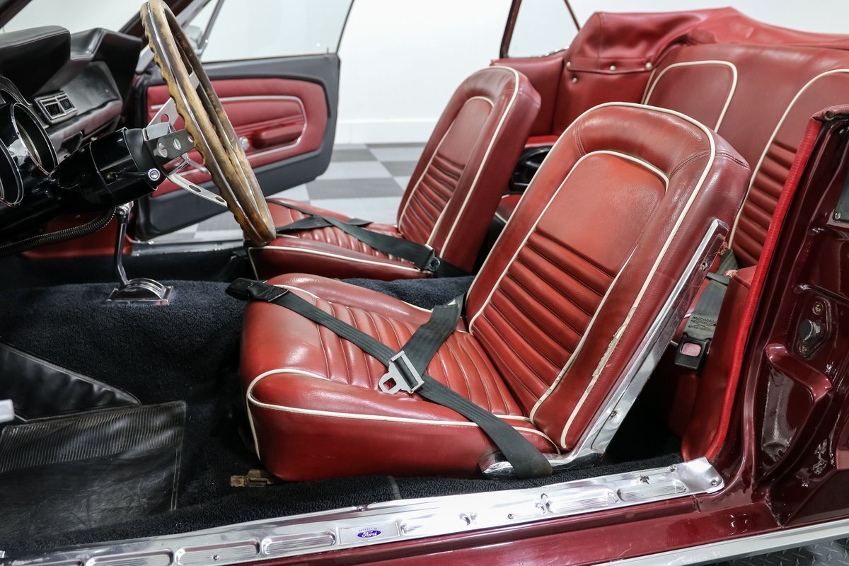 Get ready to cruise in style with this 1967 Ford Mustang Convertible, a true icon of American muscle and elegance. Cloaked in a rich Maroon exterior and featuring a matching Maroon vinyl interior, this Mustang is a standout classic that exudes timeless appeal. Under the hood lies a potent 289CI Ford V8 engine, paired with a smooth C-4 automatic transmission, delivering the perfect blend of power and drivability.