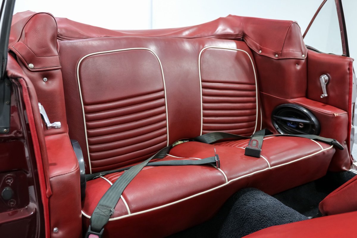 Inside, the Maroon vinyl bucket seats provide a comfortable and stylish ride, perfectly complemented by the woodgrain steering wheel. The power convertible top allows you to enjoy open-air driving with ease, making it perfect for sunny days and scenic drives. Digital gauges provide modern functionality, while the aftermarket radio ensures you have your favorite tunes on every journey.