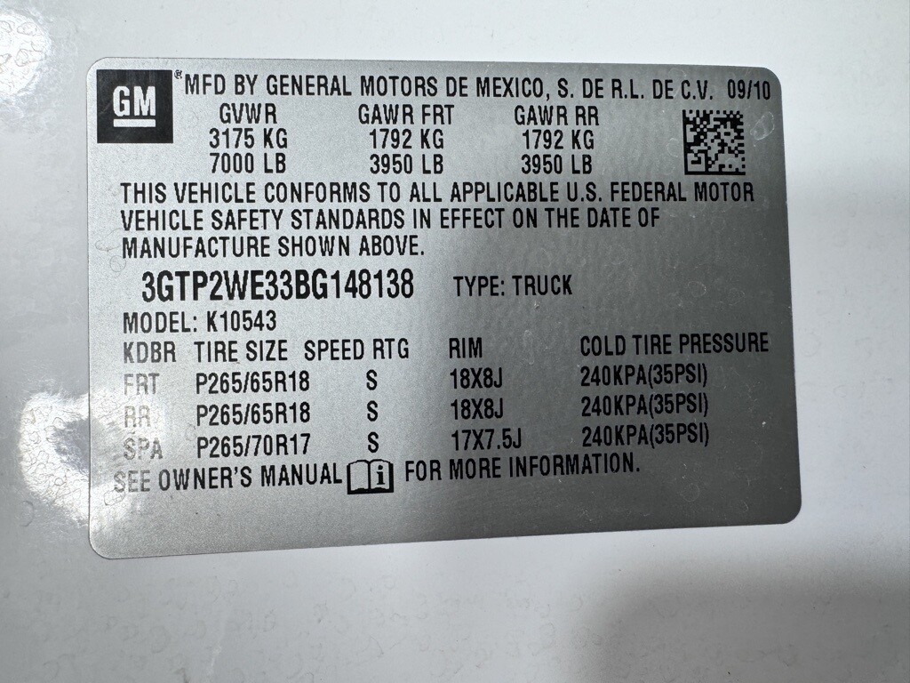 Summit White 2011 GMC Sierra 1500 SLT 4WD 6-Speed Automatic Vortec 5.3L V8 SFI VVT Flex Fuel Leather, Sierra 1500 SLT, 4D Crew Cab, Vortec 5.3L V8 SFI VVT Flex Fuel, 6-Speed Automatic, 4WD, Summit White, Ebony Leather, 18 x 8 Chrome-Cladded Aluminum Wheels, All-Terrain Package, Body-Colored Power Heated Outside Rear-View Mirrors, Body-Colored Side Moldings w/Chrome Accent, Dual-Zone Automatic Climate Control, EZ-Lift Tailgate, Front & Rear Carpeted Floor Mats, Front Halogen Fog Lamps, Heavy Duty Cooling Package, Heavy-Duty Air-to-Oil External Engine Oil Cooler, Heavy-Duty Auxiliary External Transmission Oil Cooler, Heavy-Duty Handling/Trailering Suspension Package, Heavy-Duty Rear Automatic Locking Differential, Heavy-Duty Trailering Package, Inside Auto-Dimming Rear-View Mirror, Locking Tailgate, Mechanical Brushed Aluminum Accents, Off-Road Suspension Package, Power-Adjustable Pedals For Accelerator & Brake, Rancho Branded Shocks White w/Red Letters, Rear Wheelhouse Liner, Skid Plate Package, SLT Convenience Package, Ultrasonic Rear Parking Assist w/Audible Warning.