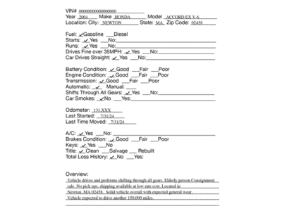 No Payment: If the deposit is not received within 24 hours of the close of the auction, or if the balance is not paid in full within 3 days following the close of the auction, we reserve the right to re-list the vehicle to the next highest bidder or another qualified buyer.