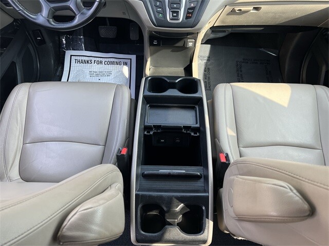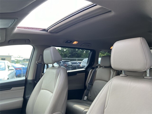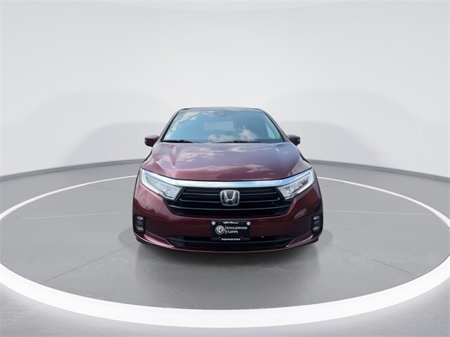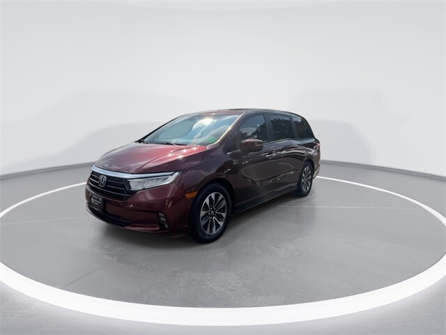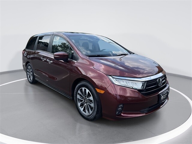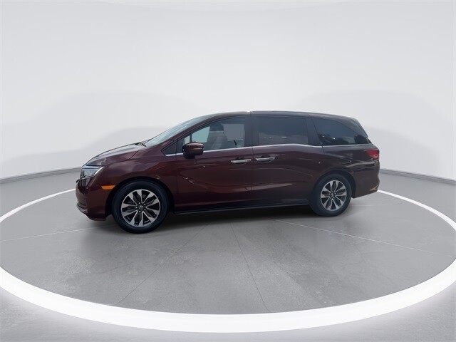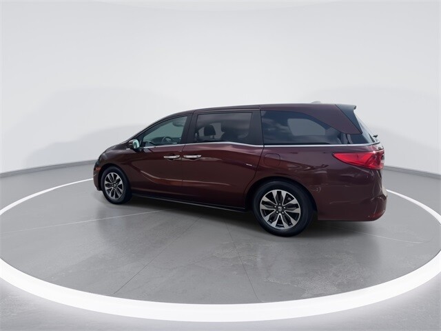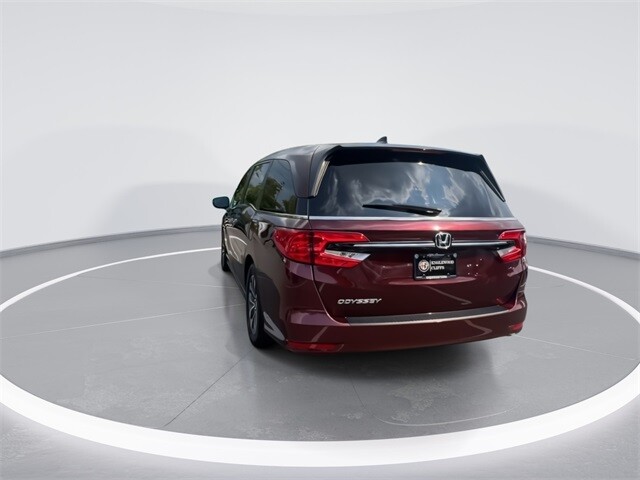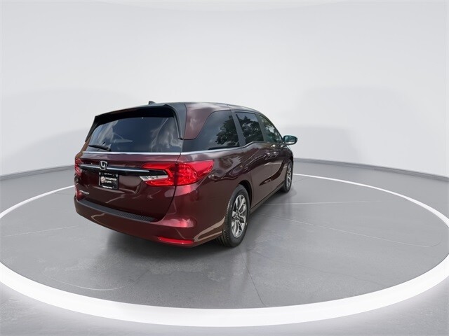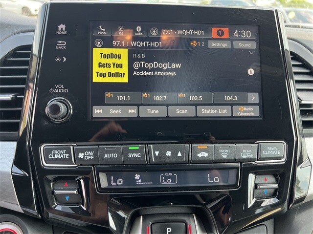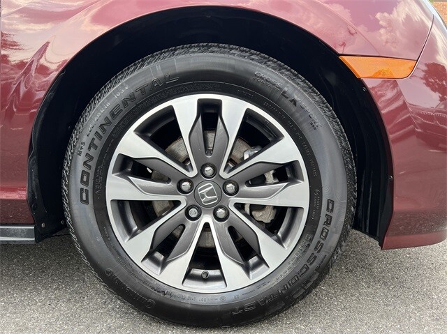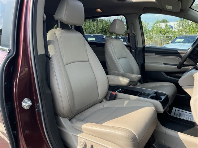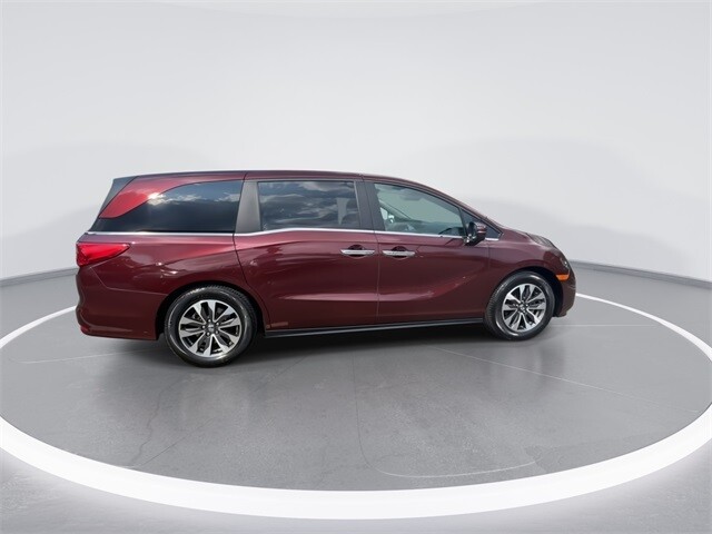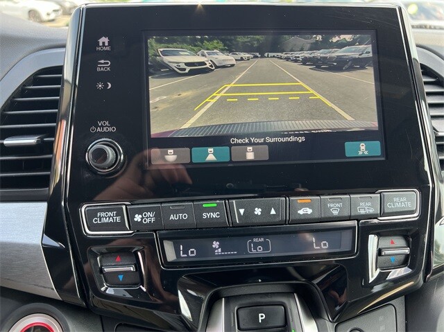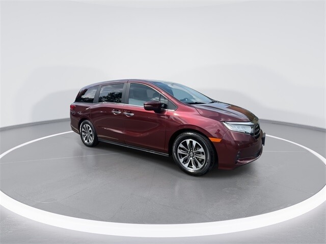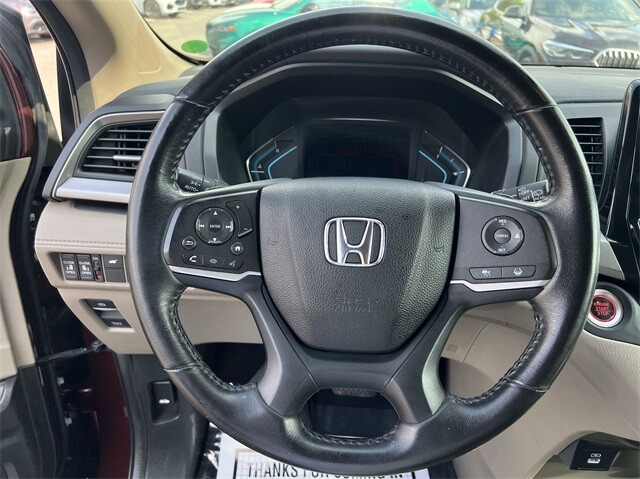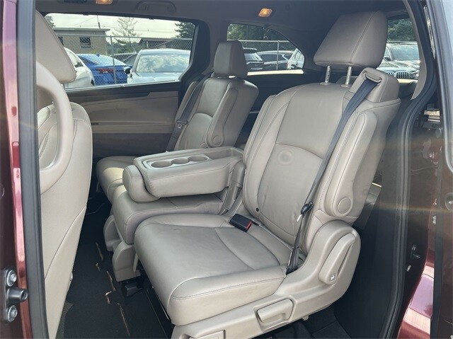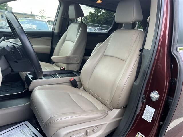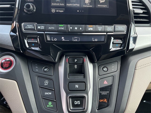 This Odyssey EX-L is nicely equipped with Adaptive Cruise Control: Adaptive Cruise Control (ACC) with Low-Speed Follow, Apple CarPlay/Android Auto, Auto High-beam Headlights, Auto-dimming Rear-View mirror, Automatic temperature control, Blind Spot Information (BSI) System warning, Brake assist, Electronic Stability Control, Exterior Parking Camera Rear, Forward collision: Collision Mitigation Braking System (CMBS) + FCW mitigation, Four wheel independent suspension, Front dual zone A/C, Fully automatic headlights, Garage door transmitter: HomeLink, Heated door mirrors, Heated Front Bucket Seats, Illuminated entry, Lane departure: Lane Keeping Assist System (LKAS) active, Memory seat, Outside temperature display, Overhead console, Panic alarm, Power door mirrors, Power driver seat, Power Liftgate, Power moonroof, Power passenger seat, Power steering, Power windows, Rear air conditioning, Rear window defroster, Rear window wiper, Remote keyless entry, Security system, Speed control, Speed-sensing steering, Steering wheel mounted audio controls, Traction control, Turn signal indicator mirrors, 18 Machine-Finished Alloy Wheels, 3.61 Axle Ratio, 3rd row seats: split-bench, 4-Wheel Disc Brakes, 7 Speakers, A/V remote: CabinControl, ABS brakes, Air Conditioning, Alloy wheels, AM/FM radio: SiriusXM, Anti-whiplash front head restraints, Bumpers: body-color, Delay-off headlights, Driver door bin, Driver vanity mirror, Driver's Seat Mounted Armrest, Dual front impact airbags, Dual front side impact airbags, Front anti-roll bar, Front Bucket Seats, Front fog lights, Front reading lights, Heated front seats, Knee airbag, Leather Seat Trim, Leather steering wheel, Low tire pressure warning, Occupant sensing airbag, Overhead airbag, Passenger door bin, Passenger seat mounted armrest, Passenger vanity mirror, Radio data system, Radio: 160-Watt AM/FM/HD/SiriusXM Audio System, Rear anti-roll bar, Rear reading lights, Rear seat center armrest, Reclining 3rd row seat, Speed-Sensitive Wipers, Split folding rear seat, Spoiler, Tachometer, Telescoping steering wheel, Tilt steering wheel, Trip computer, and Variably intermittent wipers.