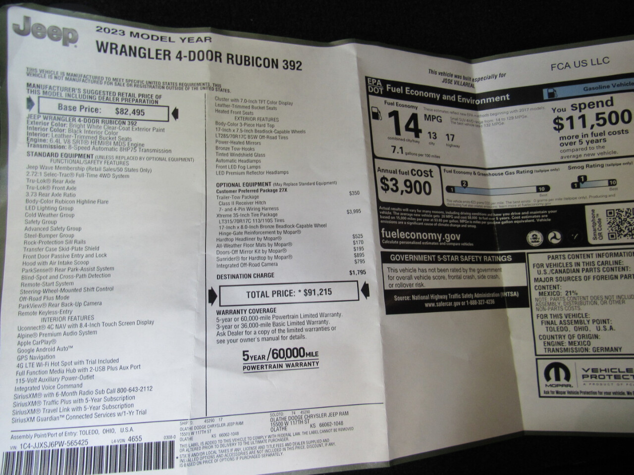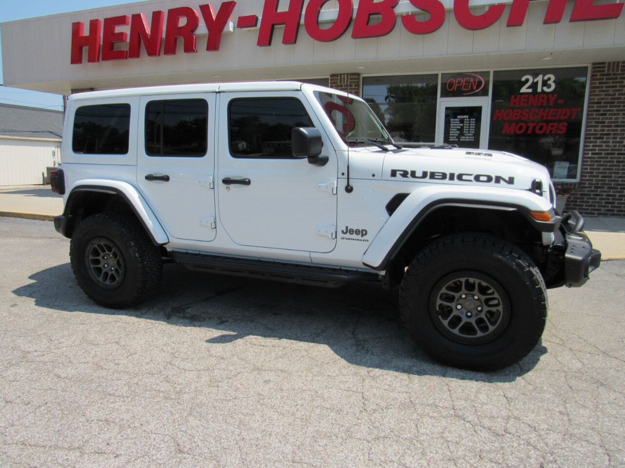 Are you ready to step up your off-road game? This White 2023 Jeep Wrangler is the ultimate adventure companion that not only looks rugged and ready for action but also boasts the reliability of being a Carfax one owner car. Rest easy knowing that a detailed Carfax report is available to give you peace of mind.Slide into the driver's seat and feel the power at your fingertips with this 4WD/AWD beast. Whether you're tackling rough terrain or cruising down the highway, this Wrangler has you covered with its advanced traction control, vehicle stability control system, and locking differential. So go ahead and conquer any landscape with confidence.When it comes to comfort and convenience, this Jeep doesn't disappoint. The interior is loaded with features to make every journey enjoyable, from the adjustable foot pedals to the heated steering wheel and leather seats. Stay connected and entertained with the AM/FM radio and subwoofer while you let the automatic headlights illuminate the path ahead.Safety is always a top priority, especially when you have precious cargo on board. This Wrangler comes equipped with a suite of safety features like front side airbags, side head curtain airbags, and ABS brakes to give you added peace of mind on the road. Plus, the child safety door locks and electronic parking aid help keep your little ones safe and secure.Don't let anything hold you back from your next great adventure. This White 2023 Jeep Wrangler is ready to take you wherever your heart desires, and with its full-size spare tire and run-flat tires, you can have peace of mind knowing you're prepared for anything the road throws your way. So why wait? Come test drive this rugged beauty today and experience the thrill of owning a truly versatile and reliable vehicle.