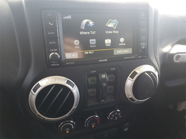 BOUGHT HERE, AND SERVICED WITH US, Bluetooth, FACTORY MAINTENANCE UP TO DATE, NAVIGATION GPS NAV, NEW BRAKES, Navigation System, RECENT TRADE IN, SIRIUS XM, TOW PACKAGE, 4.10 Rear Axle Ratio, 40GB Hard Drive w/28GB Available, 5-Year SIRIUSXM Travel Link Service, 6.5 Touch Screen Display, Add 4.10 Axle Ratio, Alpine 9-Speaker w/All Weather Subwoofer, Audio Jack Input for Mobile Devices, Class II Receiver Hitch, Connectivity Group, Freedom Top Hard Top Headliner, GPS Navigation, Max Tow Package, Navigation System, Quick Order Package 24R, Radio: Uconnect 430N CD/DVD/MP3/HDD/NAV, Remote USB Port, Rubicon Hood Decal, SIRIUSXM Traffic, SIRIUSXM Travel Link, Steel Front Bumper, Steel Rear Bumper, Tire Pressure Monitoring Display, Trailer Tow w/4-Pin Connector Wiring, Uconnect Voice Command w/Bluetooth, Vehicle Information Center, Wheels: 17 x 7.5 Polished Semi-Gloss Black. 4WD 5-Speed Automatic 3.6L V6 24V VVT