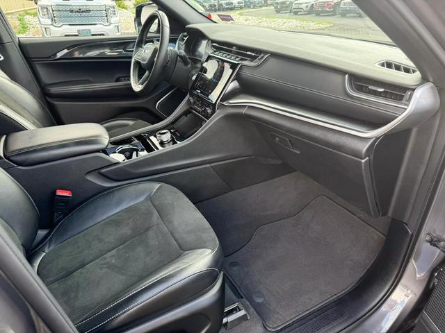 This 2021 Jeep Grand Cherokee Laredo Sport is a one-owner SUV with no accidents and a clean title. It comes equipped with the customer preferred package, 3.6L V6 engine, black leather with black suede interior, second-row Captain's chairs, third-row seating, and much more!
