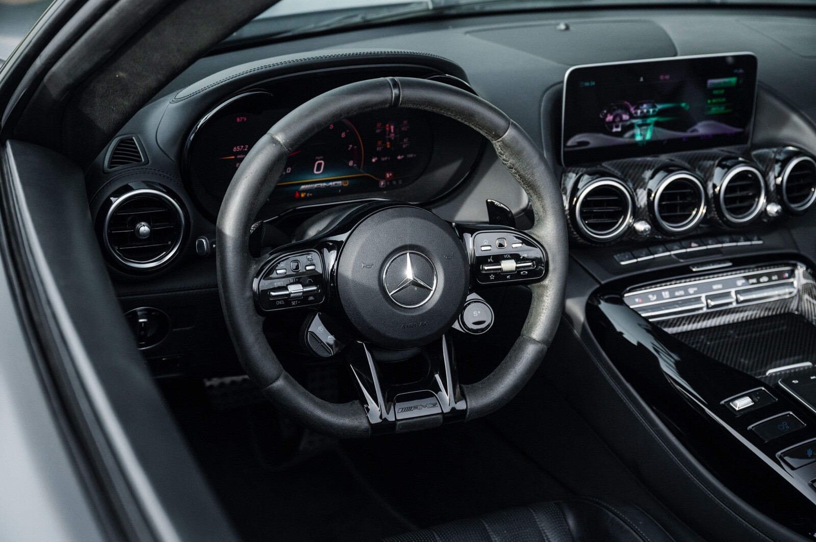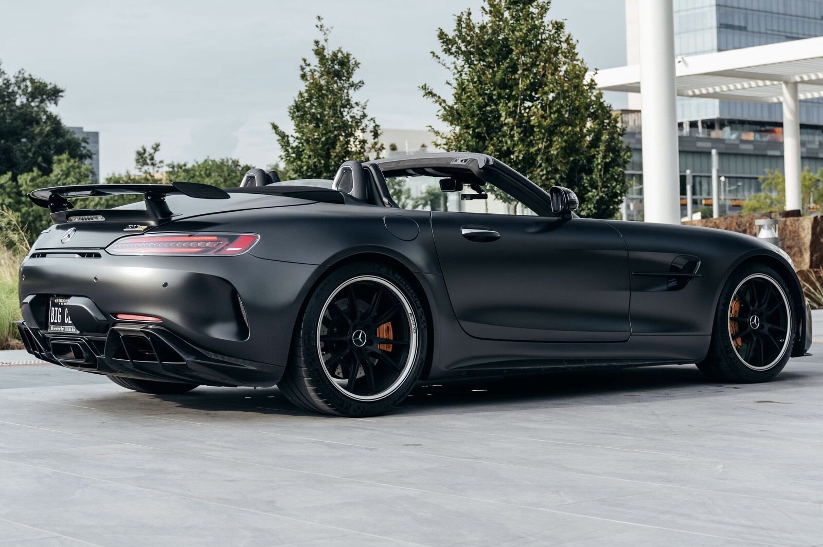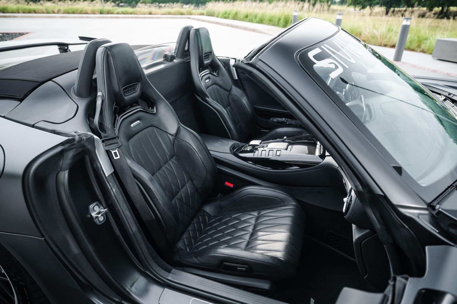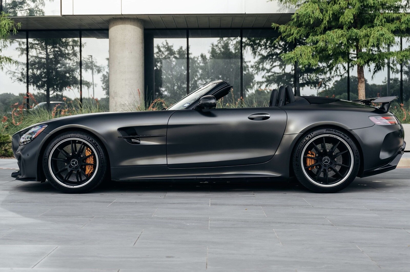 STRIKING 2020 Mercedes-Benz AMG GT-R Roadster Limited Edition of 750! This is the HIGHEST MSRP GT-R Roadster I have ever seen, with a $223K sticker. It has the AMG Carbon Fiber Package II, AMG Exterior Carbon Fiber Package I, CCBs, Buremester’s High-End Surround System, Carbon Fiber Door Sill Panels, Convenience Package, Lane Tracking Package, DISTRONIC, and the classic 5-Twin Spoke AMG Wheels. The color combination is Manufaktur Graphite Grey Magno (looks more black in person) and the standard Black Diamond Stitched Nappa Leather Interior.