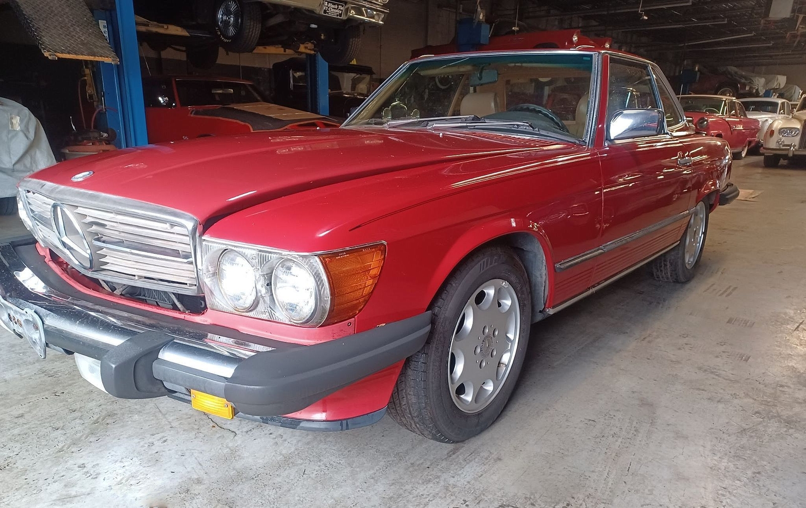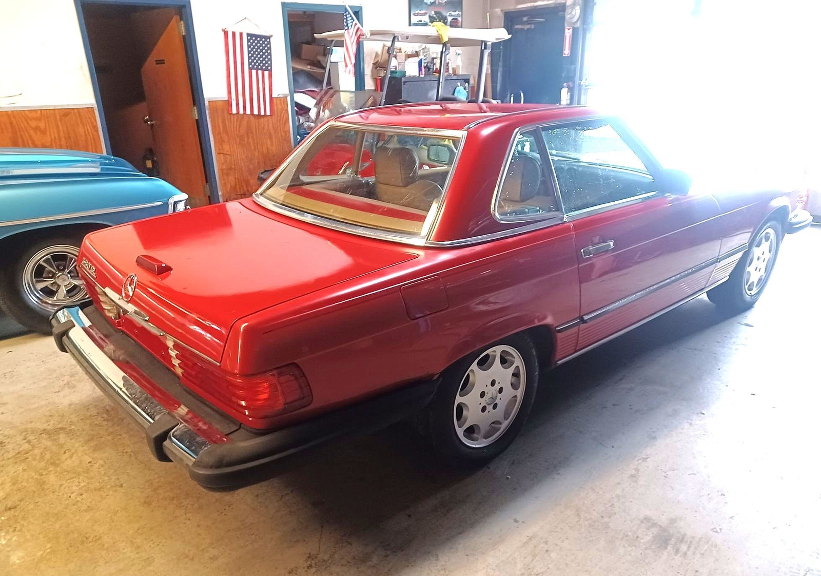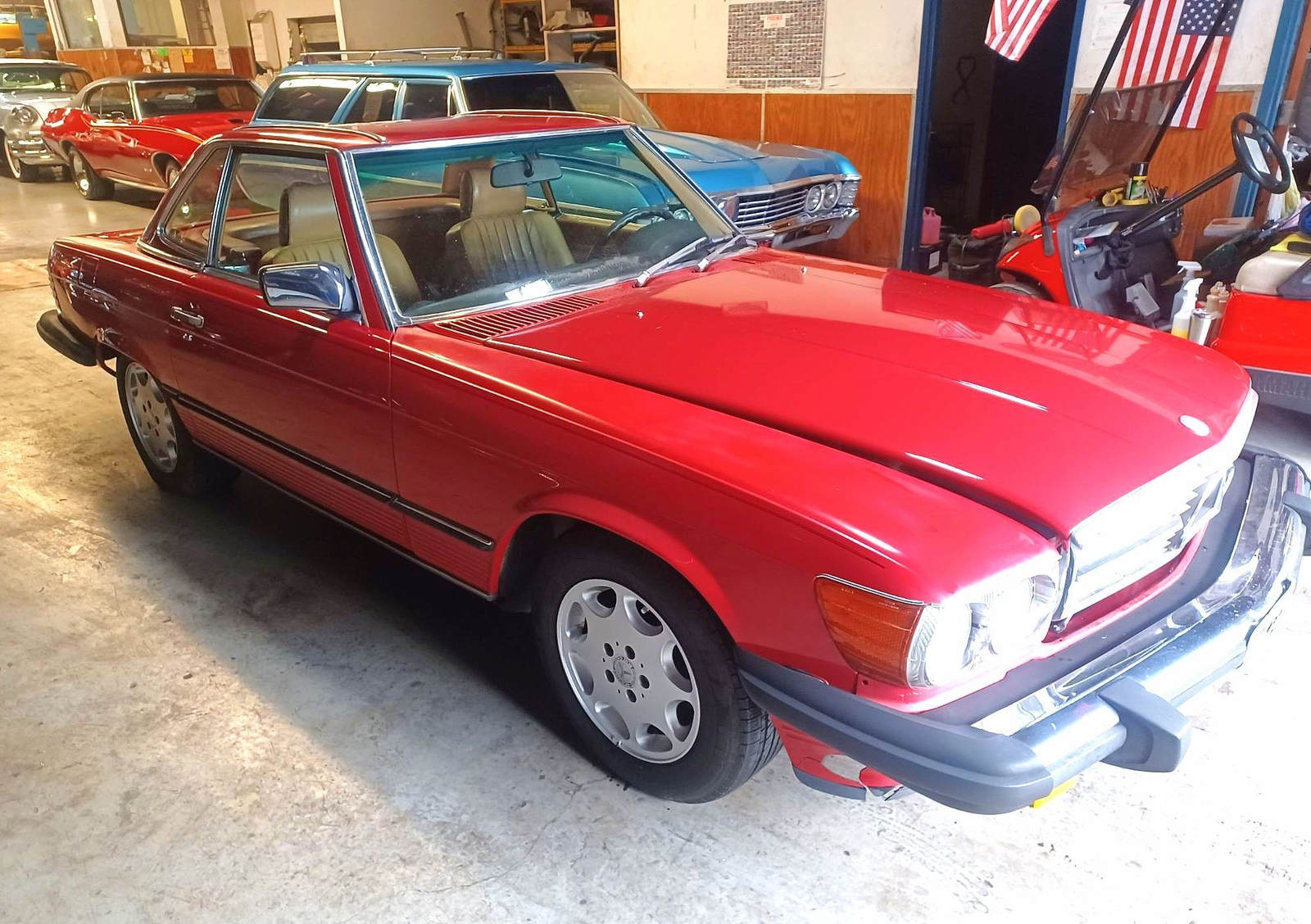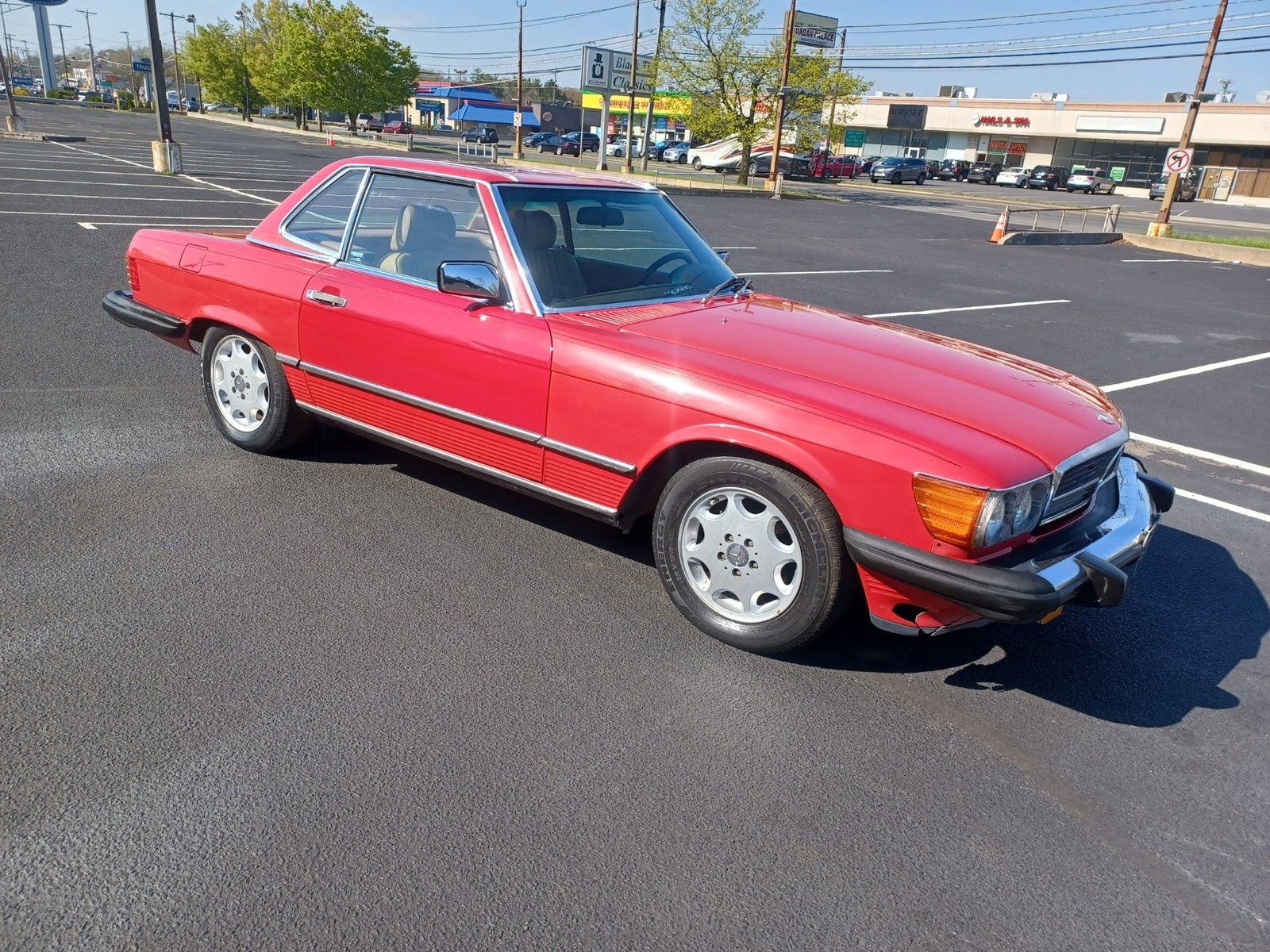 Just arrived this beautiful SL convertible with two tops 1988 beautiful torch, red paint, tan interior locks and runs beautiful solid body no rust!! Looks and runs fantastic the gentleman in his 80s just sold it to us after putting on a brand new convertible top. More pictures to come. Thank you John. Yes, we have financing.