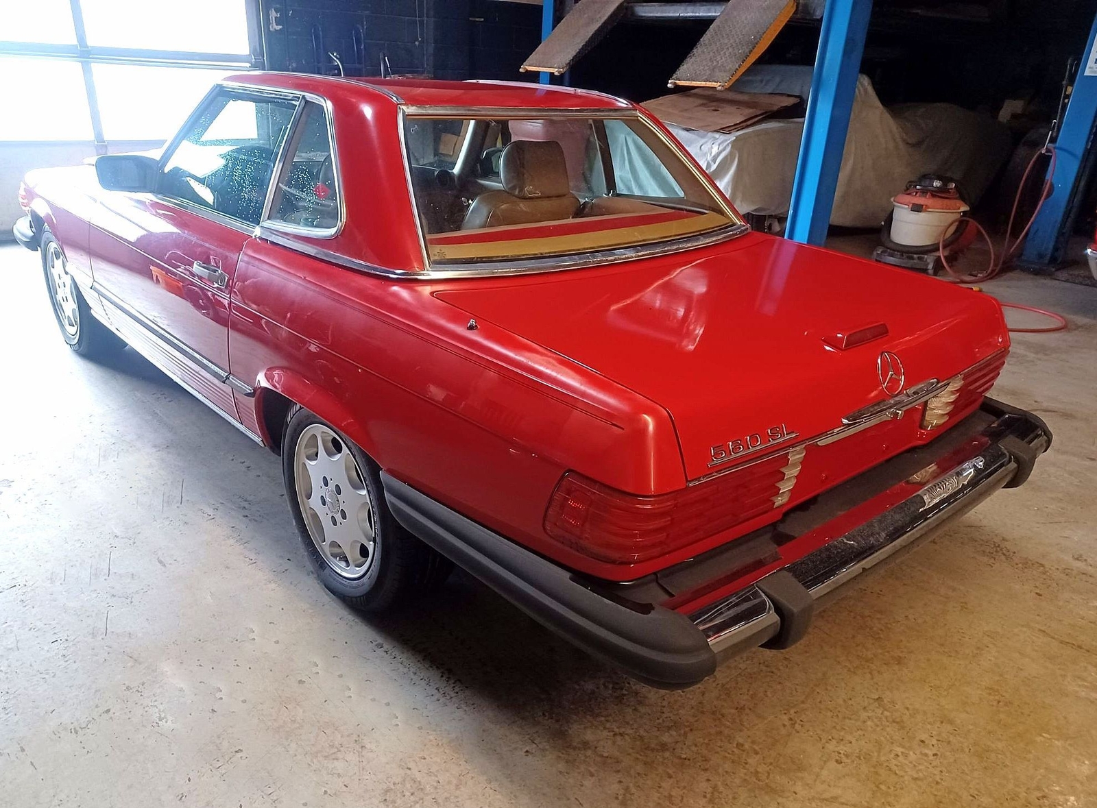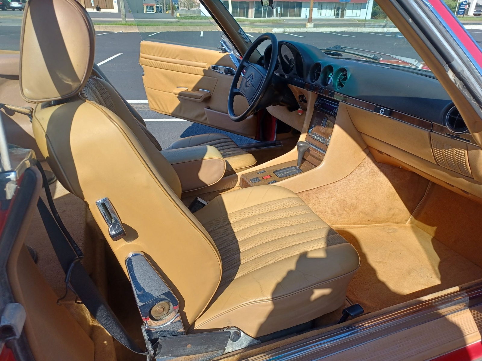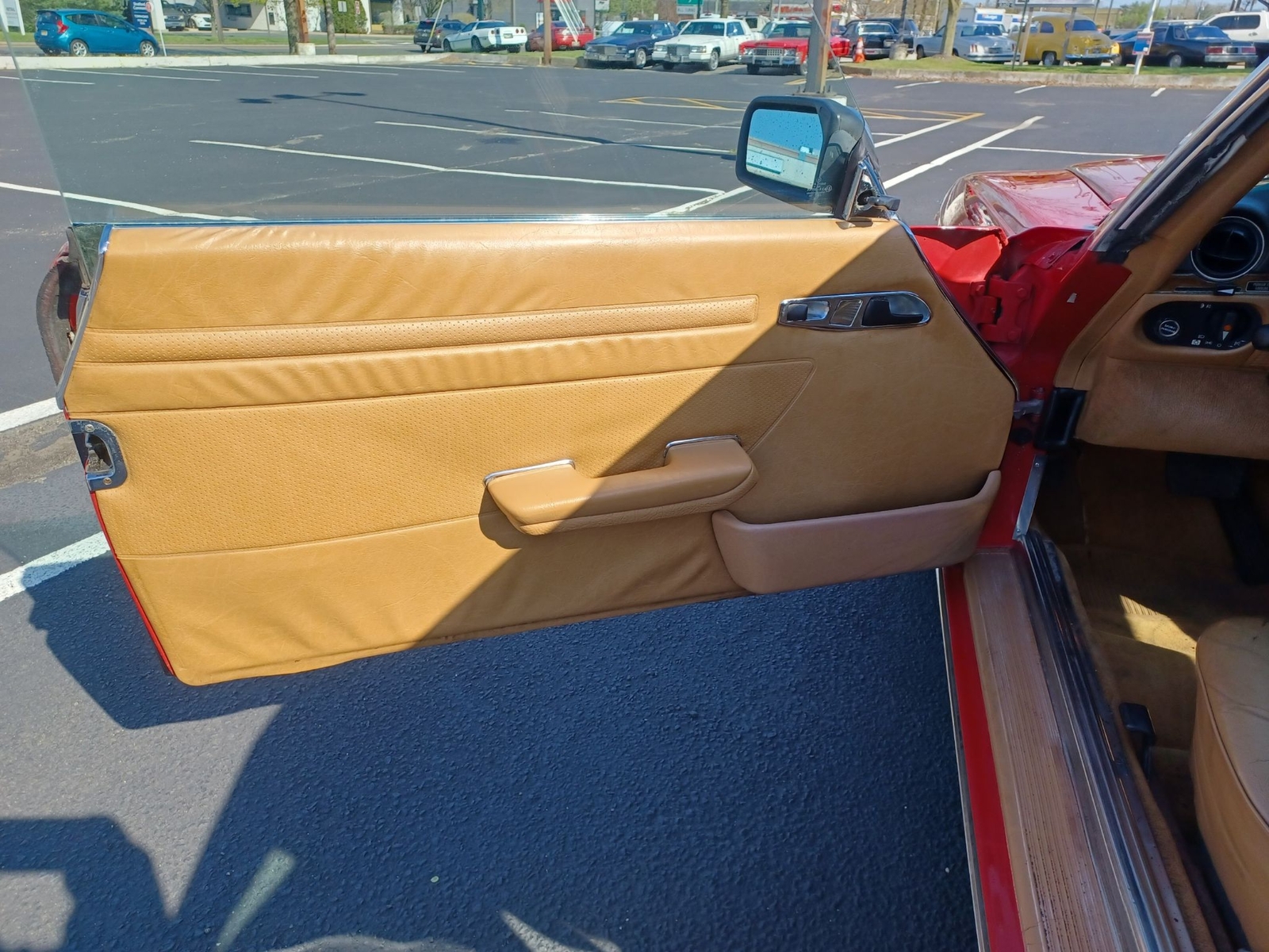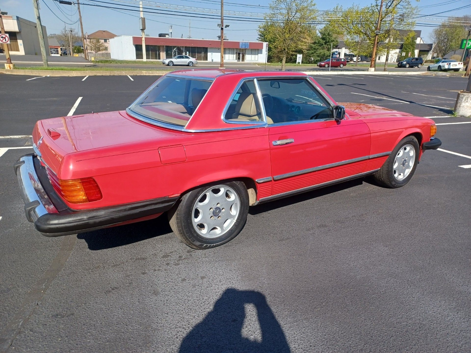 Just arrived this beautiful SL convertible with two tops 1988 beautiful torch, red paint, tan interior locks and runs beautiful solid body no rust!! Looks and runs fantastic the gentleman in his 80s just sold it to us after putting on a brand new convertible top. More pictures to come. Thank you John. Yes, we have financing.