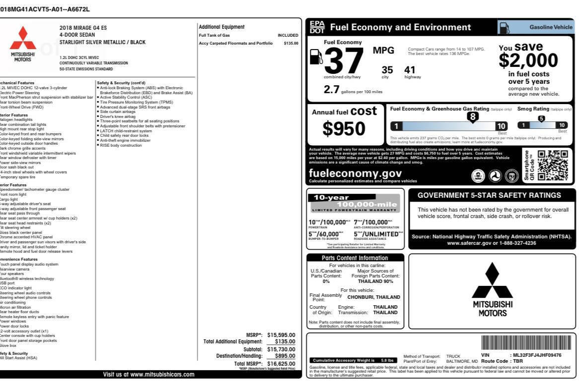 PLEASE READ BEFORE-CONTACTING A&R WE DO NOT OFFER ANY FINANCING ONLY CASH / DEBIT CARD / CREDIT CARD 2018 MITSUBISHI MIRAGE G4 ES VIN: ML32F3FJ4JHF09476 M L 3 2 F 3 F J 4 J H F 0 9 4 7 6 SEDAN 4 DR 1.2L I3 F DOHC 12V GASOLINE FRONT WHEEL DRIVE AUTOMATIC MILES 126,596 RUNS & DRIVES GOOD A&R AUTO SELLS CARS FOR WHOLESALE PRICES TO THE PUBLIC FOR OVER 25 YEARS WELCOME TO COME SEE IT & TEST DRIVE Price(s) include(s) all costs to be paid by a consumer, except for licensing costs, registration fees, and taxes. Dealership’s Clerical fee of $200.00 which is subject to change without notice Is an addition cost not Included on vehicle price. SALE PRICES MUST BE PRESENTED AT TIME OF PURCHASE AFTER PURCHASE THEY WILL NOT BE VALIDATED VEHICLE PRICES SUBJECT TO CHANGE AT ANY TIME A & R USED CARS INC OFFERS AFFORDABLE CARS & TRUCKS SINCE 1998. WE ARE THE BEST CHOICE IF YOU HAVE NO CREDIT OR YOU DON'T WANT TO PAY CAR PAYMENTS. OWN YOUR CAR! FORMS OF PAYMENT ACCEPTED ARE AS FOLLOWS: -CASH -DEBIT/CREDIT CARD ISSUED WITH PURCHASER'S NAME -BANK WIRE -CASHIERS OR BANK CHECK -NO PERSONAL CHECKS -NO MONEY ORDERS OF ANY KIND -WE DO NOT DO ANY TYPE OF PAYMENT PLANS, LAYAWAYS OR FINANCING. ALL CARS SOLD AS IS. AFTER COMPLETION OF SALE THE CUSTOMER WILL BE RESPONSIBLE FOR ANY AND ALL REPAIRS. WARRANTIES ARE AVAILABLE ON SELECT VEHICLES THAT MEET THE WARRANTY COMPANY'S QUALIFICATIONS. DISCLAIMER: A & R Used Cars INC (Dealership) shall in no way be held liable for any errors or omissions to be found on this website. Any purchaser or prospective purchaser should independently verify with a salesperson the accuracy of all information listed on any & all vehicles in questioned. Vehicles actual mileage will vary due to test drives. Actual equipment of this vehicle may differ. Contact A & R Used Cars Inc by phone at866-730-2775 or by email at ; for more details and check on the availability of the vehicle before coming to visit us in person. A&R USED CARS INC (2) LOCATIONS 1043 N DELSEA DRIVE CLAYTON NJ 08312 195 DELSEA DRIVE SOUTH NJ 08028 CALL 1866-730-2775