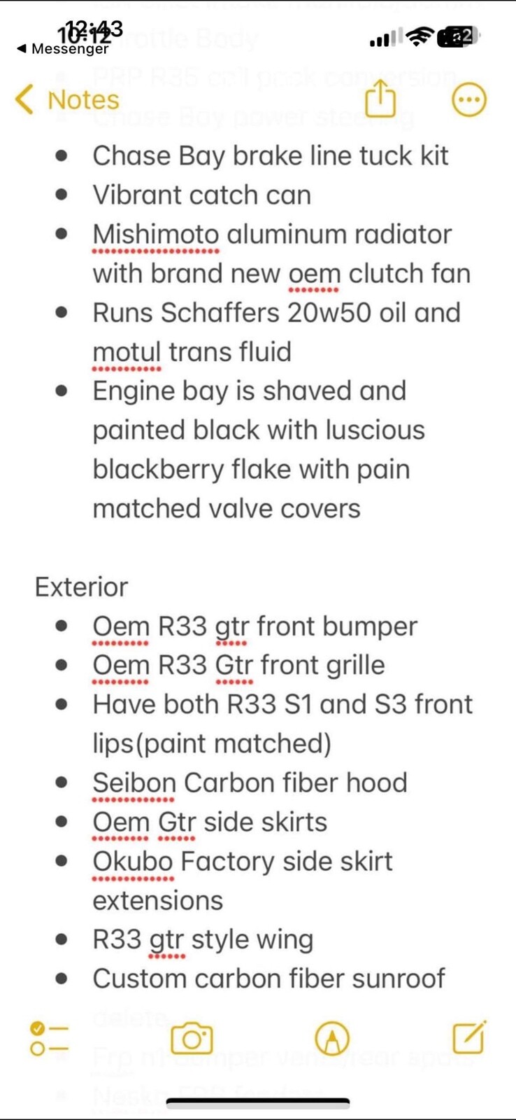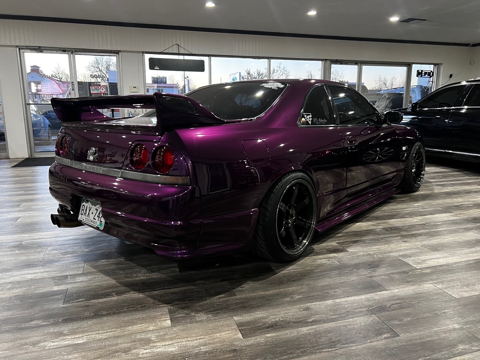 This is a 1994 Skyline GTST, very tastefully modded show car. It does have a full roll cage and it is indeed able to be tracked, however it was geared to be a show car. Makes 485HP on e85 and 435 on 91 Stand alone Haltec ECU. Very clean paint (Tropical Glitz Luscious Blackberry). Shaved, painted and tucked bay with valve cover painted to match. GTR original front bumper. GTR side skirts. GTR style wing. GTR fenders. This is a gem and I will answer any questions needed Clean Colorado Title. Being sold by a dealer, and sold as is. This is a very modified car. I’m not asking for trades, but could take a trade. Please look to the photos for full build list. This will be a cash only deal.Seller's Notes
