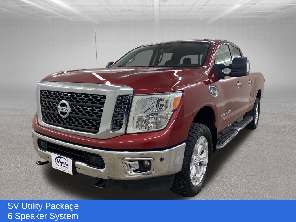 Dealer Inspection, Vehicle Detailed, Recent Oil Change, New Wiper Blades, Remote Start, Titan XD SV, Aisin 6-Speed Automatic, 4WD, Black w/Cloth Seat Trim, 110V Outlet In Bed, 6 Speaker System, Air Conditioning, AM/FM radio: SiriusXM, Block heater, Electronic Stability Control, Flat Floor Storage Box, Heated Front Captain's Seats w/Center Console, LED Under Rail Bed Lighting, Navigation System, Radio: NissanConnect w/SiriusXM & Mobile Apps, Rear window defroster, Security system, Speed-Sensitive Wipers, Spray-In Bedliner, Steering wheel mounted audio controls, SV Utility Package, Tailgate Area Illumination, Traction control, Utilitrack System w/4 Tie-Down Cleats. 5.0L V8 Cayenne Red 2017 Nissan Titan XD SV