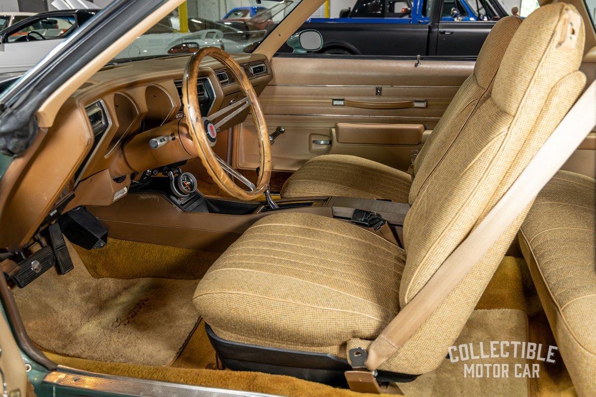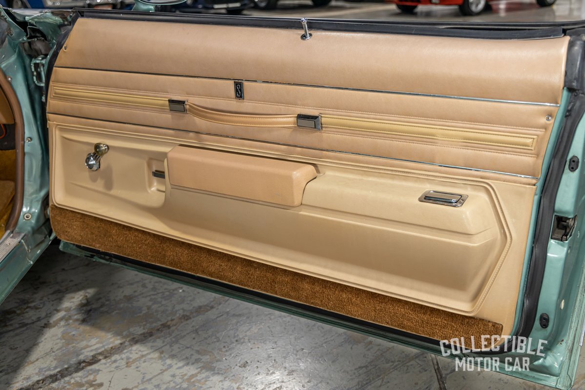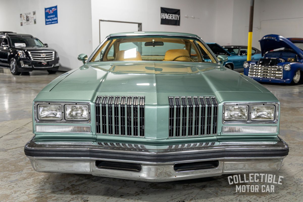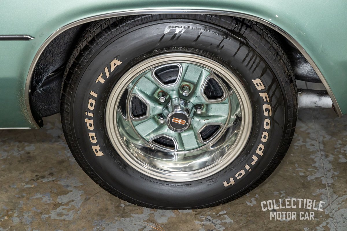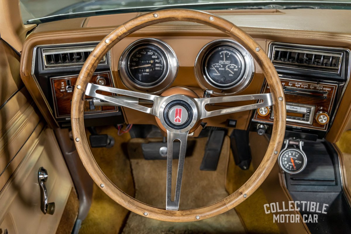 Oldsmobile always seemed to know how to deliver style. The front end makes a well-defined statement with a pointed middle and waterfall grilles that have the sharp drop-off of Niagara Falls. The rear shows off more of the crisply-defined look, and it's nicely detailed, right down to the badging within the taillights. This is said to be a factory paint vehicle, and it has not only survived but thrived! So, you'll love the brightness that's still in the finish. It's the kind of preservation you get on a low-mileage car. And since it's believed that the odometer reflects the full actual mileage, that would have this one averaging under 1200 miles annually. Even the Super Stock wheels are done in green, too!