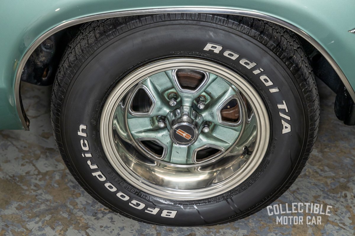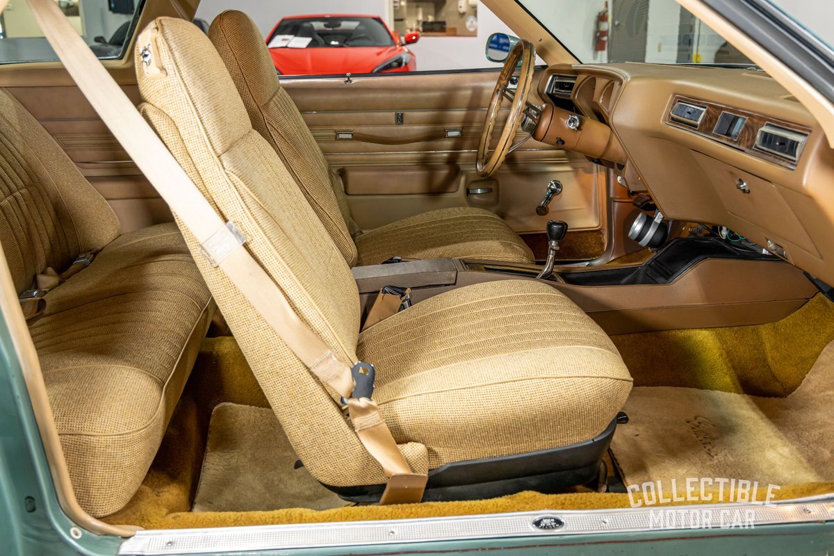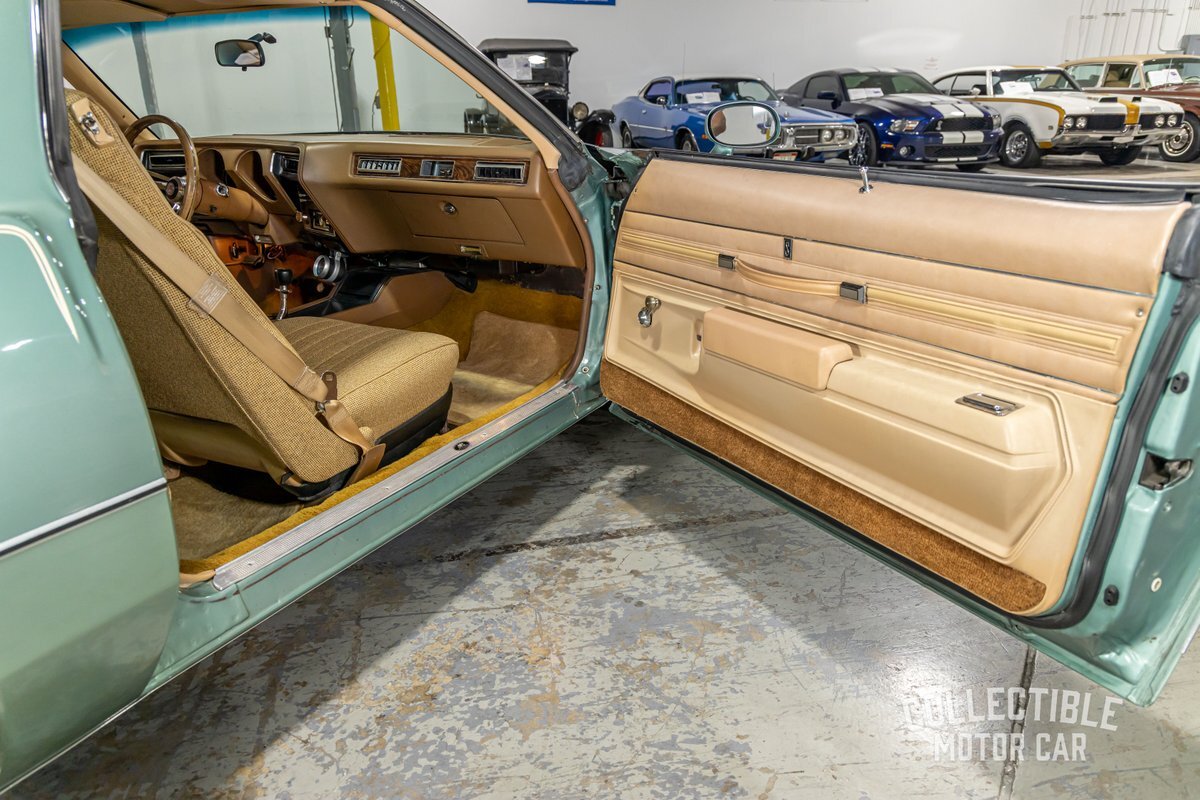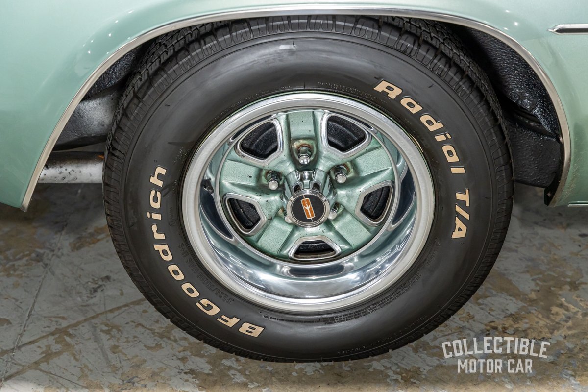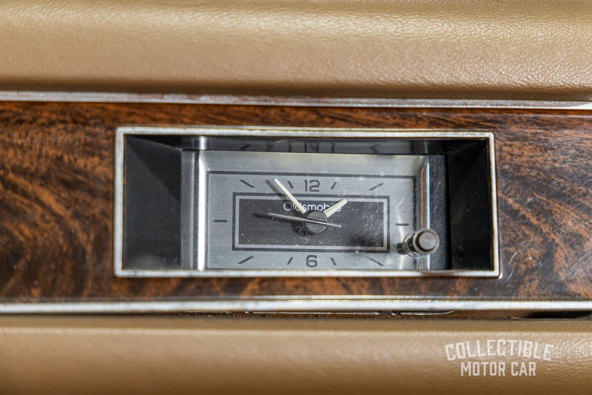 Oldsmobile always seemed to know how to deliver style. The front end makes a well-defined statement with a pointed middle and waterfall grilles that have the sharp drop-off of Niagara Falls. The rear shows off more of the crisply-defined look, and it's nicely detailed, right down to the badging within the taillights. This is said to be a factory paint vehicle, and it has not only survived but thrived! So, you'll love the brightness that's still in the finish. It's the kind of preservation you get on a low-mileage car. And since it's believed that the odometer reflects the full actual mileage, that would have this one averaging under 1200 miles annually. Even the Super Stock wheels are done in green, too!