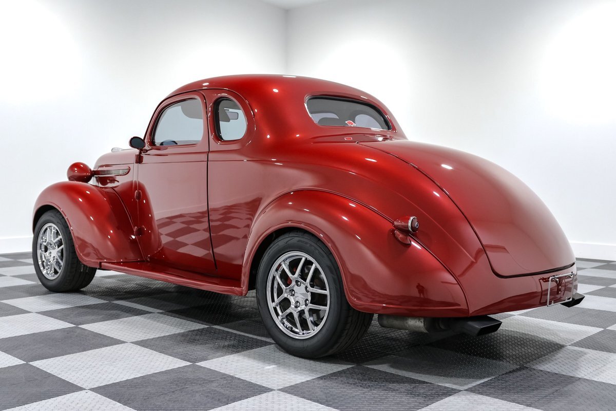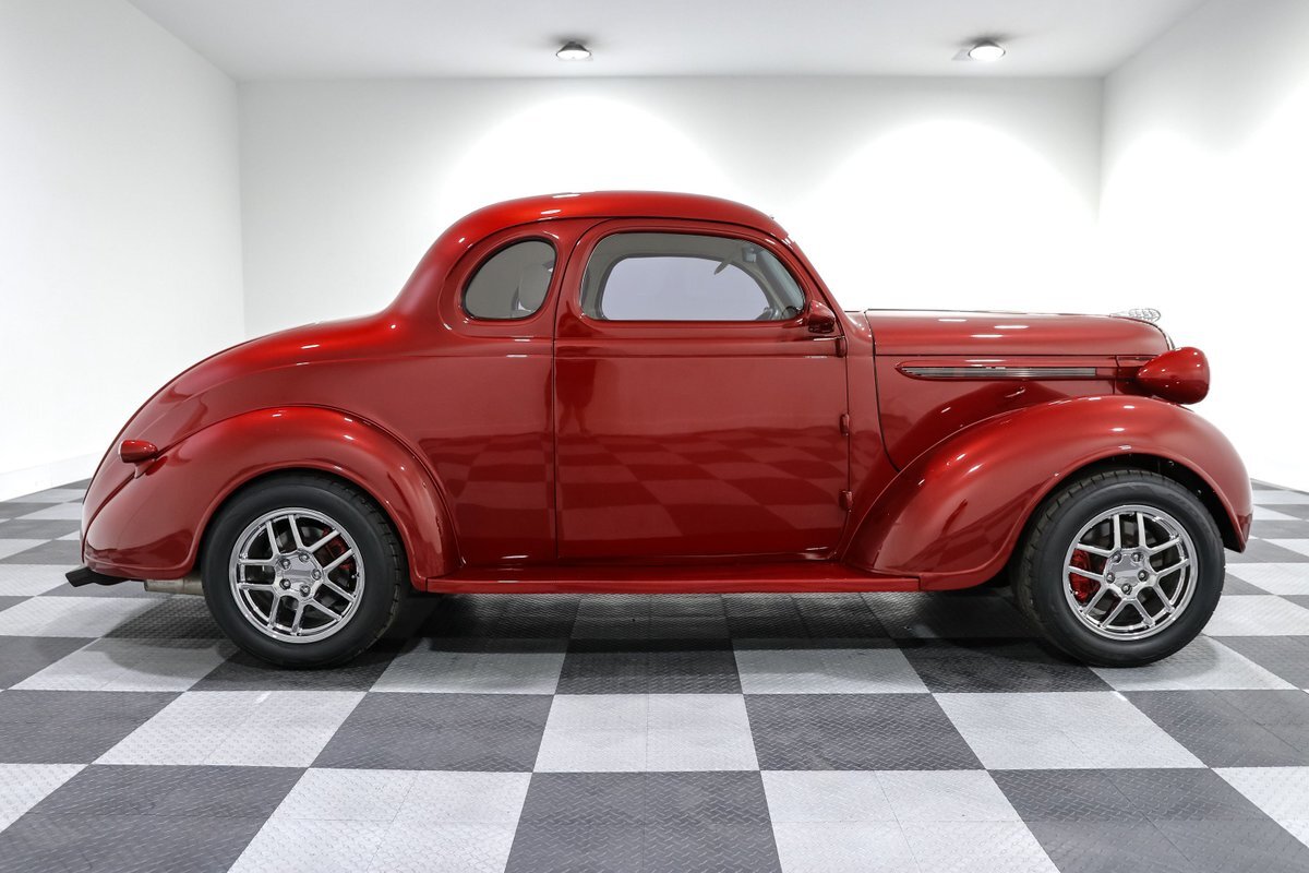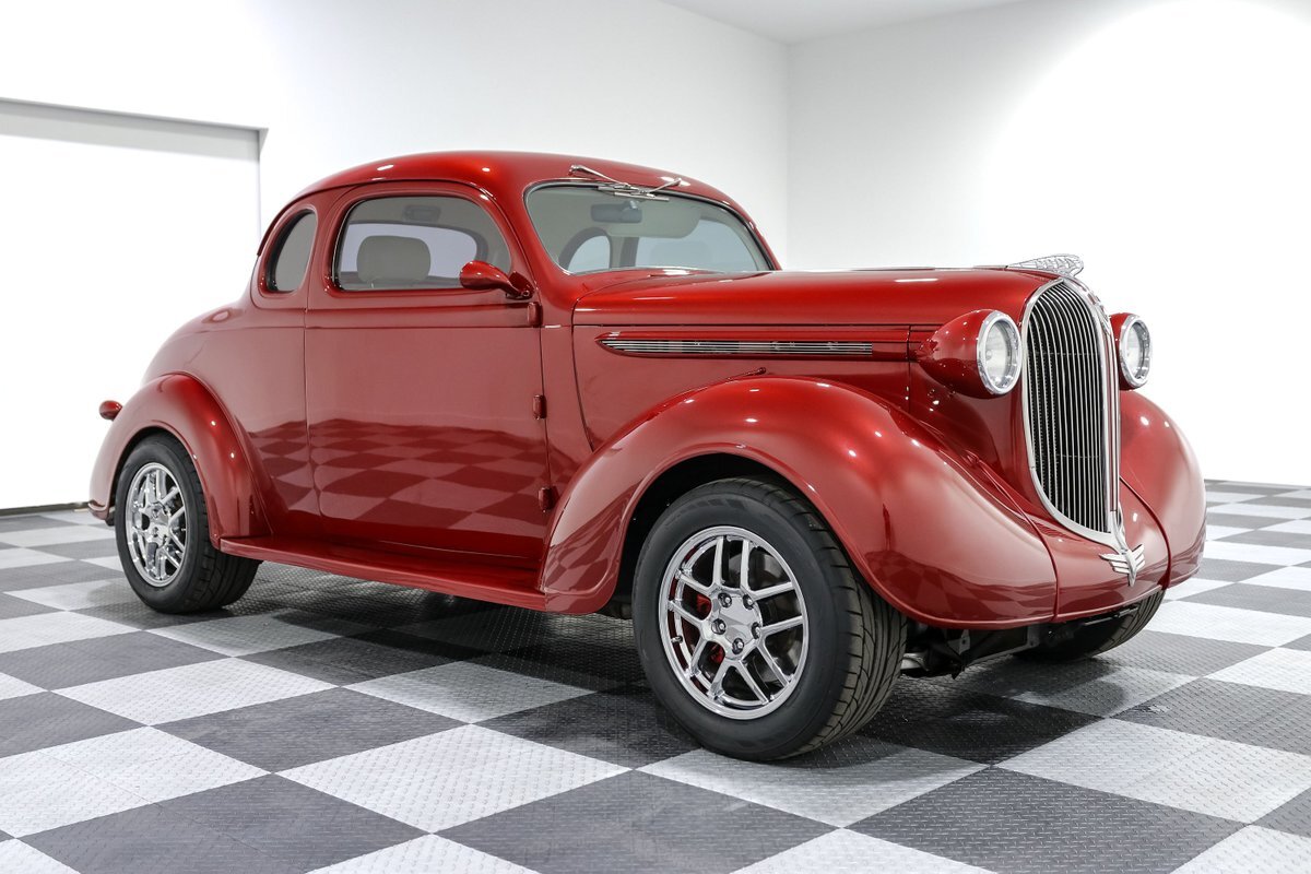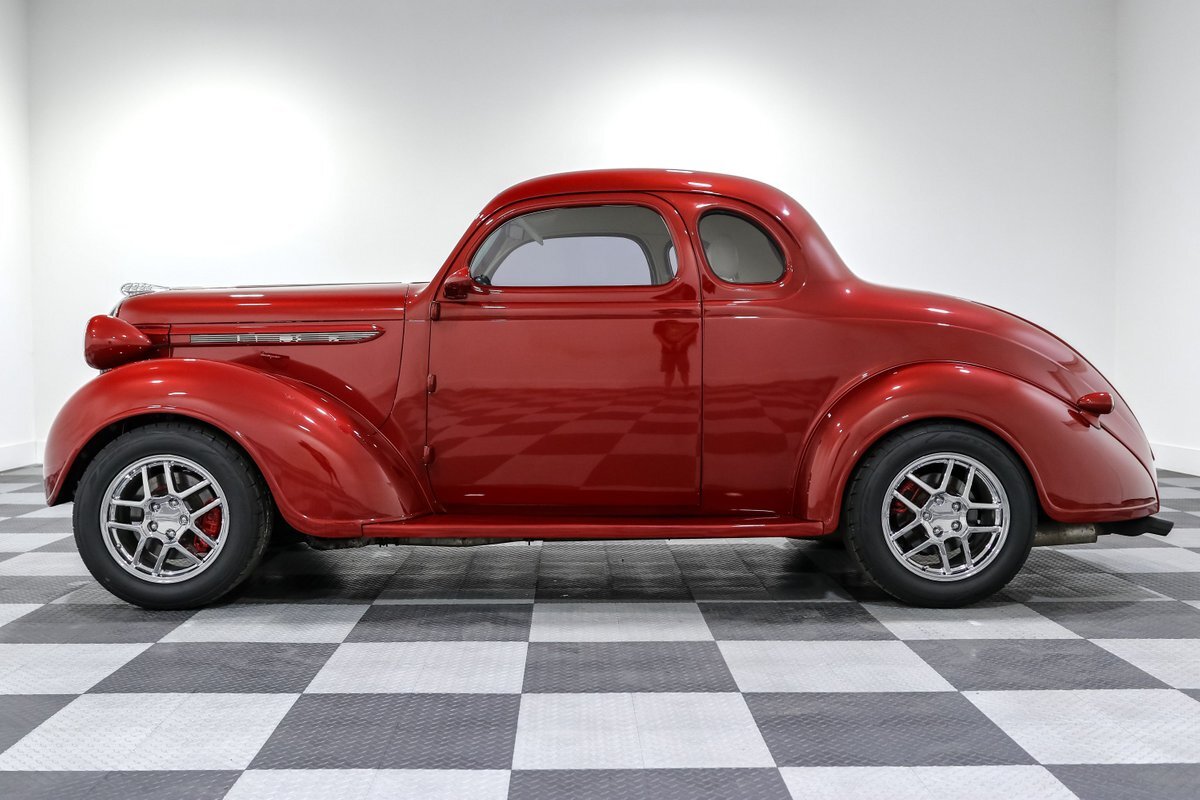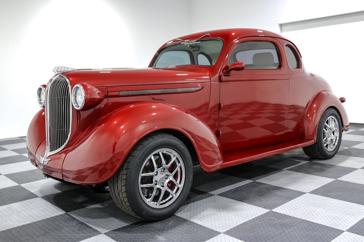 Get ready to turn heads with this jaw-dropping 1938 Plymouth Coupe Street Rod, a stunning blend of vintage style and modern performance. This street rod, drenched in a vibrant Red exterior and complemented by a luxurious Tan vinyl interior, embodies the spirit of classic American hot rods. Under the hood lies a powerful 350CI V8 engine paired with a 6-speed manual transmission, promising an exhilarating driving experience that marries raw power with precise control.