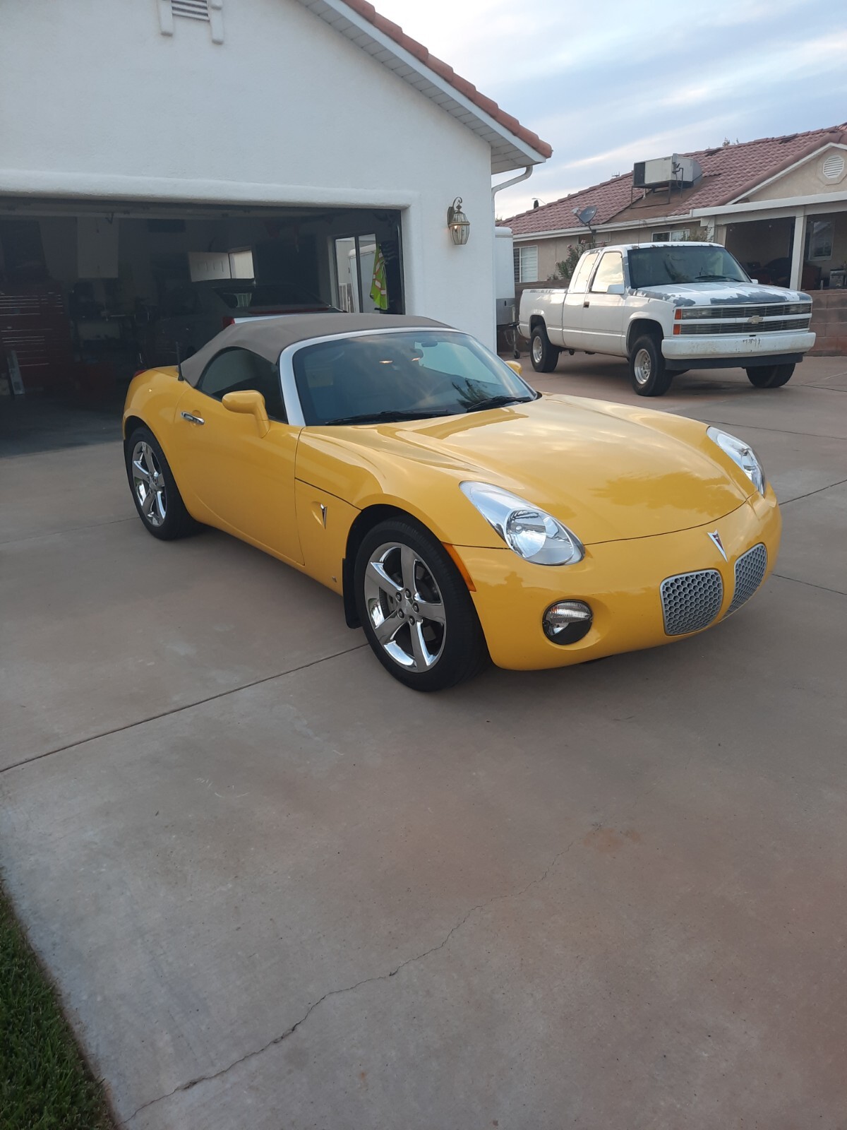 Up for auction is my 2007 Pontiac Solstice, It is very clean and always garage kept, Clear bra on front and mirrors, It is like new, I love this car, it is fun to drive and looks great. Running out of room so it has to go, if your looking for a solstice you will not be disappointed. Clean title , interstate battery is 1 year old.