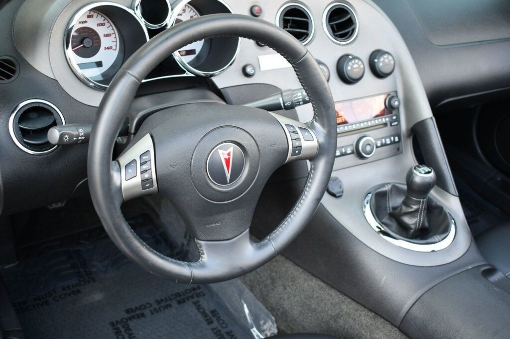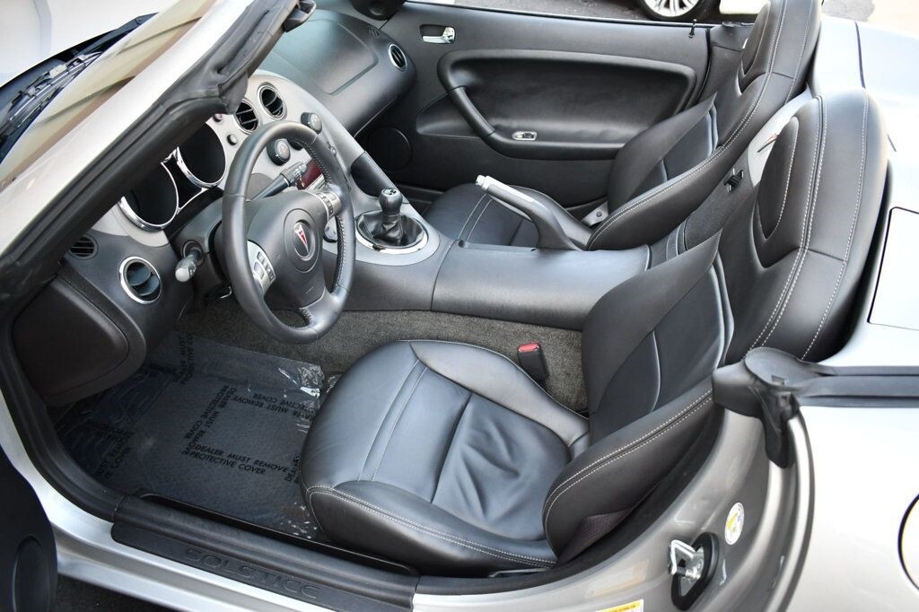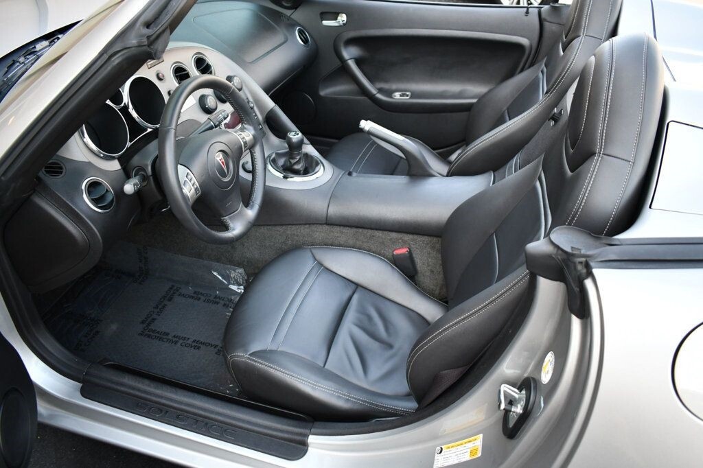 This 2006 Pontiac Solstice 2dr 2 Door Convertible with Premium, Power and Convenience Packages features a 2.4L 4 CYLINDER 4cyl Gasoline engine. It is equipped with a 5 Speed Manual transmission. The vehicle is Cool Liquid Silver Metallic with a Ebony Leather interior. It is covered by a limited warranty. - Air Conditioning, Climate Control, Power Steering, Power Windows, Power Door Locks, Leather Steering Wheel, Clock, Tachometer, Digital Info Center, Driver Airbag, Passenger Airbag, Keyless Entry, Traction Control, Fog Lights, Intermittent Wipers, AM/FM, CD Player, Leather Interior Surface, 12v Power Outlet, Center Arm Rest, Center Console, Cup Holders, Power Brakes, Premium Alloy Wheels, Premium Sound, Remote Trunk Lid, Vanity Mirrors -