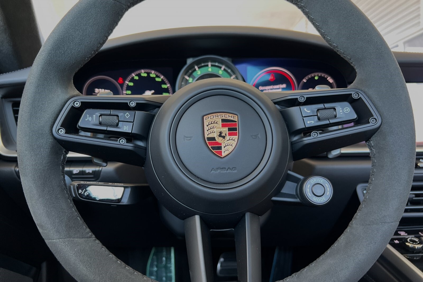 This Porsche San Luis Obispo 2024 Paint to Sample: Brewster Green Porsche 911 Turbo S AWD is well equipped and includes these features and benefits: 18-Way Adaptive Sport Seats Plus w/Memory Package, 911 Turbo SportDesign Package, Heritage Design Interior Package - Pure (Deletion of Quilting and Heritage Design Floor Mats), Smoking Package, Steering Column Casing in Leather w/Memory Package, Porsche Approved Certified Pre-Owned Certified, AWD, Burmester High-End Surround Sound System, Ceramic disc brakes: front and rear, Heated GT Sport Steering Wheel in Race-Tex, LED-Matrix Design Headlights in Black w/PDLS+, PASM Sport Suspension (Lowered 10mm), Porsche Ceramic Composite Brakes (PCCB) in Gls Blk, 12 Speakers, 4-Wheel Disc Brakes, ABS brakes, Adaptive suspension, Air Conditioning, Alloy wheels, Auto High-beam Headlights, Auto-dimming door mirrors, Auto-dimming Rear-View mirror, Automatic temperature control, Bose Surround Sound System, Brake assist, Bumpers: body-color, Delay-off headlights, Driver door bin, Driver vanity mirror, Dual front impact airbags, Dual front side impact airbags, Electronic Stability Control, Exterior Parking Camera Rear, Four wheel independent suspension, Front anti-roll bar, Front Bucket Seats, Front Center Armrest, Front dual zone A/C, Front reading lights, Fully automatic headlights, Garage door transmitter: HomeLink, Heated door mirrors, Heated front seats, Illuminated entry, Leather Seat Trim w/Leather Interior, Leather steering wheel, Low tire pressure warning, Memory seat, Navigation system: Porsche Communication Management (PCM), Occupant sensing airbag, Outside temperature display, Overhead airbag, Overhead console, Passenger door bin, Passenger vanity mirror, Porsche Communication Management, Power door mirrors, Power driver seat, Power passenger seat, Power steering, Power windows, Radio data system, Rain sensing wipers, Rear anti-roll bar, Rear fog lights, Rear window defroster, Remote keyless entry, Security system, Speed control, Split folding rear seat, Spoiler, Sport steering wheel, Steering wheel memory, Steering wheel mounted audio controls, Tachometer, Telescoping steering wheel, Tilt steering wheel, Traction control, Trip computer, and Variably intermittent wipers. 360 Camera, Active Parking Assist, Adaptive Cruise Control, Adaptive Headlights, Android Auto, Apple Carplay, Automatic Headlights, Blind-Spot Monitors, Bluetooth, Collision Avoidance System, Collision Warning Alert System, Drowsiness Alert, Heads-Up Display, Heated/Cooled Seats, Keyless Access w/Push Button Start, Lane Keeping Assist, Navigation, Smartphone App Integration, Touchscreen Controls, Voice Recognition, Wi-Fi Hotspot, AWD, 18-Way Adaptive Sport Seats Plus w/Memory Package, 911 Turbo SportDesign Package, Burmester High-End Surround Sound System, Ceramic disc brakes: front and rear, Deletion of Quilting, Heated GT Sport Steering Wheel in Race-Tex, Heritage Design Floor Mats, Heritage Design Interior Package - Pure, LED-Matrix Design Headlights in Black w/PDLS+, PASM Sport Suspension (Lowered 10mm), Porsche Ceramic Composite Brakes (PCCB) in Gls Blk, Smoking Package, Steering Column Casing in Leather w/Memory Package.