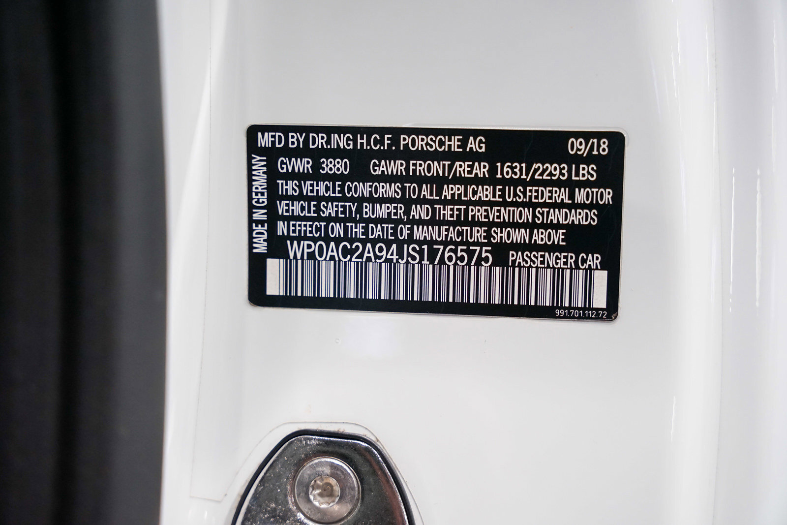 *Porsche 911 GT3 Touring (2018)* * *16,100 miles* * *Manual* * *PCCB* * *18 Way Adaptive Sport Seats Plus* * *Front Axle Lift* * *Front Seat Heating* * *Storage Compartment Lid W/Porsche Crest* * *Sport Seats Plus Backrest Shells In Leather* * *23.7 Gal Fuel Tank* * *Wheels Painted In Satin Aluminum*The Porsche 911 GT3 Touring of the 991.2 generation embodies the perfect blend of power, elegance, and engineering excellence. Inspired by racing traditions and uncompromisingly road-oriented, this sports car offers an exceptional driving experience that will be appreciated even by the most discerning enthusiasts.The GT3 Touring stands out with its refined and clean design. The absence of a prominent rear wing gives the car a more elegant and classic look while maintaining all the high-performance aerodynamic characteristics. The 991.2's aesthetics create a visual sensation of speed even when stationary. The sleek body lines, combined with aggressive air intakes and unique sporty elements, highlight its exclusive character.Under the hood lies a 4.0-liter 6-cylinder flat-six engine, delivering an impressive 500 hp and 339 lb-ft of torque. With this engine, the GT3 Touring accelerates to 60 mph in just 3.7 seconds. The engine is positioned to ensure optimal weight distribution and maximum handling, while the meticulously tuned suspension provides incredible road grip and steering precision.Inside the 911 GT3 Touring, you will find high-quality materials and premium finishes that guarantee comfort on even the longest journeys. The sporty 18-way adjustable seats offer excellent support and cornering hold, as well as comfort on extended trips.The GT3 Touring is not just a fast car; it is a machine that combines precision and dynamism. Porsche engineers have worked to ensure exceptional handling and comfort. The active suspension system and sports steering make every drive more exhilarating and predictable, enhancing driver confidence.The Porsche 911 GT3 Touring 991.2 is a car for those who appreciate and understand the true meaning of sporty driving. It is not just a vehicle but a manifestation of Porsche's philosophy, where every decision is aimed at enhancing the driving experience. Whether you are winding through mountain roads or enjoying a highway journey, the GT3 Touring promises thrilling excitement and unique sensations.*Options:*486 - Transmission: 6 Speed GT Sports Manual included0Q - WhiteP07 - 18 Way Adaptive Sport Seats Plus140 - Black, Leatherette/Fabric Seat Trim039 - Touring Package Exterior In Black474 - Front Axle Lift System082 - 23.7 Gal Fuel Tank450 - Porsche Ceramic Composite Brake (PCCB)341 - Wheels Painted In Satin AluminumP13 - Automatically Dimming Interior & Exterior Mirrors342 - Front Seat Heating810 - Floor Mats583 - Smoking PackageXLU - Sun Visors In AlcantaraXPT - Storage Compartment Lid W/Porsche CrestQH1 - Voice ControlXWK - Sport Seats Plus Backrest Shells In Leather
