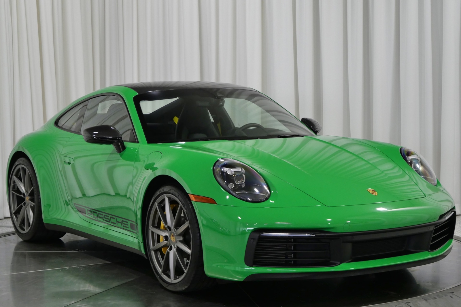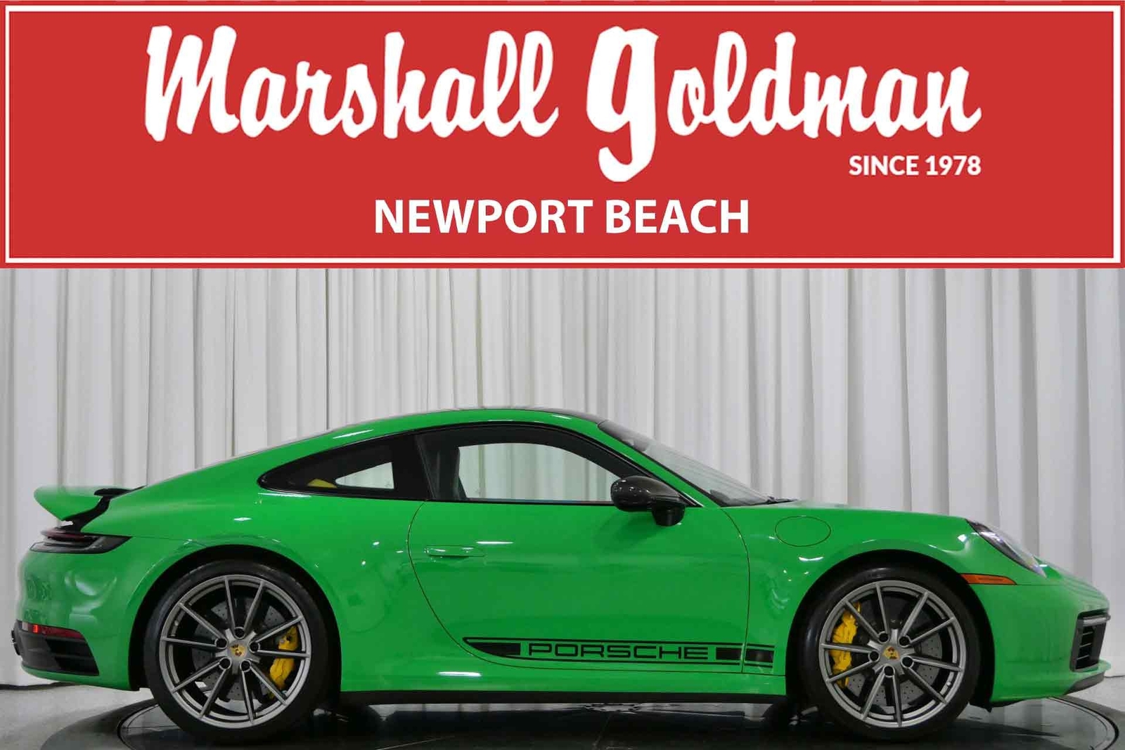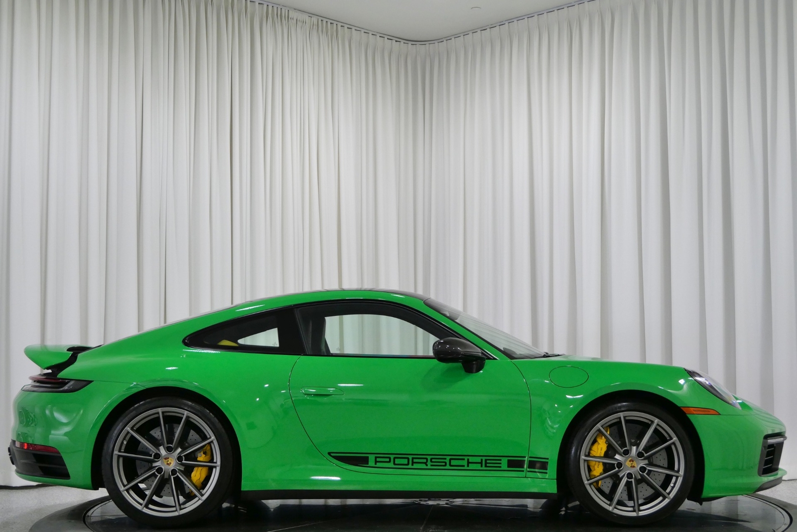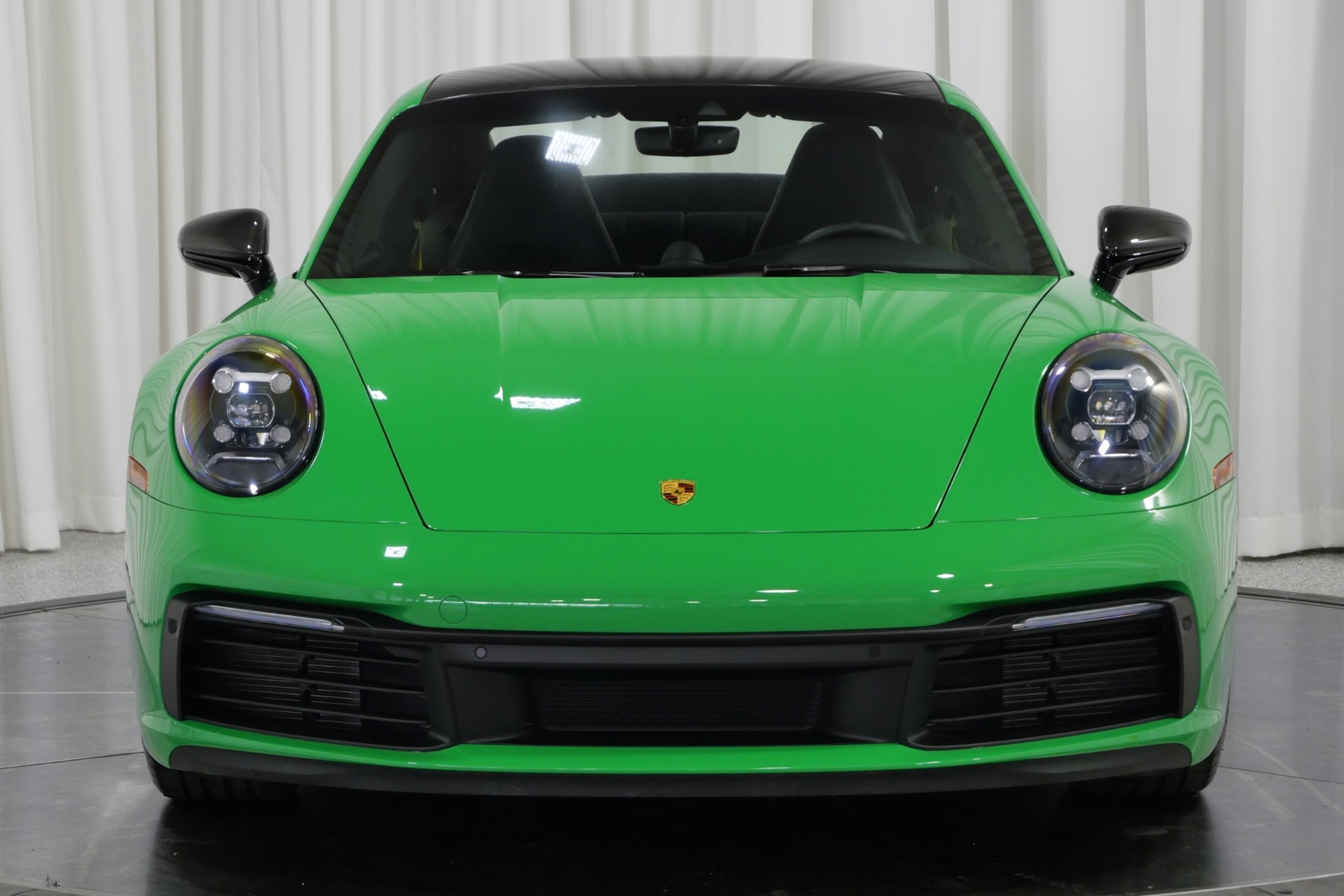 We have just added to our extensive exotic car inventory a beautiful 2021 Porsche 911 Carrera S in Python Green over Black with only 9,282 miles. This Carrera S is loaded with: 3.0 Liter twin turbo H6, 7 speed manual transmission, 20/21 inch satin platinum finish wheels, carbon ceramic brakes with yellow calipers, wheel caps with Porsche crests, Porsche side graphics in black, sport chrono package, sport exhaust system with black tailpipes, heated seats, carbon fiber roof, carbon fiber side mirrors, power folding side mirrors, GT Sport steering wheel, yellow seat belts, Porsche crests embossed in headrests, ambient lighting, lightweight and noise insulating glass, floor mats and much more.
