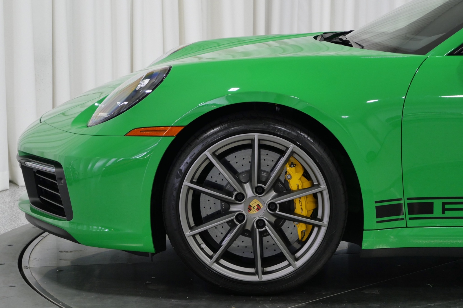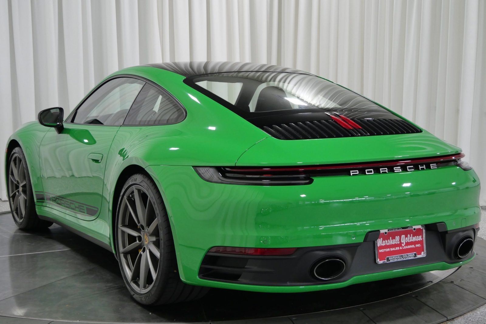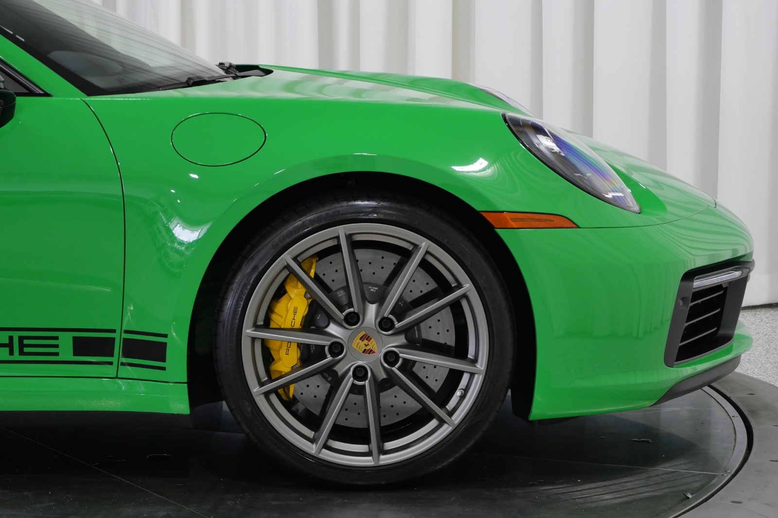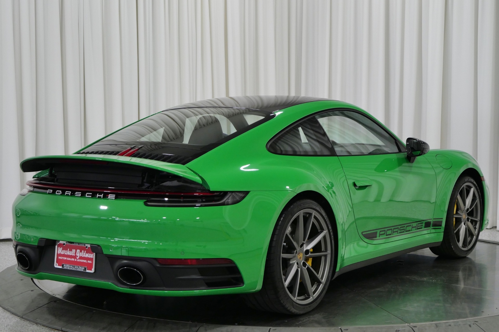 We have just added to our extensive exotic car inventory a beautiful 2021 Porsche 911 Carrera S in Python Green over Black with only 9,282 miles. This Carrera S is loaded with: 3.0 Liter twin turbo H6, 7 speed manual transmission, 20/21 inch satin platinum finish wheels, carbon ceramic brakes with yellow calipers, wheel caps with Porsche crests, Porsche side graphics in black, sport chrono package, sport exhaust system with black tailpipes, heated seats, carbon fiber roof, carbon fiber side mirrors, power folding side mirrors, GT Sport steering wheel, yellow seat belts, Porsche crests embossed in headrests, ambient lighting, lightweight and noise insulating glass, floor mats and much more.