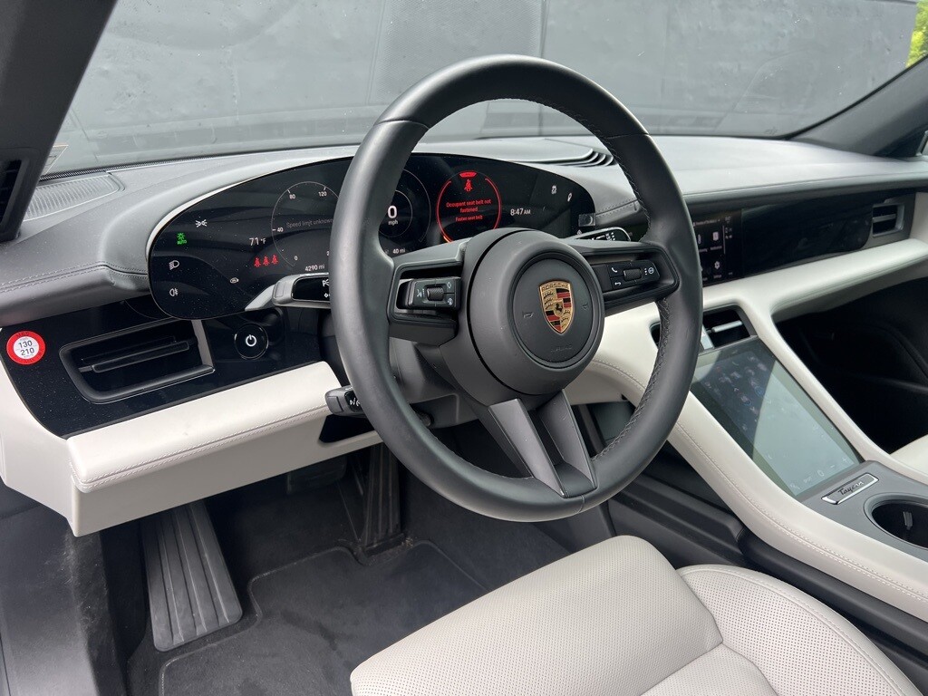 You are looking at a one owner 2024 Porsche Taycan. It is a non-smokers vehicle with 4,290 miles. The options include: Premium Package, Fixed Panoramic Roof in Glass, Porsche Electric Sport Sound, Wheel Center Caps with Colored Porsche Crest, All-Season Tires for 21'' Wheels, 21'' RS Spyder Design Wheels, Porsche Crest on Headrests (Front), Power Seats (14-way) with Comfort Memory, Rear 2+1 Seats, Heated Steering Wheel, Ventilated Seats (Front), Storage Package, BOSE Surround Sound System, On-Board 150 kW/400V DC Charger, Mobile Charger Connect, 25 ft Charging Cable, Porsche Dynamic Light System Plus (PDLS+), Power Folding Exterior Mirrors, Lane Change Assist (LCA), Surround View, Ionizer, Ambient Lighting.