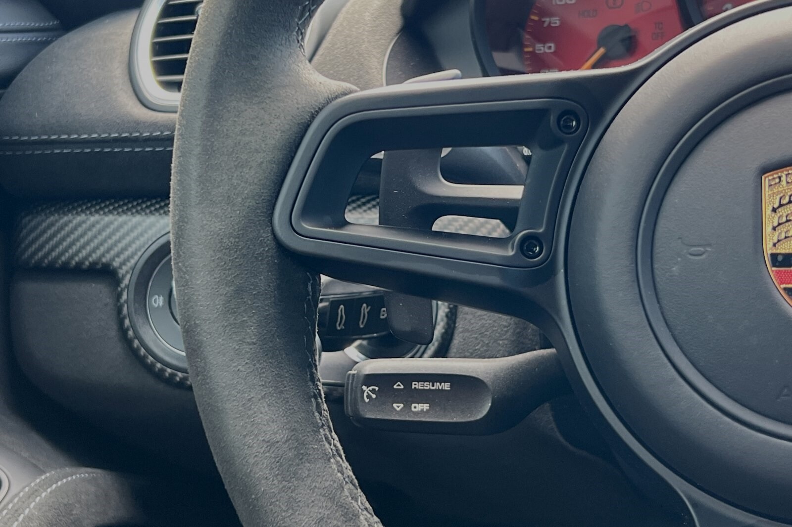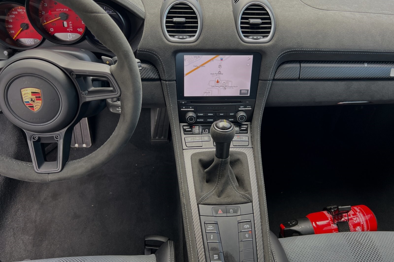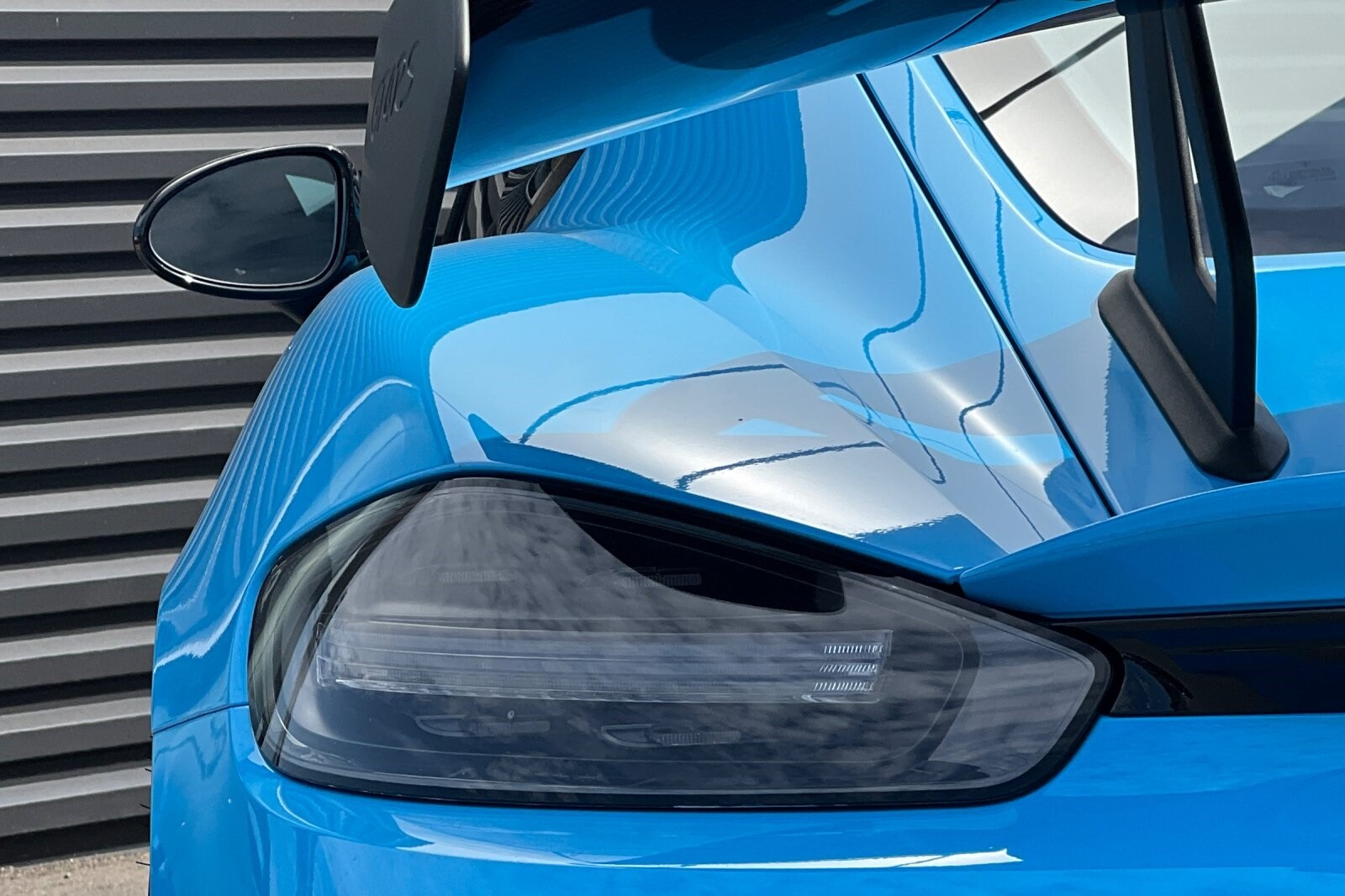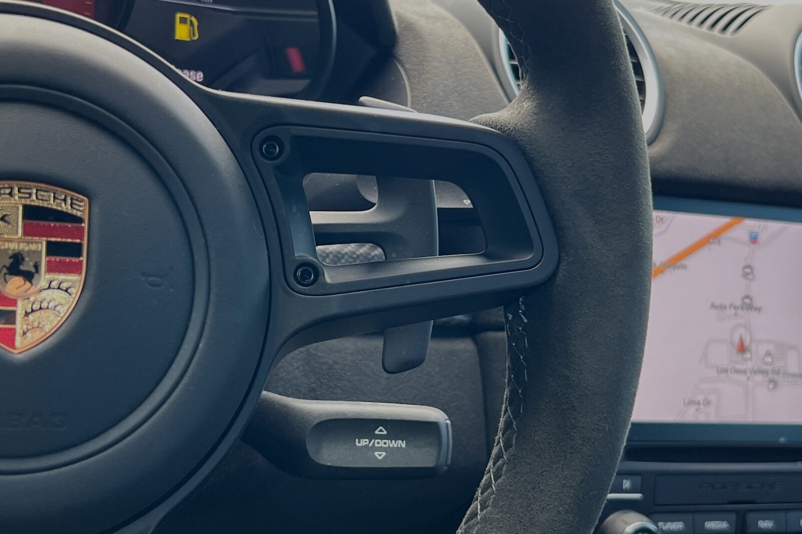 This Porsche San Luis Obispo 2023 Paint to Sample: Riviera Blue Porsche 718 Cayman GT4 RS RWD is well equipped and includes these features and benefits: Chrono Package, Weissach Package, Porsche Approved Certified Pre-Owned Certified, BOSE Surround Sound System, Front Axle Lift System, 4-Wheel Disc Brakes, 8 Speakers, ABS brakes, Adaptive suspension, Air Conditioning, Alloy wheels, AM/FM radio: SiriusXM, Apple CarPlay, Automatic temperature control, Brake assist, Bumpers: body-color, CD player, Delay-off headlights, Driver door bin, Driver vanity mirror, Dual front impact airbags, Dual front side impact airbags, DVD-Audio, Electronic Stability Control, Exterior Parking Camera Rear, Four wheel independent suspension, Front anti-roll bar, Front Bucket Seats, Front Center Armrest, Front dual zone A/C, Front reading lights, Full Bucket Seats, Fully automatic headlights, Garage door transmitter: HomeLink, Heated door mirrors, High intensity discharge headlights: Bi-Xenon, Illuminated entry, Knee airbag, Leather Seat Trim w/Race-Tex Seat Centers, Low tire pressure warning, Navigation System, Occupant sensing airbag, Outside temperature display, Overhead airbag, Passenger door bin, Passenger vanity mirror, Power door mirrors, Power driver seat, Power passenger seat, Power steering, Power windows, Radio data system, Radio: Navigation w/Porsche Connect, Rear anti-roll bar, Rear window defroster, Remote keyless entry, Security system, Speed control, Spoiler, Sport steering wheel, Tachometer, Telescoping steering wheel, Tilt steering wheel, Traction control, Trip computer, Variably intermittent wipers, and Wheels: 20 718 Cayman GT4 RS Forged Aluminum. BOSE Surround Sound System, Chrono Package, Front Axle Lift System, Weissach Package.