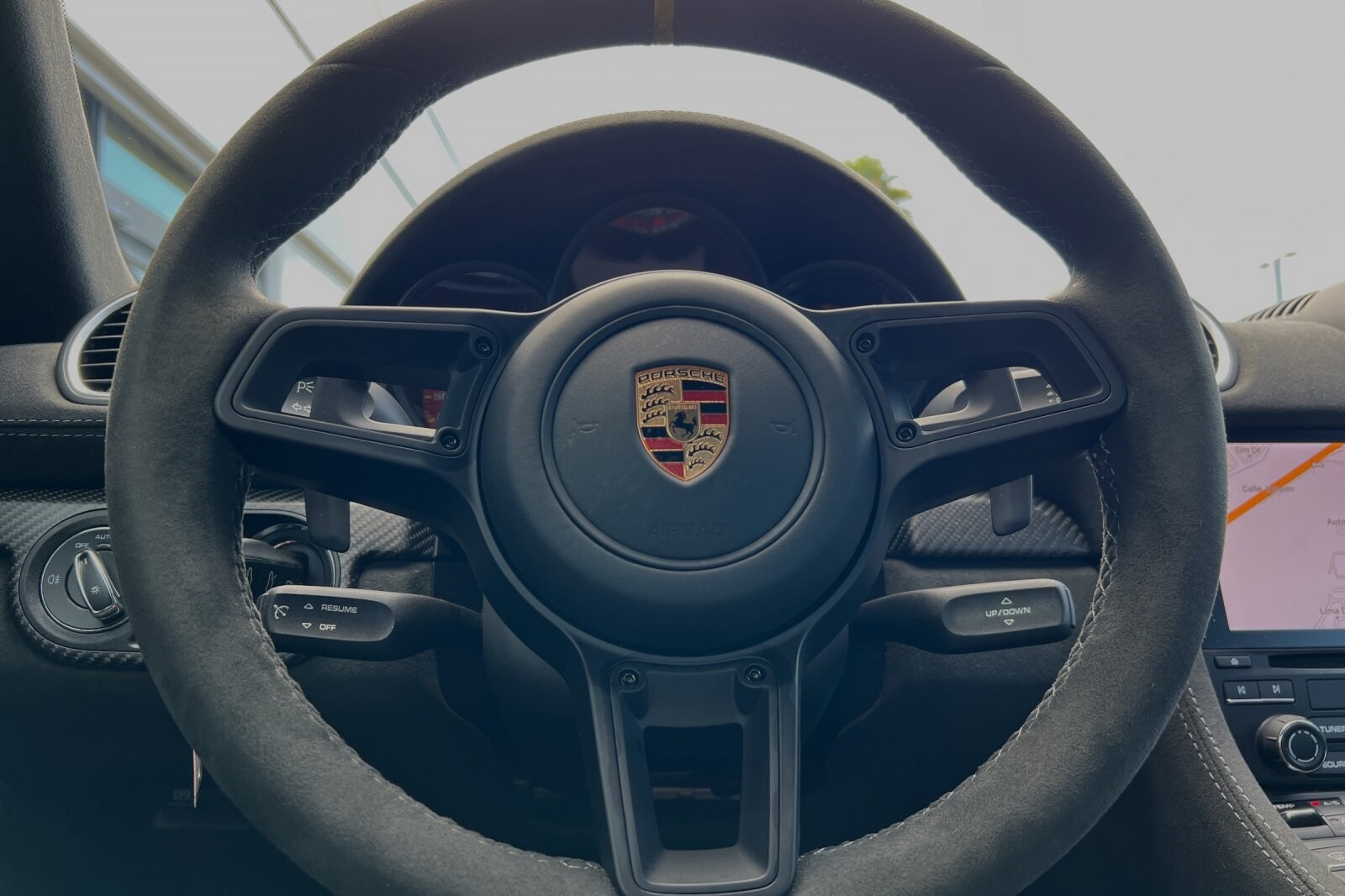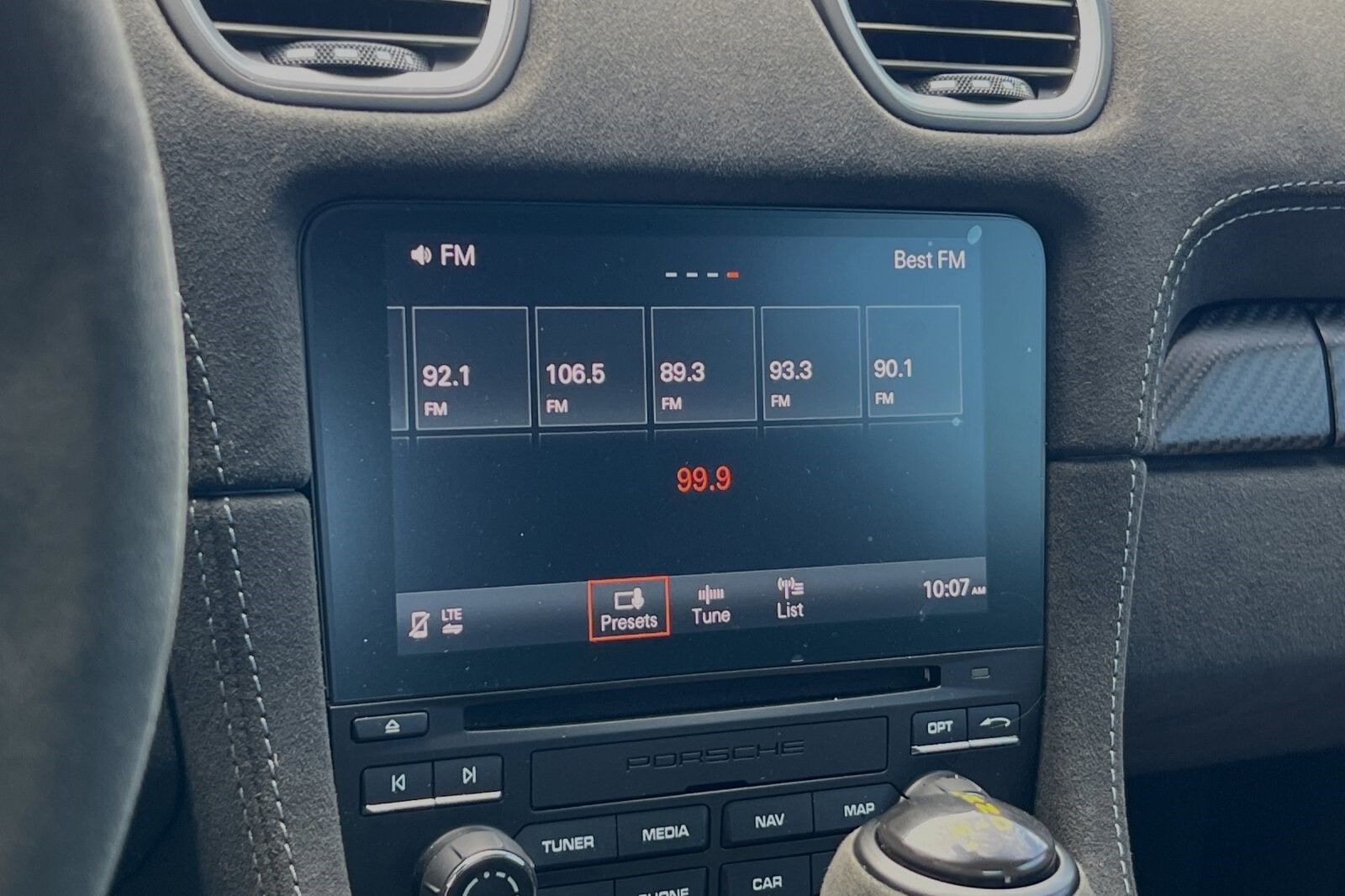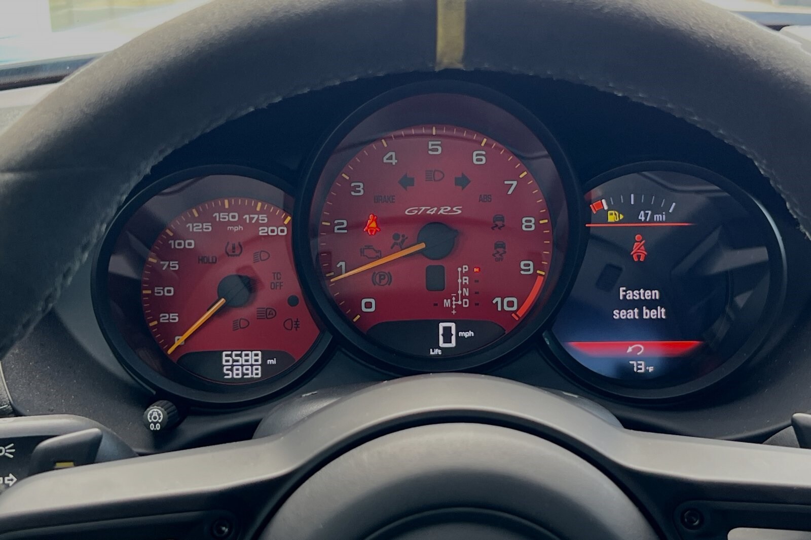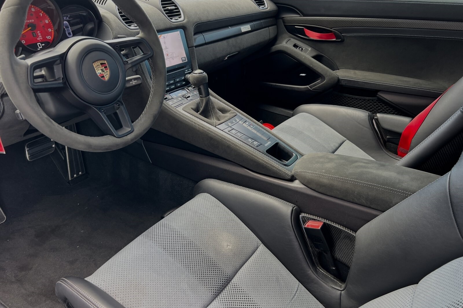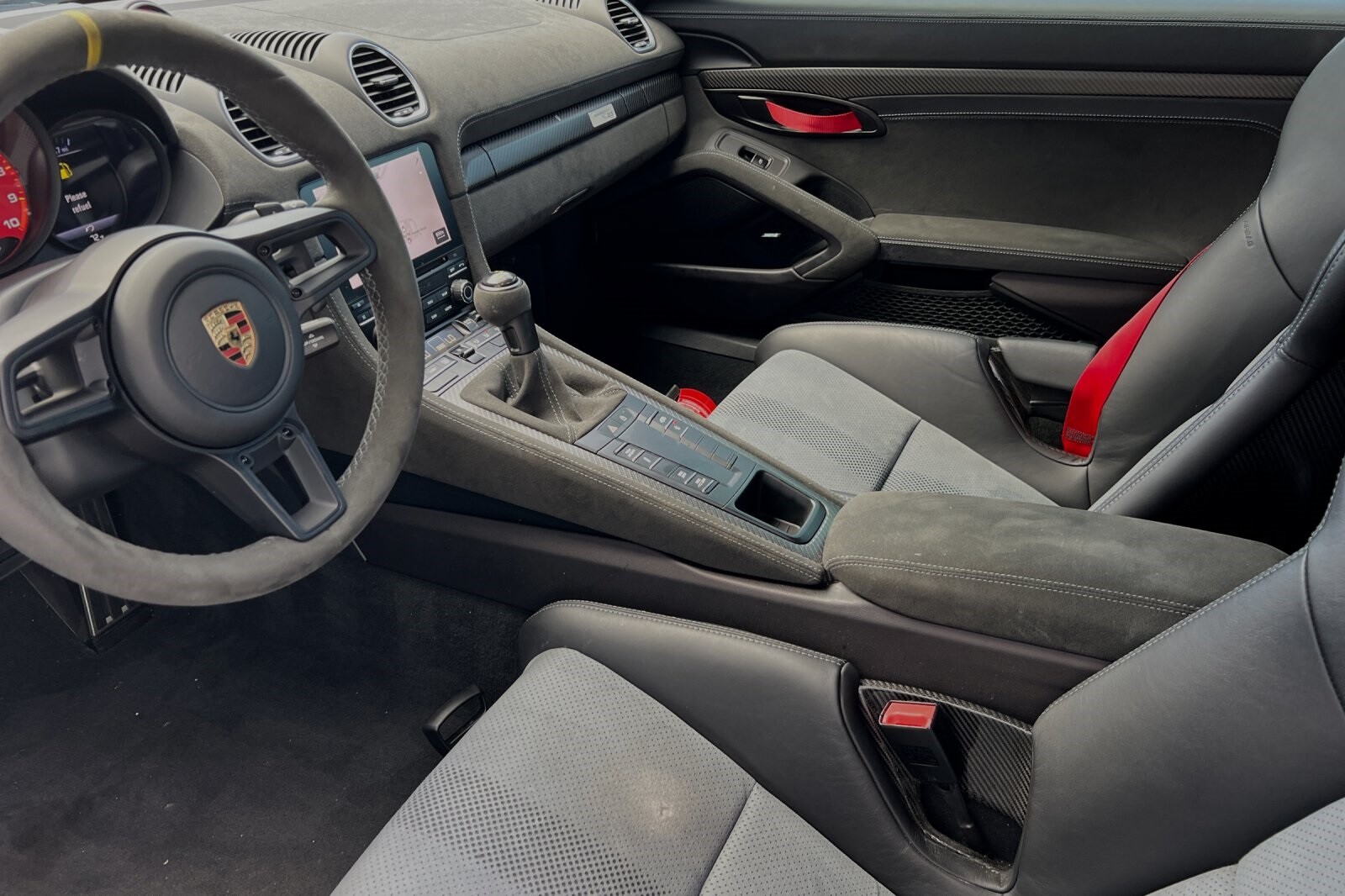 This Porsche San Luis Obispo 2023 Paint to Sample: Riviera Blue Porsche 718 Cayman GT4 RS RWD is well equipped and includes these features and benefits: Chrono Package, Weissach Package, Porsche Approved Certified Pre-Owned Certified, BOSE Surround Sound System, Front Axle Lift System, 4-Wheel Disc Brakes, 8 Speakers, ABS brakes, Adaptive suspension, Air Conditioning, Alloy wheels, AM/FM radio: SiriusXM, Apple CarPlay, Automatic temperature control, Brake assist, Bumpers: body-color, CD player, Delay-off headlights, Driver door bin, Driver vanity mirror, Dual front impact airbags, Dual front side impact airbags, DVD-Audio, Electronic Stability Control, Exterior Parking Camera Rear, Four wheel independent suspension, Front anti-roll bar, Front Bucket Seats, Front Center Armrest, Front dual zone A/C, Front reading lights, Full Bucket Seats, Fully automatic headlights, Garage door transmitter: HomeLink, Heated door mirrors, High intensity discharge headlights: Bi-Xenon, Illuminated entry, Knee airbag, Leather Seat Trim w/Race-Tex Seat Centers, Low tire pressure warning, Navigation System, Occupant sensing airbag, Outside temperature display, Overhead airbag, Passenger door bin, Passenger vanity mirror, Power door mirrors, Power driver seat, Power passenger seat, Power steering, Power windows, Radio data system, Radio: Navigation w/Porsche Connect, Rear anti-roll bar, Rear window defroster, Remote keyless entry, Security system, Speed control, Spoiler, Sport steering wheel, Tachometer, Telescoping steering wheel, Tilt steering wheel, Traction control, Trip computer, Variably intermittent wipers, and Wheels: 20 718 Cayman GT4 RS Forged Aluminum. BOSE Surround Sound System, Chrono Package, Front Axle Lift System, Weissach Package.