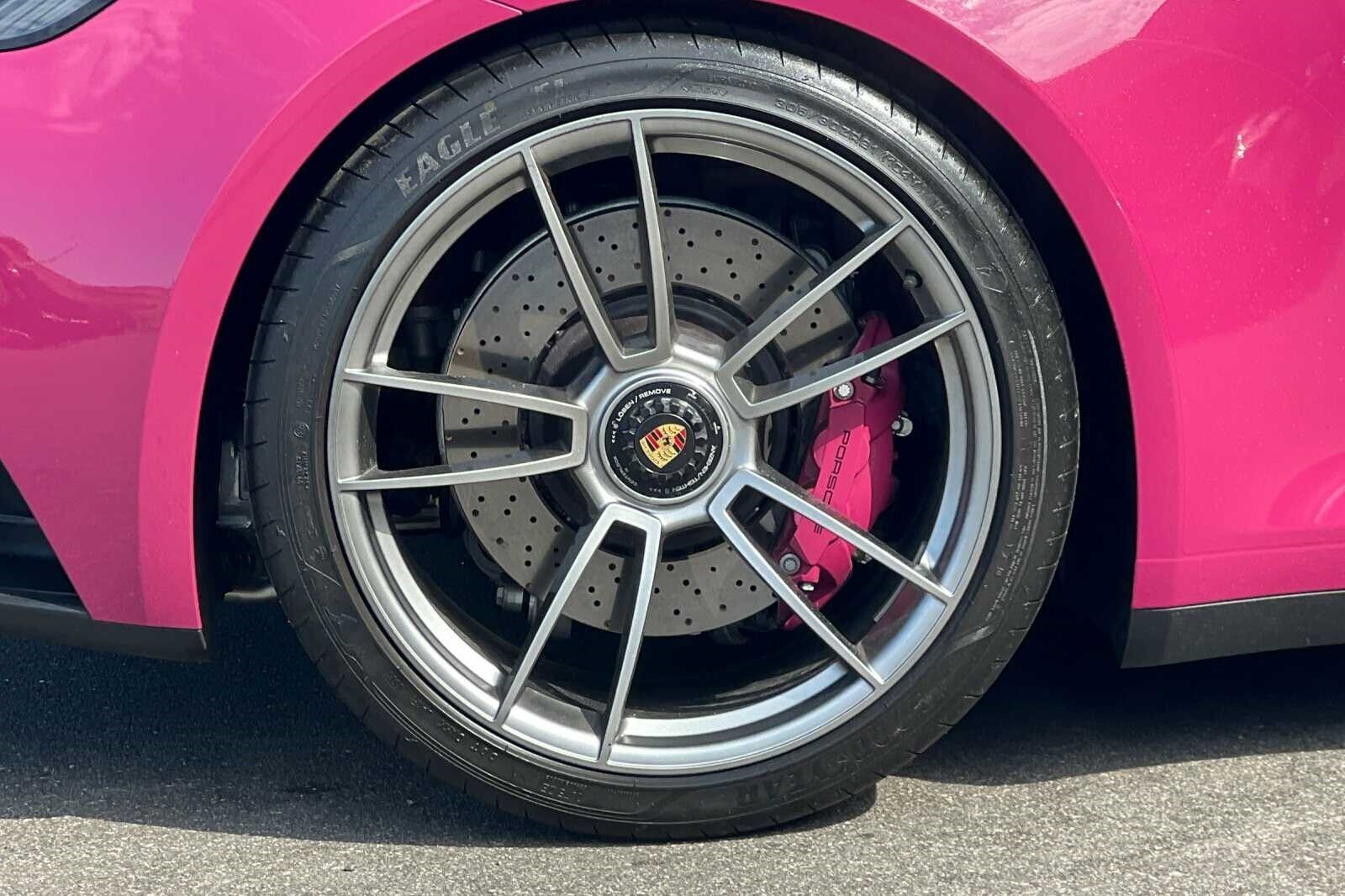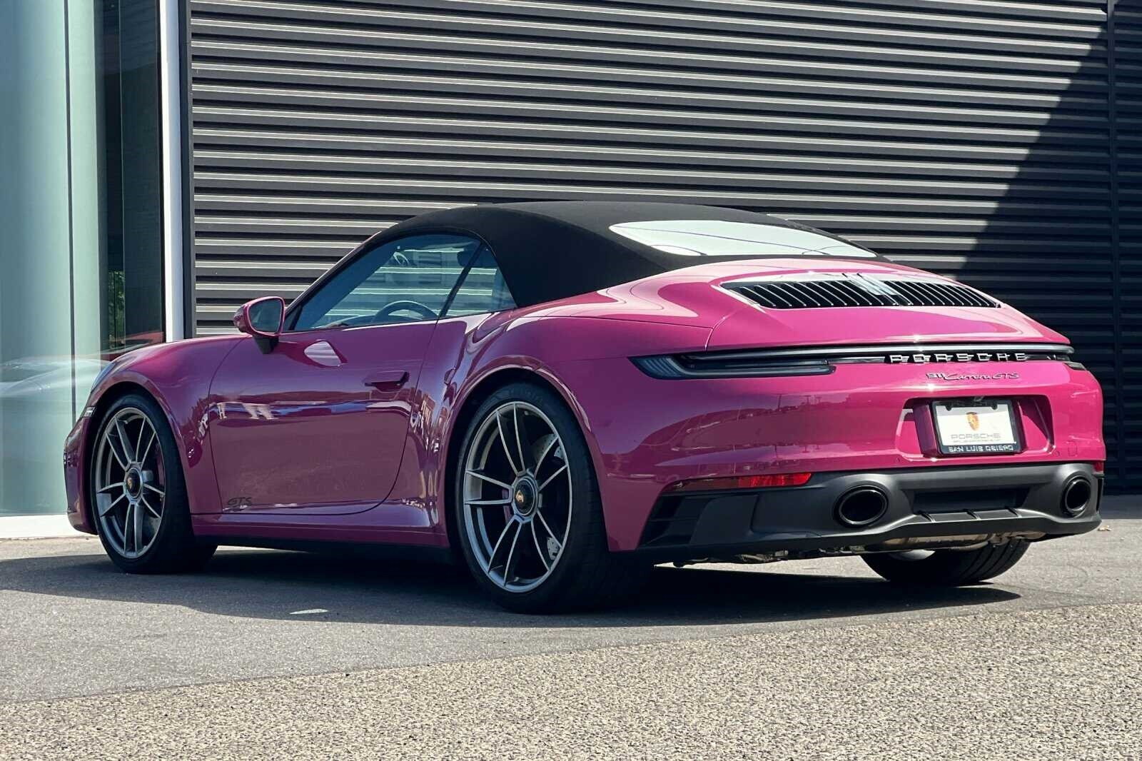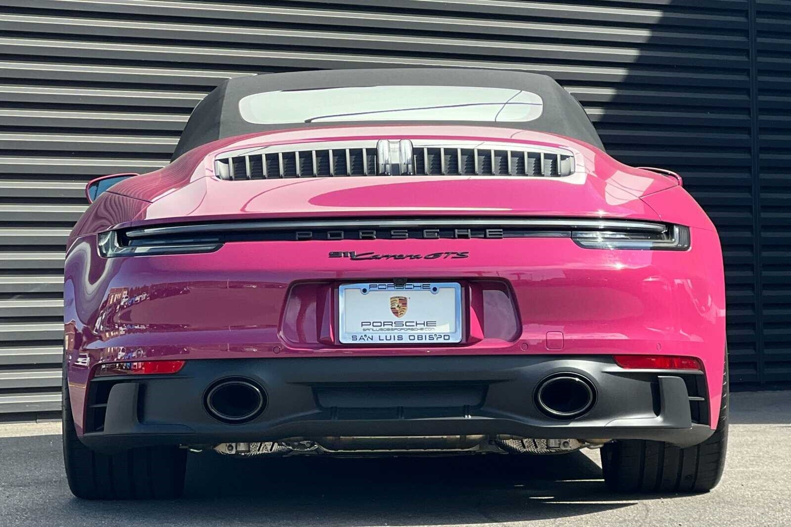 This Porsche San Luis Obispo 2023 Ruby Star Neo Porsche 911 Carrera GTS is well equipped and includes these features and benefits: 18-Way Adaptive Sport Seats Plus w/Memory Package, 930 Leather Package, Premium Package (Ambient Lighting, BOSE Surround Sound System, Lane Change Assist (LCA), Power Folding Exterior Mirrors, and Surround View), Storage Package, ABS brakes, Alloy wheels, Electronic Stability Control, Front dual zone A/C, Heated door mirrors, Heated front seats, Heated GT Sport Steering Wheel w/Carbon Fiber, Illuminated entry, Low tire pressure warning, Porsche Communication Management, Remote keyless entry, Traction control, 4-Way Sport Seats Plus, 4-Wheel Disc Brakes, 8 Speakers, Adaptive suspension, Air Conditioning, Auto High-beam Headlights, Auto-dimming door mirrors, Auto-dimming Rear-View mirror, Automatic temperature control, Brake assist, Bumpers: body-color, Convertible roof lining, Convertible roof wind blocker, Delay-off headlights, Driver door bin, Driver vanity mirror, Dual front impact airbags, Dual front side impact airbags, Exterior Parking Camera Rear, Four wheel independent suspension, Front anti-roll bar, Front Bucket Seats, Front Center Armrest, Front reading lights, Fully automatic headlights, Garage door transmitter: HomeLink, Glass rear window, Integrated roll-over protection, Leather/Race-Tex Seat Trim, Navigation system: Porsche Communication Management (PCM), Occupant sensing airbag, Outside temperature display, Overhead airbag, Overhead console, Passenger door bin, Passenger vanity mirror, Power convertible roof, Power door mirrors, Power driver seat, Power passenger seat, Power steering, Power windows, Radio data system, Rain sensing wipers, Rear anti-roll bar, Rear fog lights, Rear window defroster, Security system, Speed control, Split folding rear seat, Spoiler, Sport steering wheel, Steering wheel mounted audio controls, Tachometer, Telescoping steering wheel, Tilt steering wheel, Trip computer, Variably intermittent wipers, and Wheels: 20 Fr/21 Rr 911 Turbo S in Satin Black. 360 Camera, Active Parking Assist, Adaptive Cruise Control, Adaptive Headlights, Android Auto, Apple Carplay, Automatic Headlights, Blind-Spot Monitors, Bluetooth, Collision Avoidance System, Collision Warning Alert System, Drowsiness Alert, Heads-Up Display, Heated/Cooled Seats, Keyless Access w/Push Button Start, Lane Keeping Assist, Navigation, Smartphone App Integration, Touchscreen Controls, Voice Recognition, Wi-Fi Hotspot, 18-Way Adaptive Sport Seats Plus w/Memory Package, 930 Leather Package, ABS brakes, Alloy wheels, Ambient Lighting, BOSE Surround Sound System, Electronic Stability Control, Front dual zone A/C, Heated door mirrors, Heated front seats, Heated GT Sport Steering Wheel w/Carbon Fiber, Illuminated entry, Lane Change Assist (LCA), Low tire pressure warning, Porsche Communication Management, Power Folding Exterior Mirrors, Premium Package, Remote keyless entry, Storage Package, Surround View, Traction control.