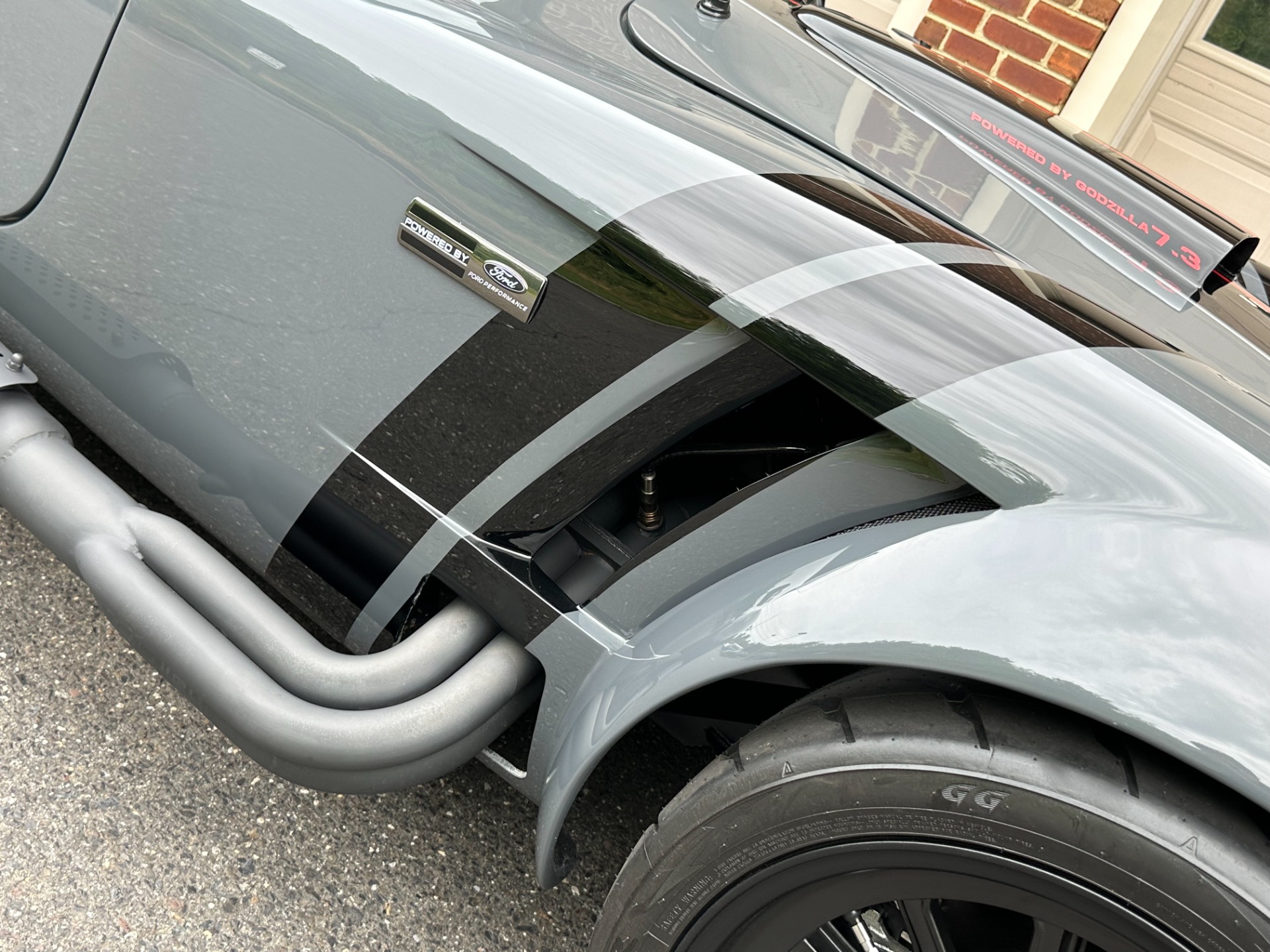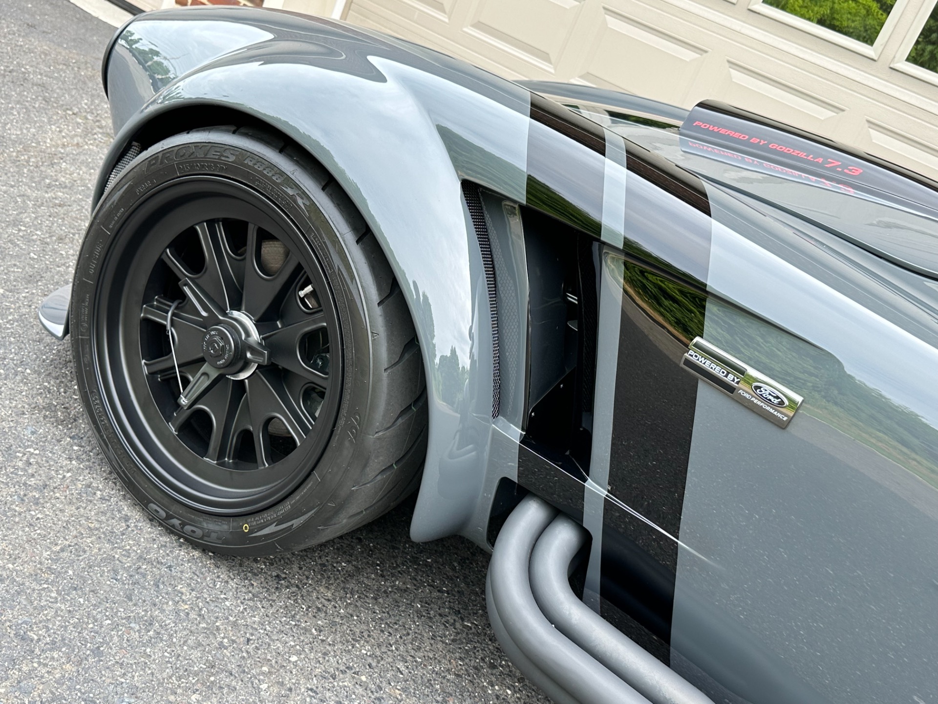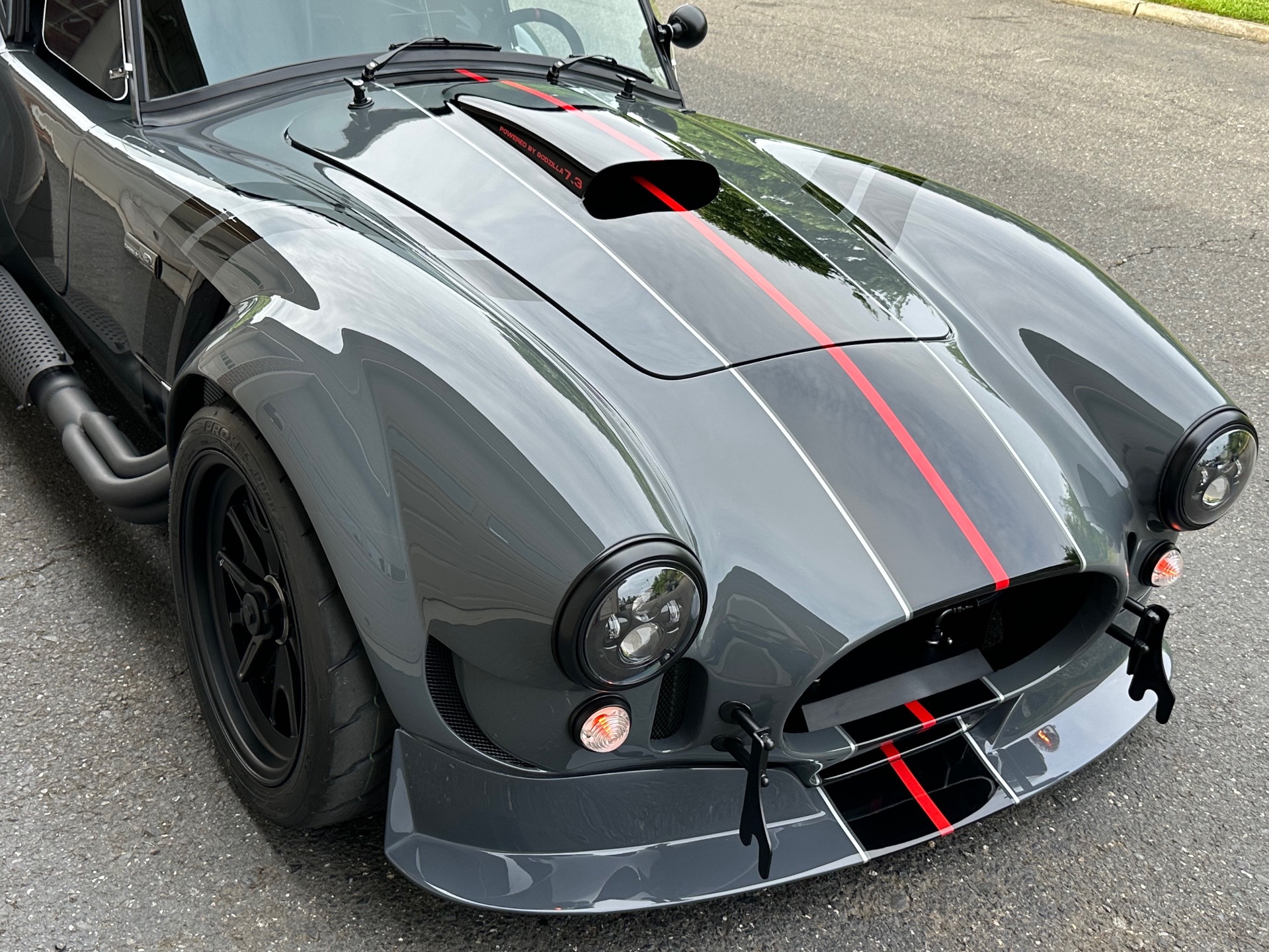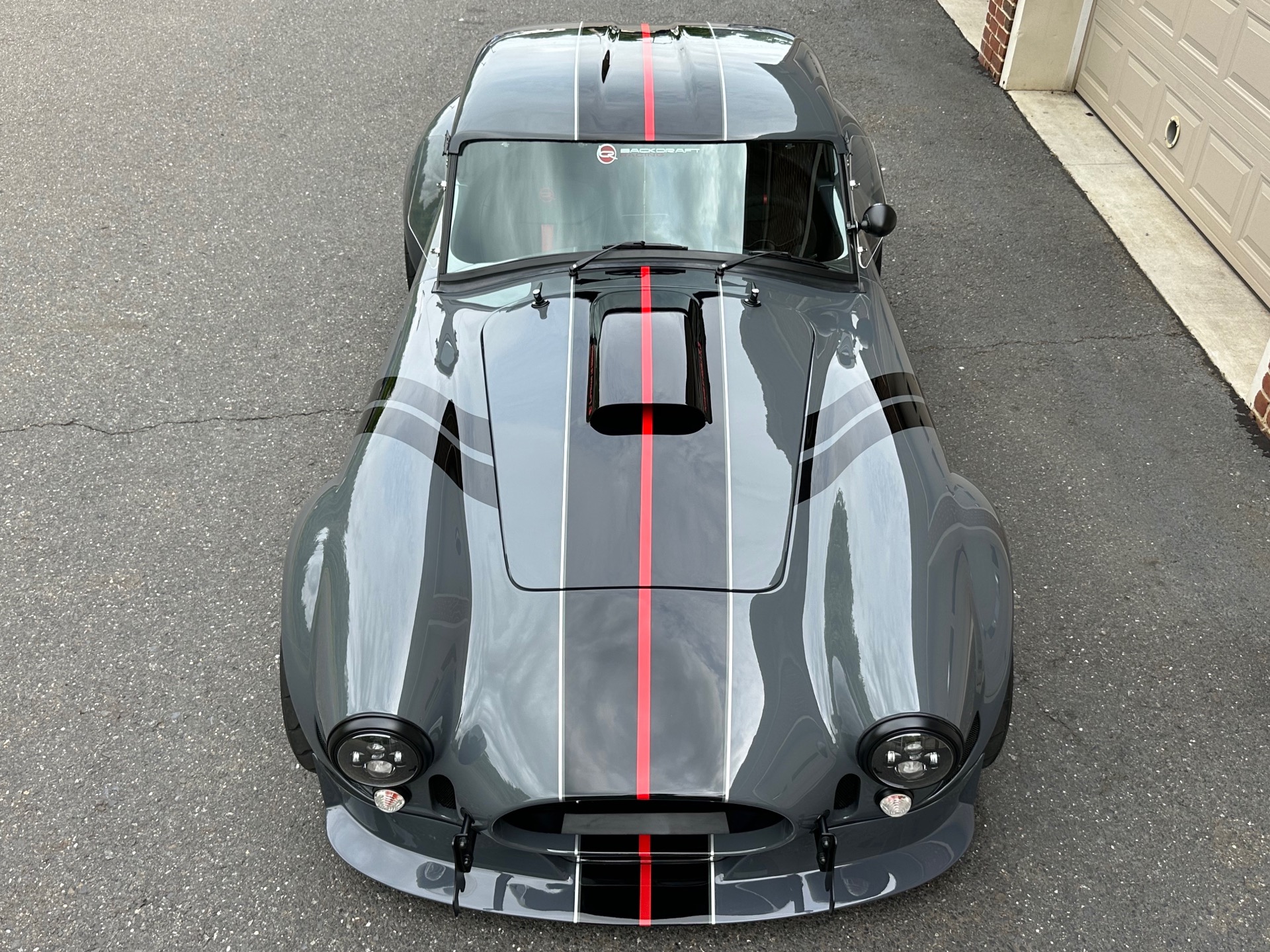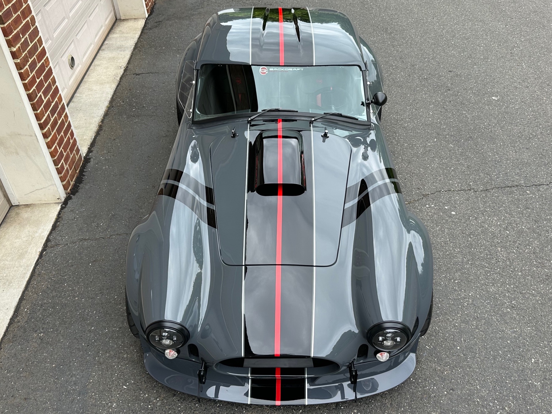 Jonathan Motorcars is thrilled to introduce the stunning 1965 Backdraft Racing Cobra RT4B, a true masterpiece that exudes power and style. This exceptional Cobra boasts a mere 65 miles on the odometer, ensuring a pristine and exhilarating driving experience for its next lucky owner. Under the hood, this Cobra is equipped with a formidable 7.3L Godzilla V8 engine, delivering an impressive 585 horsepower that promises heart-pounding performance on the road. The engine's raw power is perfectly complemented by the sleek and sophisticated Grigio Telestro paint color, accented by a striking multi-color stripe in black, silver, and red. Step inside the cockpit of this Cobra and be enveloped in luxury with the black leather interior featuring exquisite cross-stitch detailing. The interior is further enhanced by a host of premium features, including carbon fiber dash, auto X gauges, heated seats, and a custom double diamond stitch leather interior that exudes elegance and comfort. In addition to its powerful engine and luxurious interior, this Cobra comes loaded with a range of special features that elevate its performance and aesthetics. From the carbon fiber E break recess to the custom clever hood and painted front spoiler, every detail of this Cobra has been meticulously crafted to perfection. This exceptional Backdraft Racing Cobra RT4B is now available for sale at Jonathan Motorcars, ready for immediate delivery to its new home. With worldwide shipping options and financing available, there has never been a better time to make this dream car a reality. Contact our dedicated sales team today and make this iconic Cobra the centerpiece of your collection.