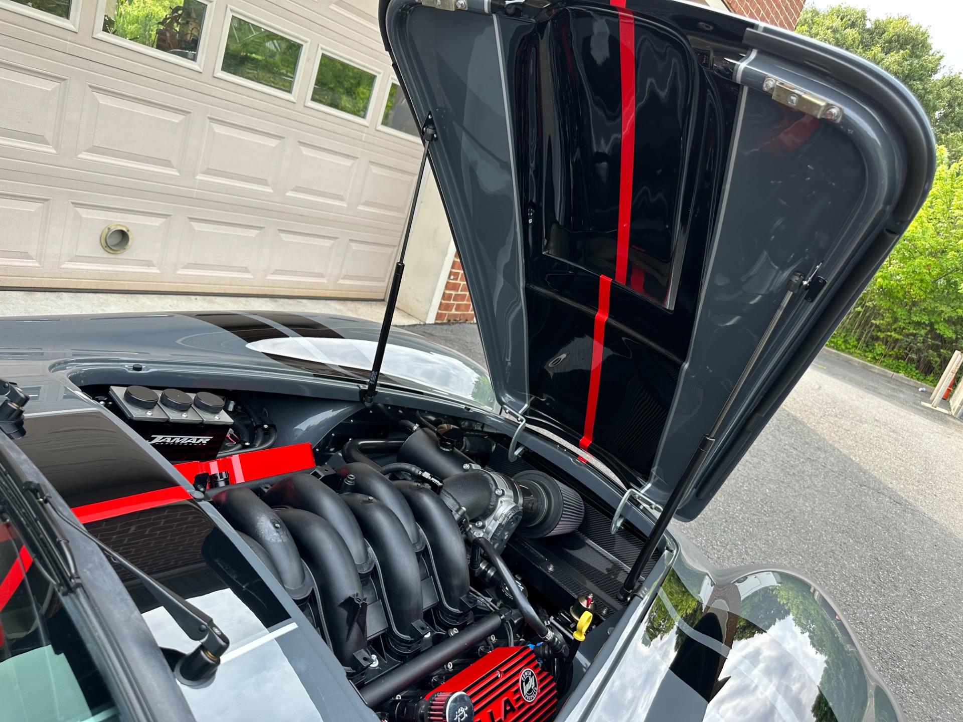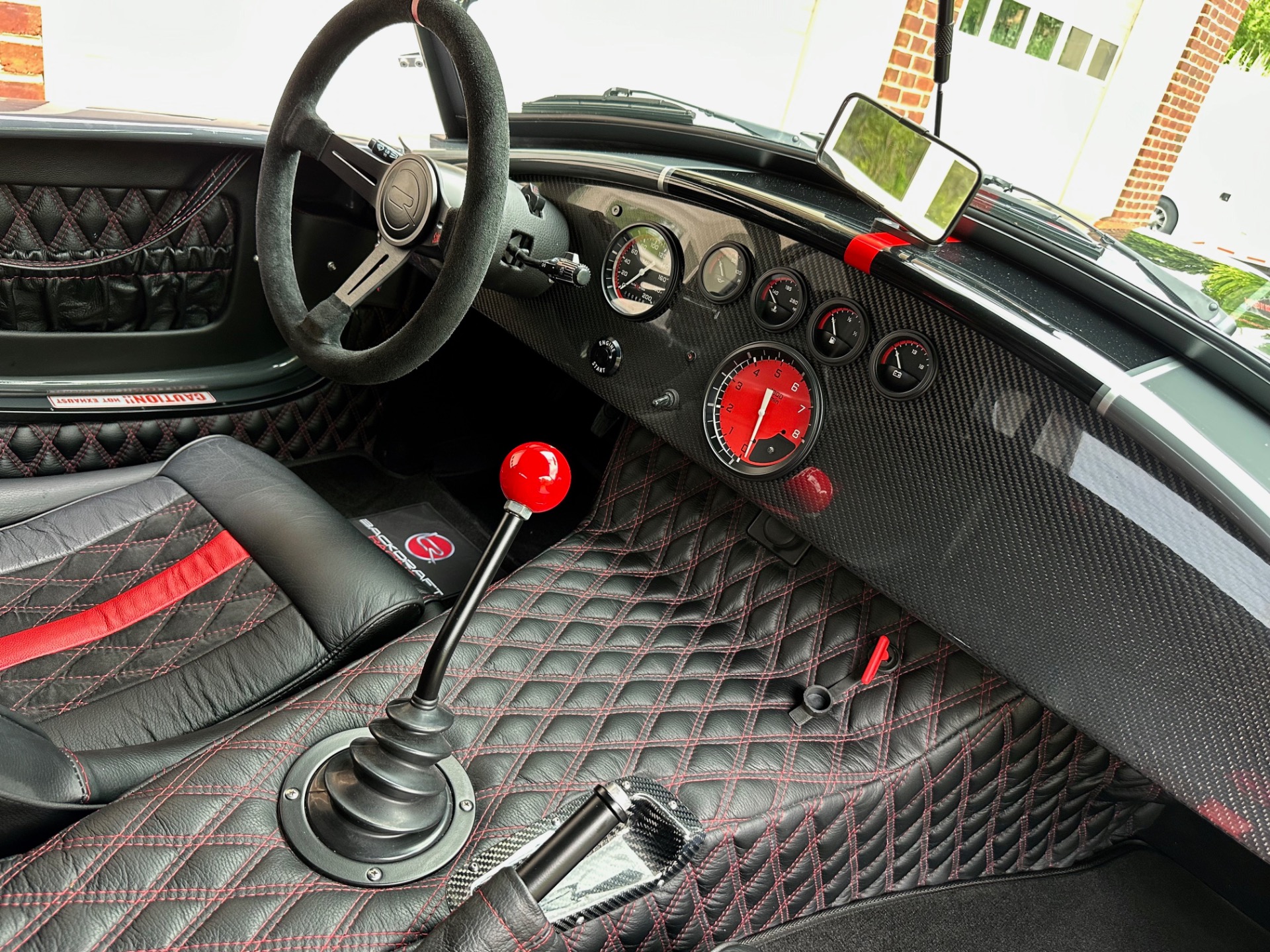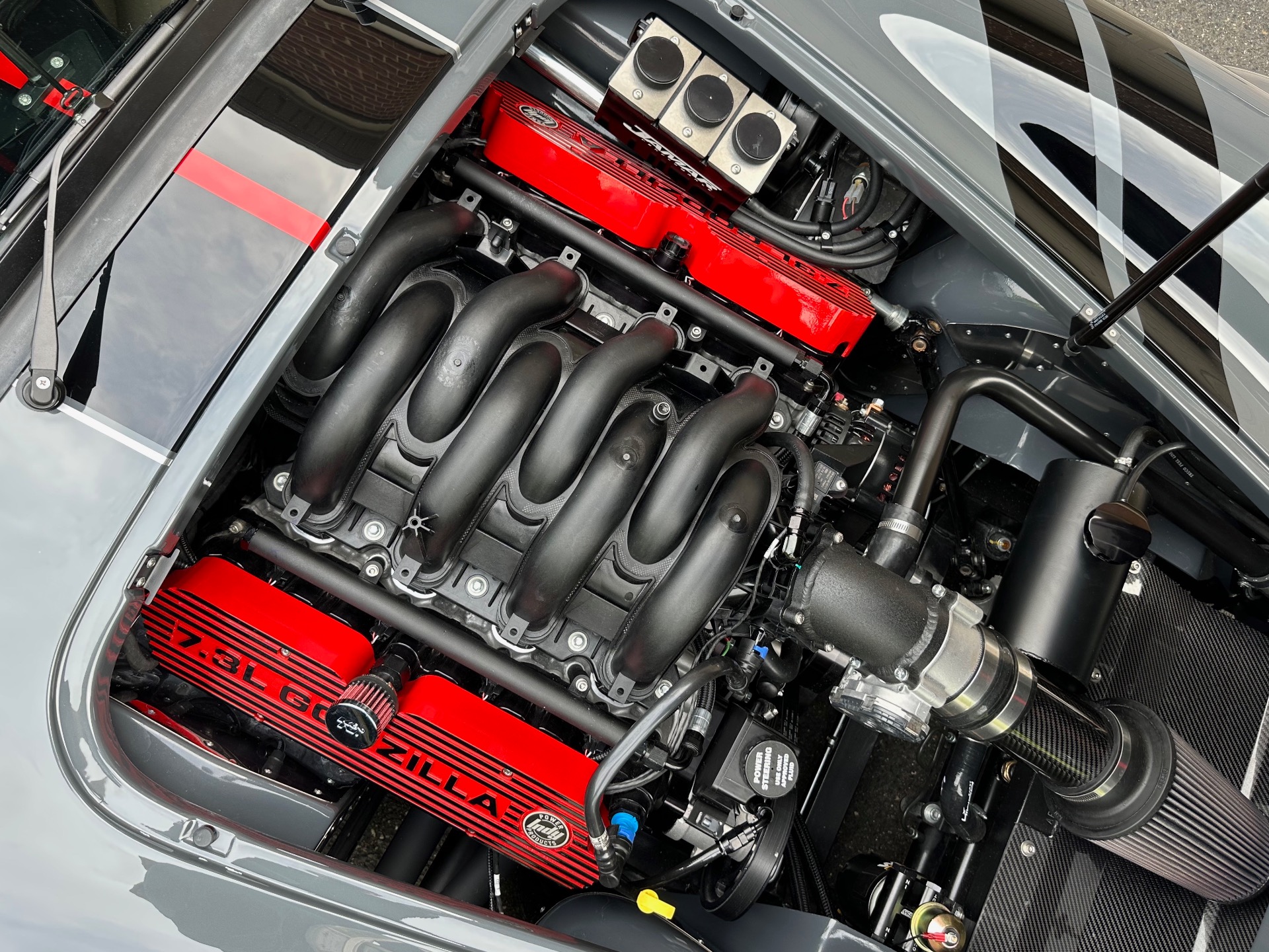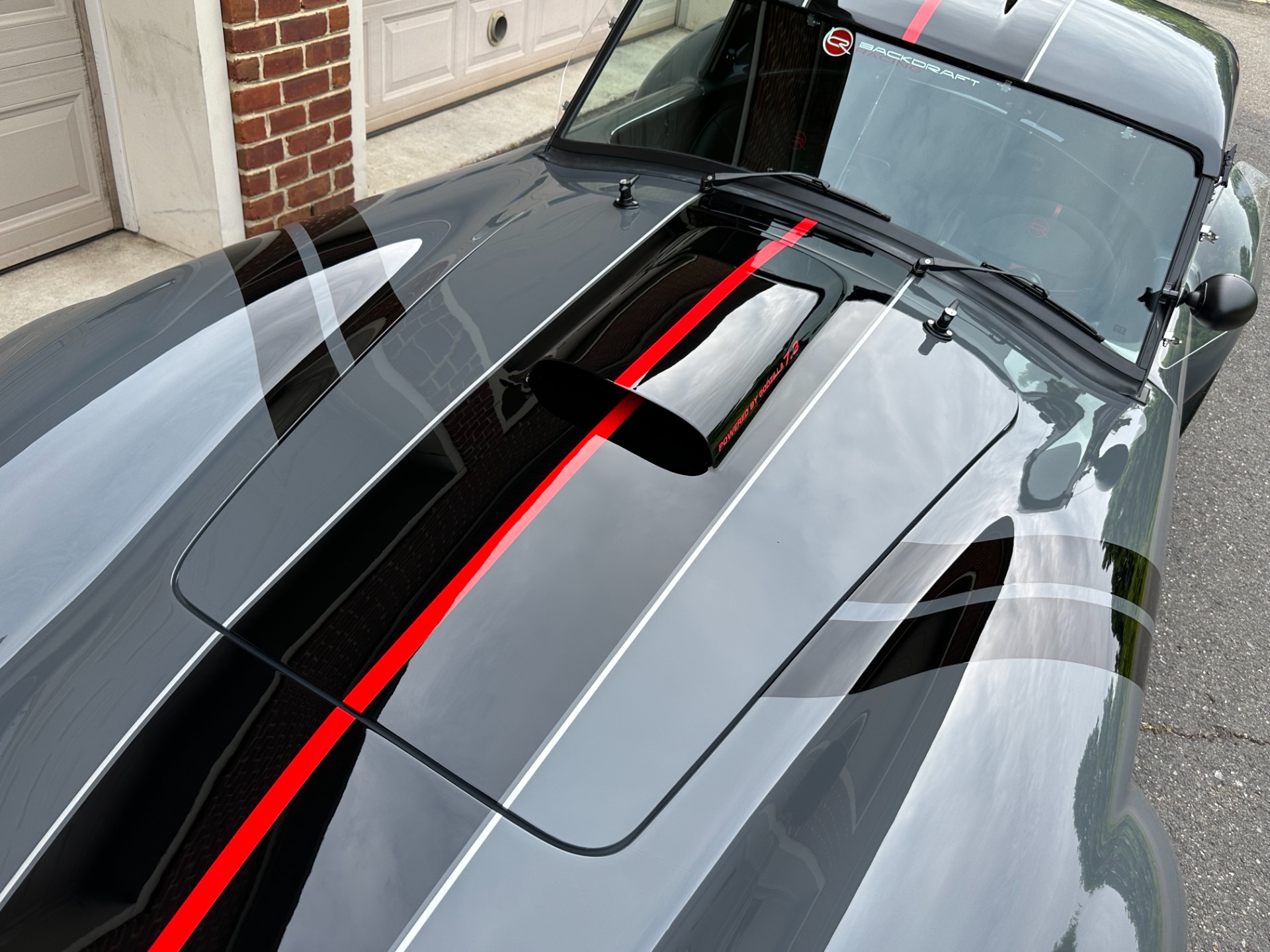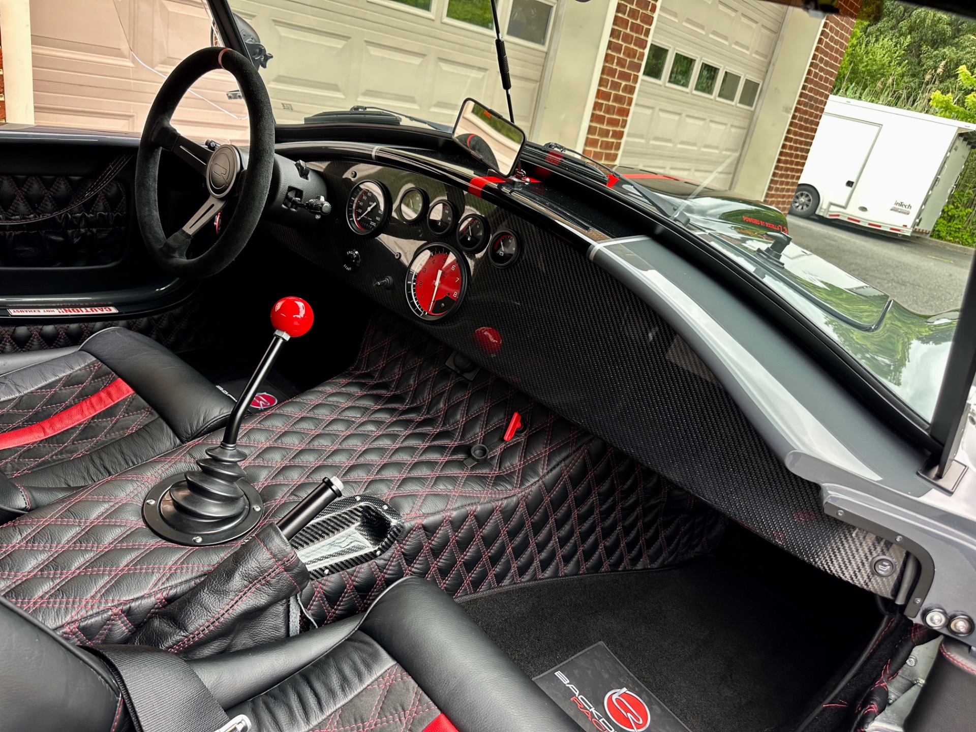 Jonathan Motorcars is thrilled to introduce the stunning 1965 Backdraft Racing Cobra RT4B, a true masterpiece that exudes power and style. This exceptional Cobra boasts a mere 65 miles on the odometer, ensuring a pristine and exhilarating driving experience for its next lucky owner. Under the hood, this Cobra is equipped with a formidable 7.3L Godzilla V8 engine, delivering an impressive 585 horsepower that promises heart-pounding performance on the road. The engine's raw power is perfectly complemented by the sleek and sophisticated Grigio Telestro paint color, accented by a striking multi-color stripe in black, silver, and red. Step inside the cockpit of this Cobra and be enveloped in luxury with the black leather interior featuring exquisite cross-stitch detailing. The interior is further enhanced by a host of premium features, including carbon fiber dash, auto X gauges, heated seats, and a custom double diamond stitch leather interior that exudes elegance and comfort. In addition to its powerful engine and luxurious interior, this Cobra comes loaded with a range of special features that elevate its performance and aesthetics. From the carbon fiber E break recess to the custom clever hood and painted front spoiler, every detail of this Cobra has been meticulously crafted to perfection. This exceptional Backdraft Racing Cobra RT4B is now available for sale at Jonathan Motorcars, ready for immediate delivery to its new home. With worldwide shipping options and financing available, there has never been a better time to make this dream car a reality. Contact our dedicated sales team today and make this iconic Cobra the centerpiece of your collection.