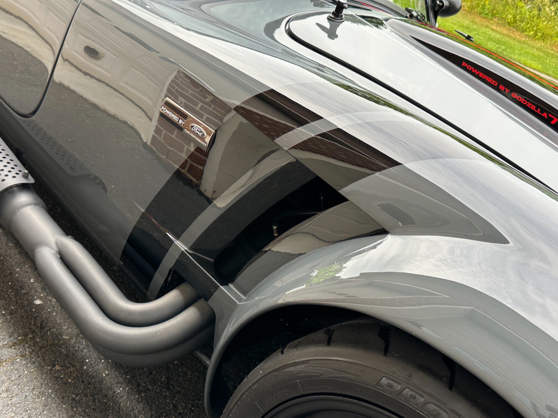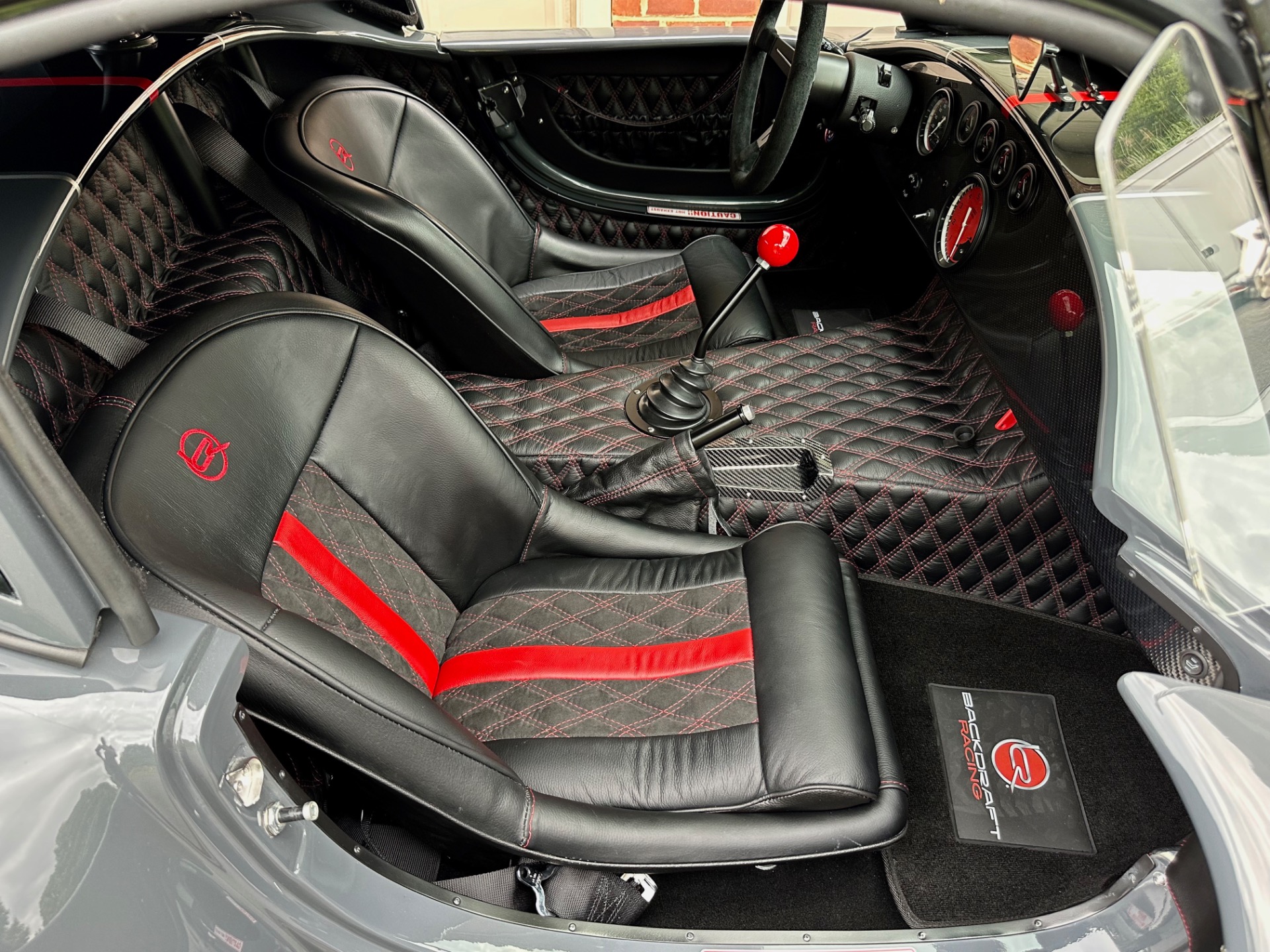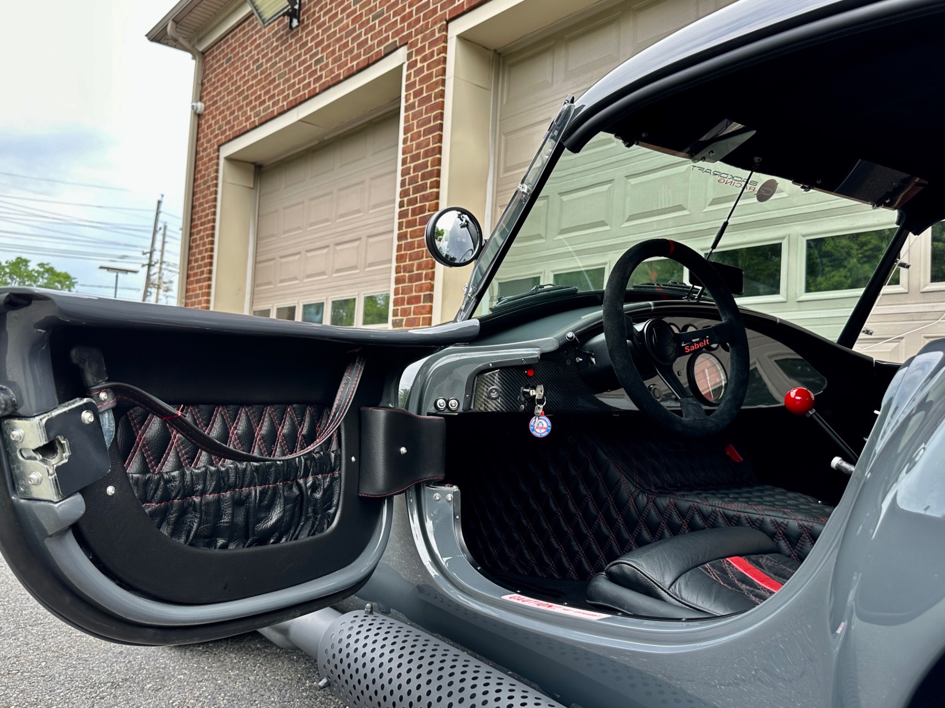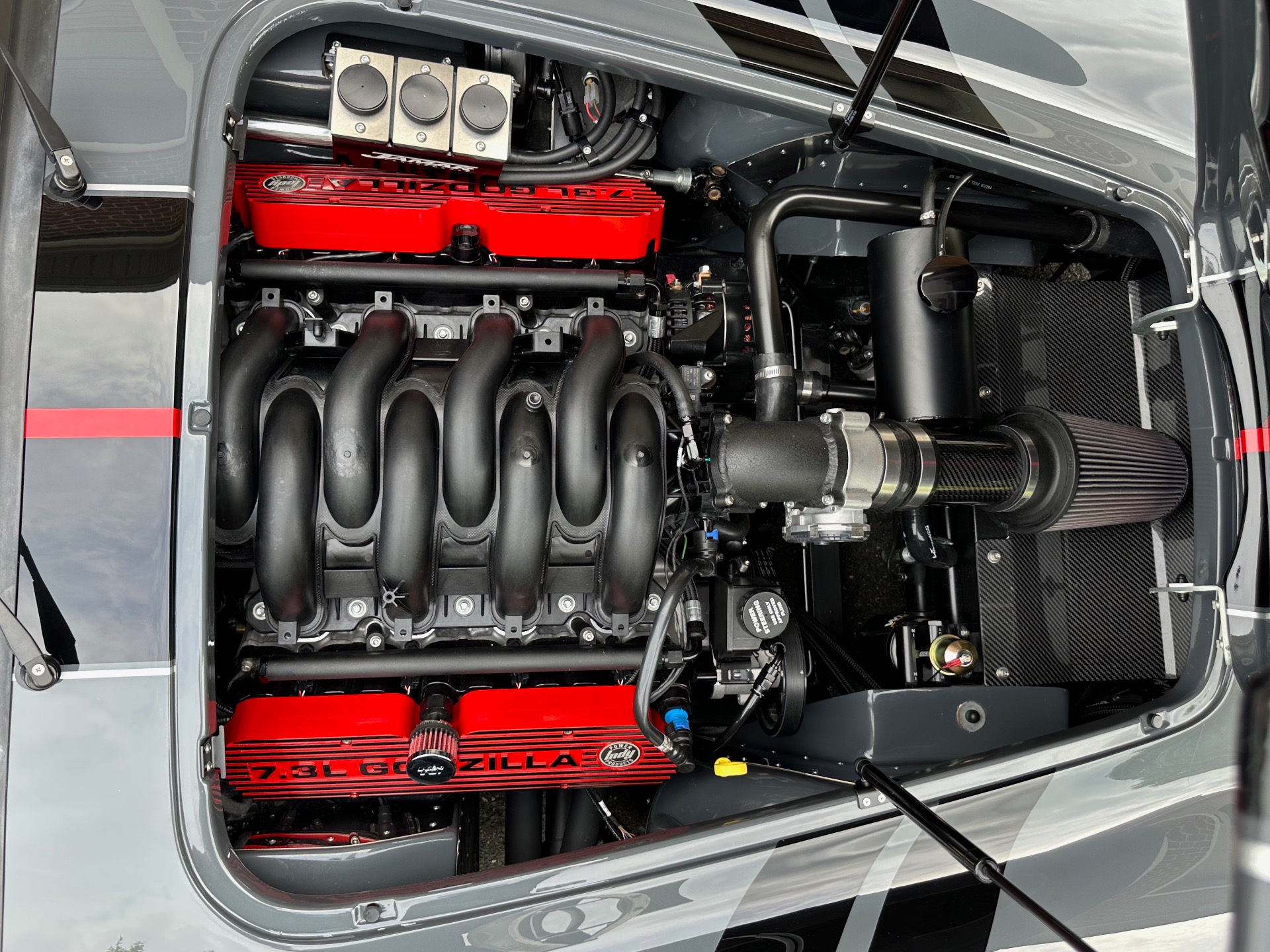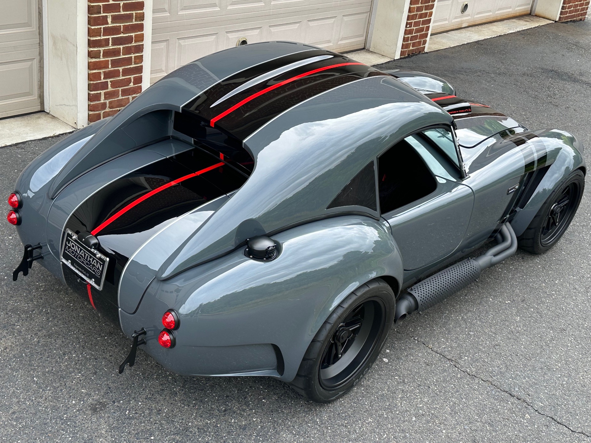Jonathan Motorcars is thrilled to introduce the stunning 1965 Backdraft Racing Cobra RT4B, a true masterpiece that exudes power and style. This exceptional Cobra boasts a mere 65 miles on the odometer, ensuring a pristine and exhilarating driving experience for its next lucky owner. Under the hood, this Cobra is equipped with a formidable 7.3L Godzilla V8 engine, delivering an impressive 585 horsepower that promises heart-pounding performance on the road. The engine's raw power is perfectly complemented by the sleek and sophisticated Grigio Telestro paint color, accented by a striking multi-color stripe in black, silver, and red. Step inside the cockpit of this Cobra and be enveloped in luxury with the black leather interior featuring exquisite cross-stitch detailing. The interior is further enhanced by a host of premium features, including carbon fiber dash, auto X gauges, heated seats, and a custom double diamond stitch leather interior that exudes elegance and comfort. In addition to its powerful engine and luxurious interior, this Cobra comes loaded with a range of special features that elevate its performance and aesthetics. From the carbon fiber E break recess to the custom clever hood and painted front spoiler, every detail of this Cobra has been meticulously crafted to perfection. This exceptional Backdraft Racing Cobra RT4B is now available for sale at Jonathan Motorcars, ready for immediate delivery to its new home. With worldwide shipping options and financing available, there has never been a better time to make this dream car a reality. Contact our dedicated sales team today and make this iconic Cobra the centerpiece of your collection.
