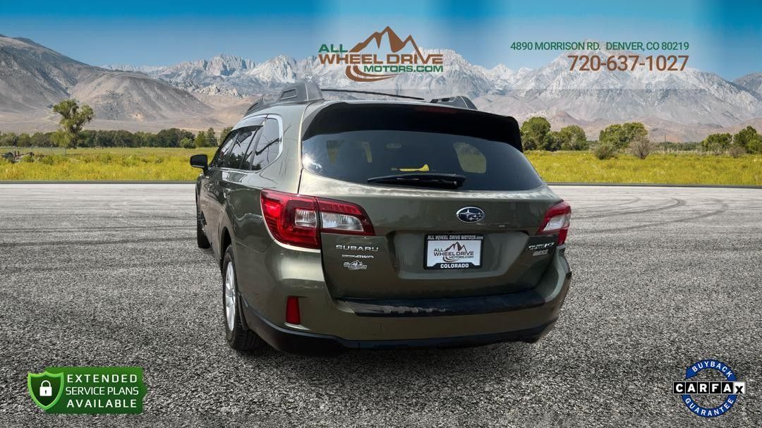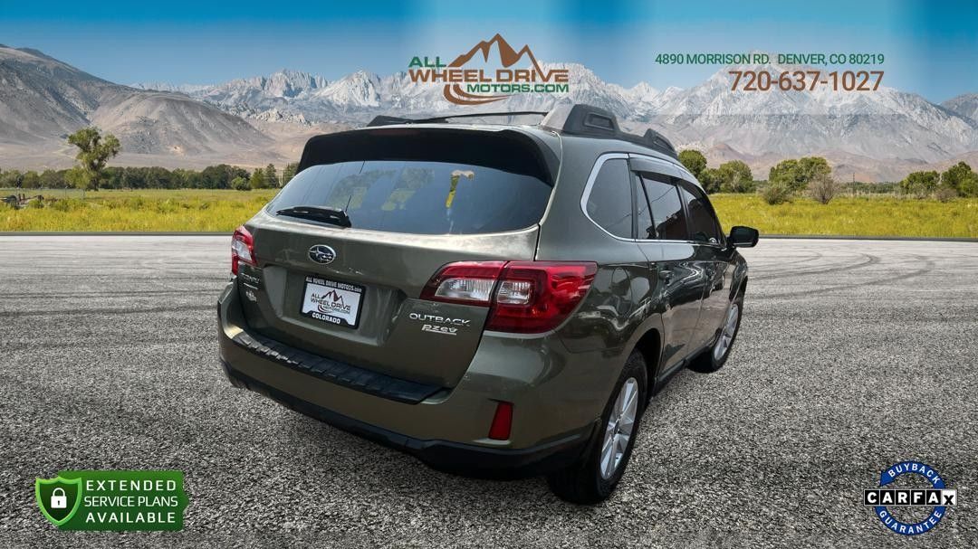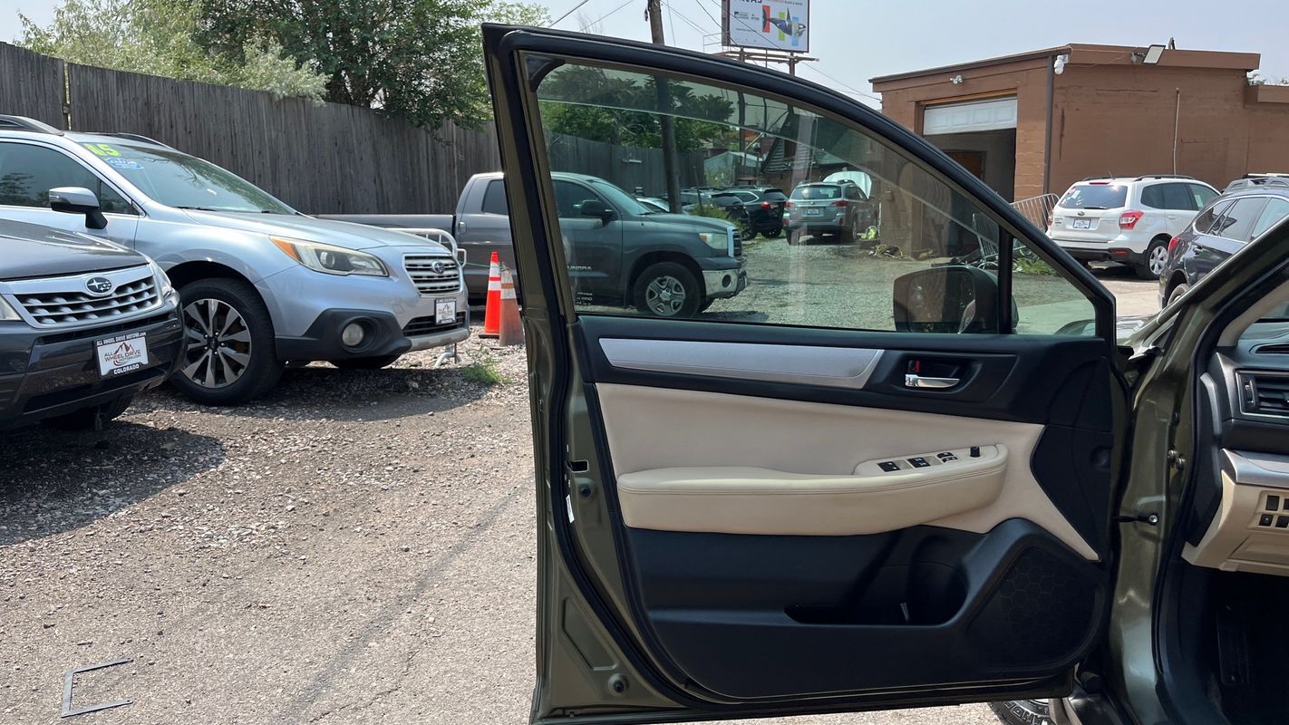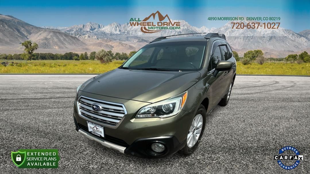 Embark on Colorado mountain trails with this 2015 Subaru Outback 2.5i Premium. This all-wheel-drive vehicle, powered by a 2.5L engine delivering 175hp, is designed for adventure. Its Wilderness Green Metallic exterior mirrors the majestic Colorado mountains, while the warm ivory interior evokes the serene sand dunes.