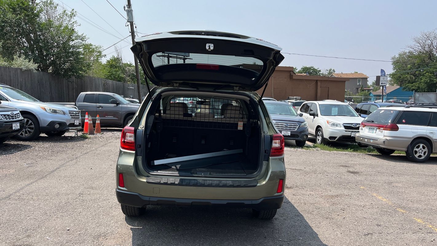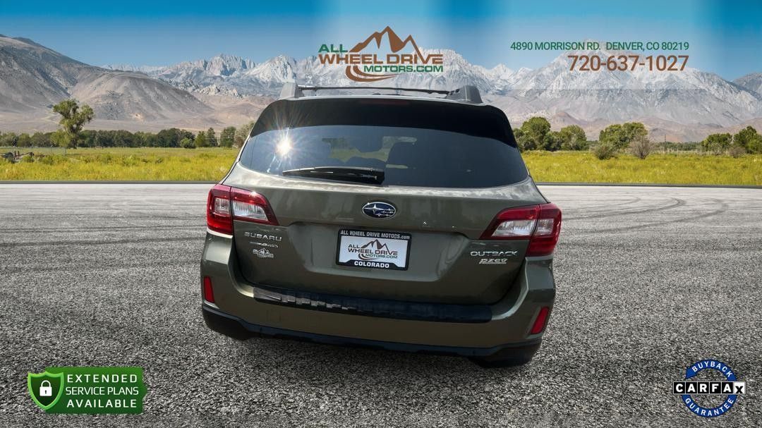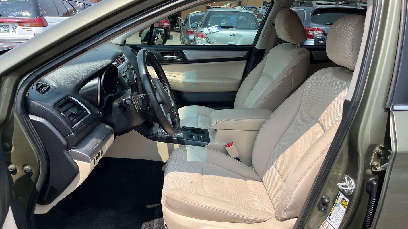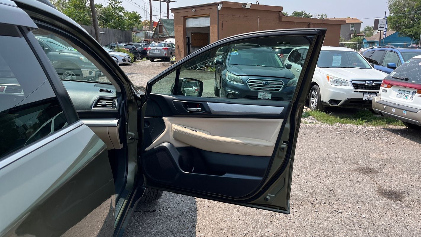 Embark on Colorado mountain trails with this 2015 Subaru Outback 2.5i Premium. This all-wheel-drive vehicle, powered by a 2.5L engine delivering 175hp, is designed for adventure. Its Wilderness Green Metallic exterior mirrors the majestic Colorado mountains, while the warm ivory interior evokes the serene sand dunes.