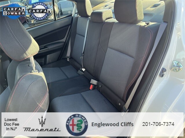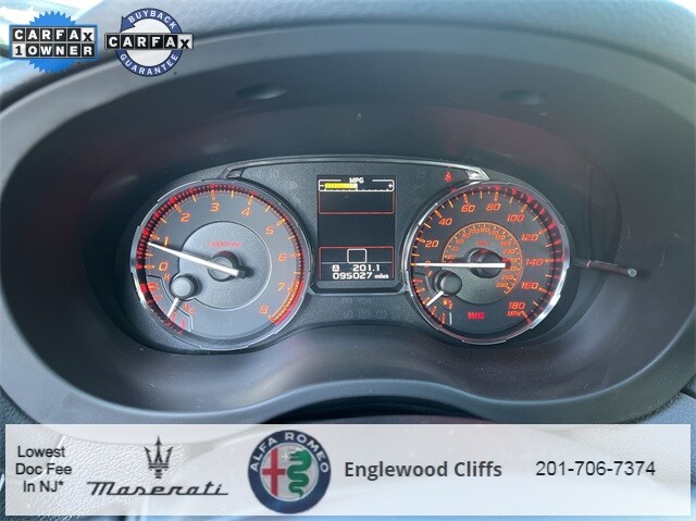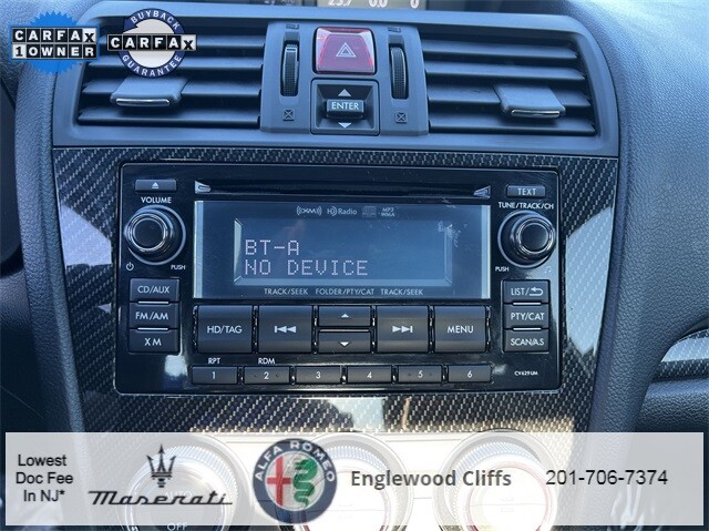 This Impreza WRX is nicely equipped with Standard Model, 4-Wheel Disc Brakes, 6 Speakers, ABS brakes, Air Conditioning, Alloy wheels, AM/FM radio: SiriusXM, Automatic temperature control, Brake assist, Bumpers: body-color, CD player, Checkered Cloth Upholstery, Driver door bin, Driver vanity mirror, Dual front impact airbags, Dual front side impact airbags, Electronic Stability Control, Exterior Parking Camera Rear, Four wheel independent suspension, Front anti-roll bar, Front Bucket Seats, Front Center Armrest, Front reading lights, Illuminated entry, Knee airbag, Leather Shift Knob, Low tire pressure warning, Occupant sensing airbag, Outside temperature display, Overhead airbag, Panic alarm, Passenger door bin, Passenger vanity mirror, Performance Design Front Bucket Seats, Power door mirrors, Power steering, Power windows, Radio data system, Radio: AM/FM/HD/MP3/WMA w/Single-Disc CD Player, Rear anti-roll bar, Rear seat center armrest, Rear window defroster, Remote keyless entry, Security system, Speed control, Speed-sensing steering, Split folding rear seat, Sport steering wheel, Steering wheel mounted audio controls, Tachometer, Telescoping steering wheel, Tilt steering wheel, Traction control, Trip computer, Variably intermittent wipers, and Wheels: 17 x 8.0J Aluminum Alloy/Dark Gray Finish.