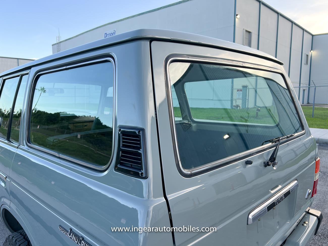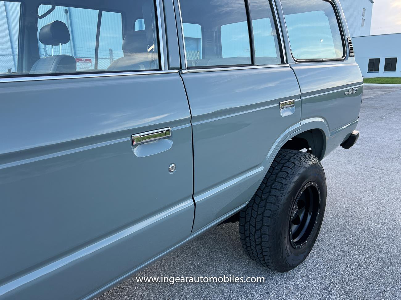 Equipped with the factory power windows option, rear power windows, air conditioning, Power steering, Power Brakes, Front Disc brakes, 4-wheel drive. This was a body off restoration. The chassis was redone in black, the whole body was repainted in Nardo Grey! Rebuilt engine and transmission, all new bolts all around, New weather stripping, suspension, gas tank, brakes and brake lines, and more! It has about 5,000KM since the restoration. Cooper All-Terrain tires. I have 100+ detailed pictures of the FJ. Call any restoration shop with labor and parts it cost over $75K to build it. All interior was redone as well. Come see it in person.