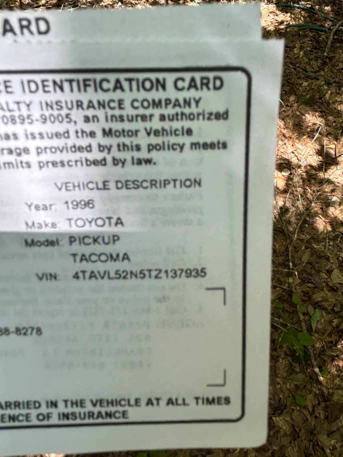 1996 Tacoma XtraCab 2.4L 4Cyl, 5spd Manual trans, Runs & drives great, cold A/C. Lots of miles, but runs like a top! Great little truck.
