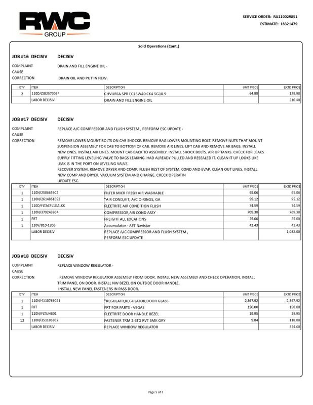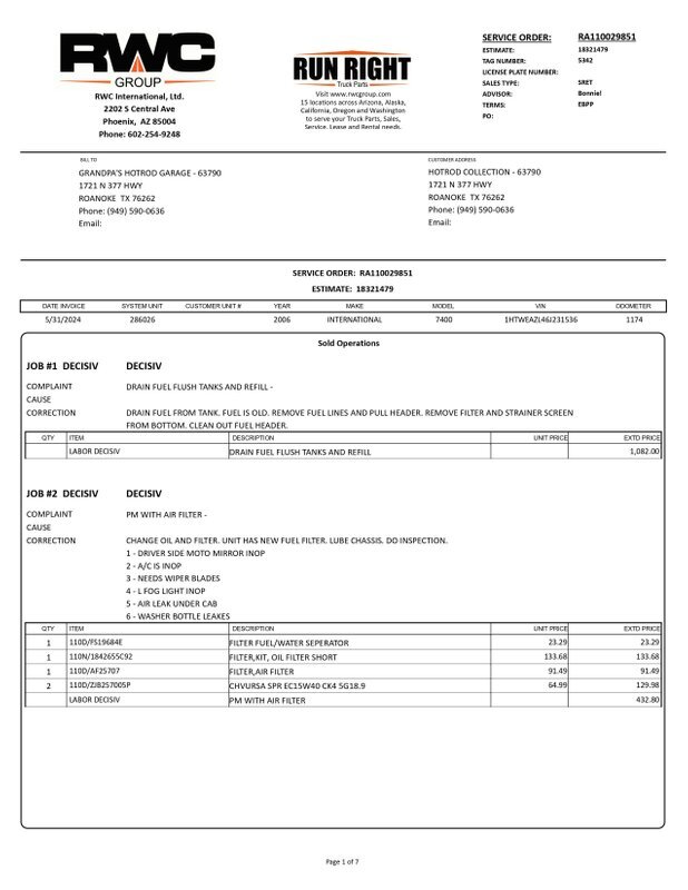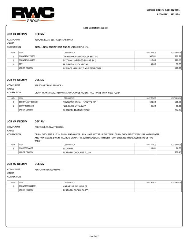 • Recently Completed Full PM-2 Service at RWC Group International Service Center