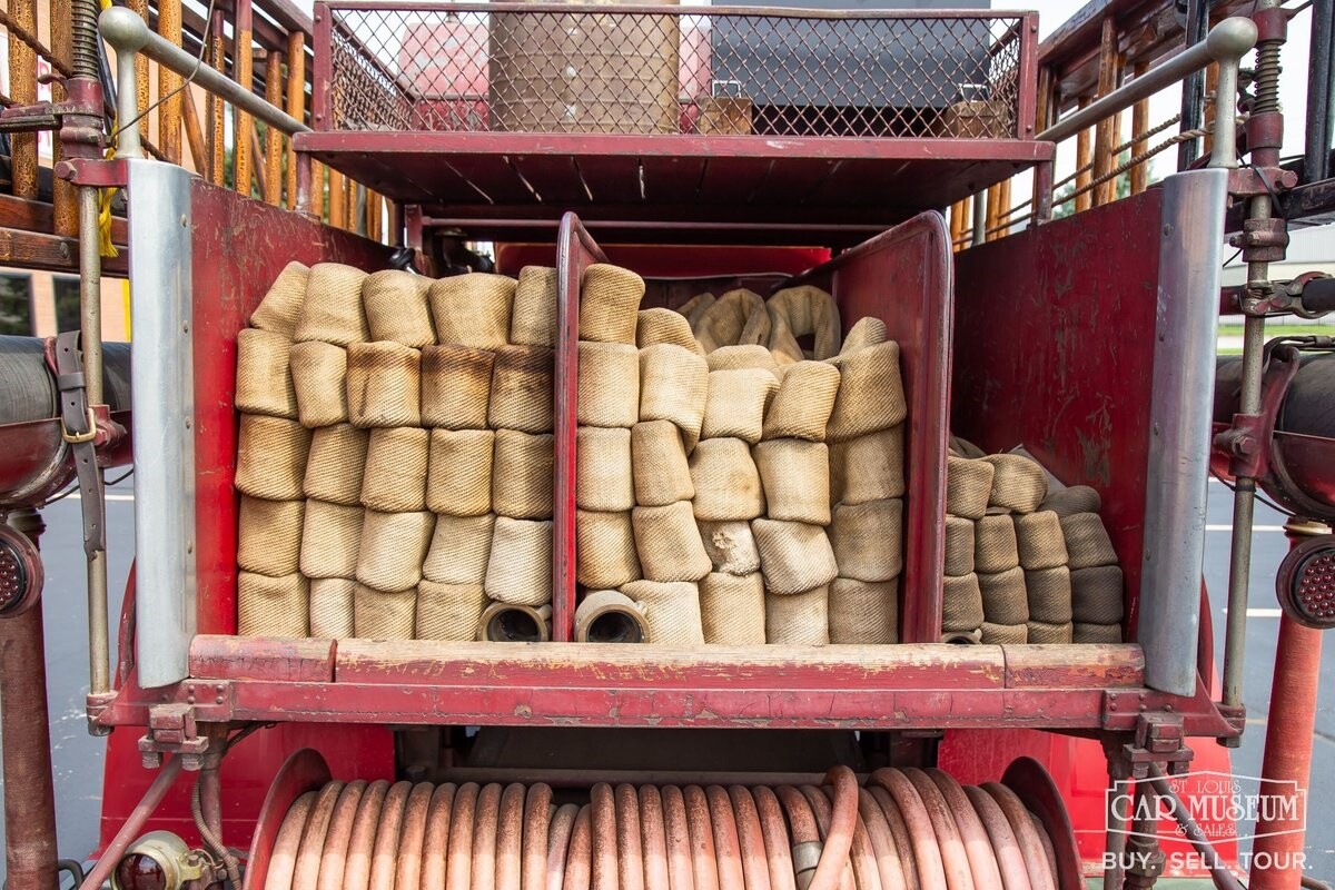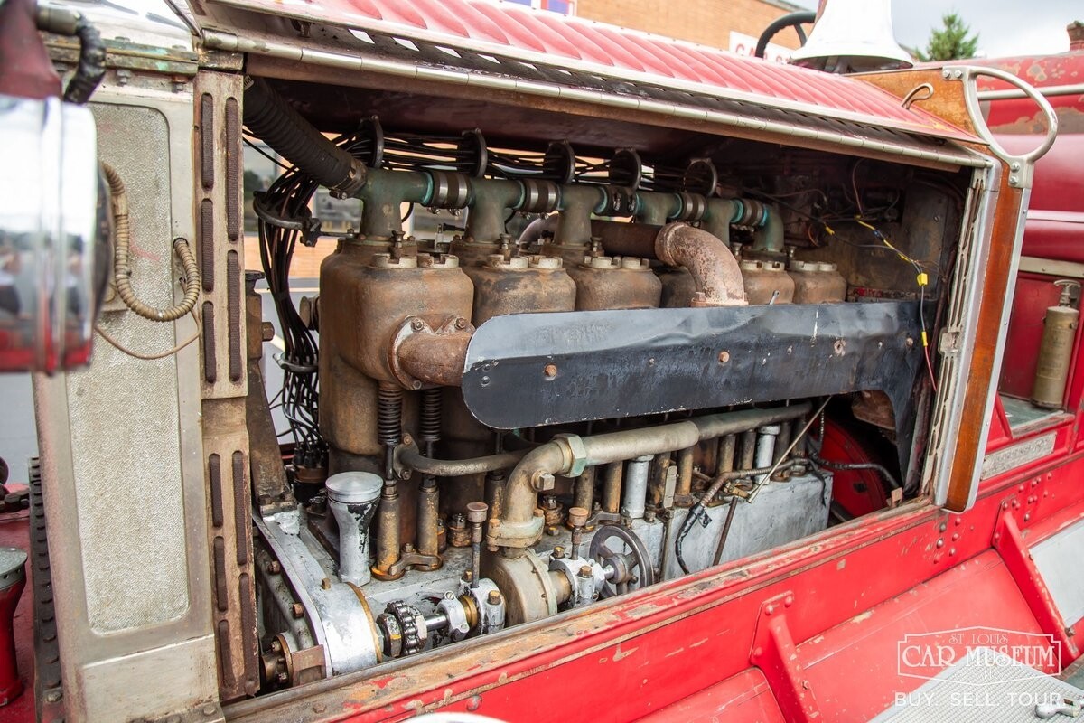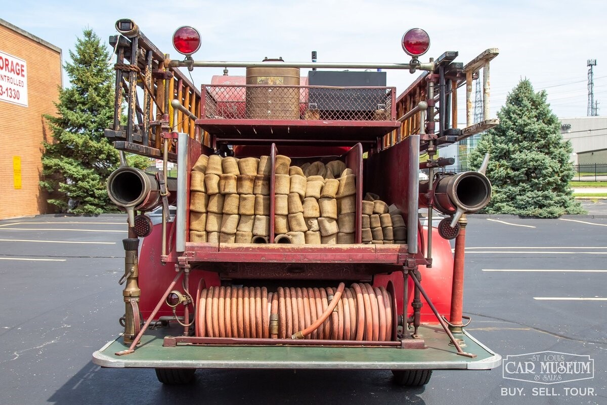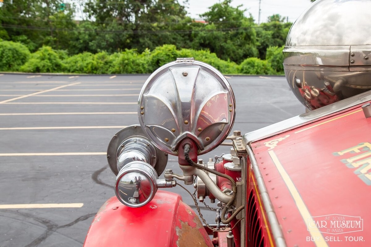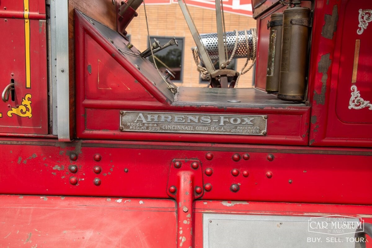 The super original example offered here is a 1928 Ahrens-Fox N-S-4 triple combination pumper powered by a 998ci T-Head 6-cylinder Super Power engine with dual exhaust valves producing 110 horsepower. It retains its Register No. 3321 identification body tags and was rated with a 1000gpm flow rate when in use. For extra starting reliability in all conditions, the factory electrical system consists of a Delco Magneto and Bosch distributor. It also features traditional right-hand-drive controls, 3-speed manual transmission, 40-gallon fuel tank, front & rear solid axles with leaf springs, and mechanical drum brakes. Apparatus equipment still retained on our well survived N-S-4 include two extension ladders, correct Ryan-Lite heads lights, forward-mounted Sterling electric siren, 12" chrome hand bell, hose bin & reel, onboard water/chemical tank, 2.5" hose, under hood service light & oiling can, 2 standard fire extinguishers (Rough-Riders), 2 small extinguishers, 2 large diameter hose hook-ups, 1 screened pick up, 4 spray nozzles, 1 spear pick, 1 pry bar, and more connections and spare pieces in the storage bins including period hand tools.