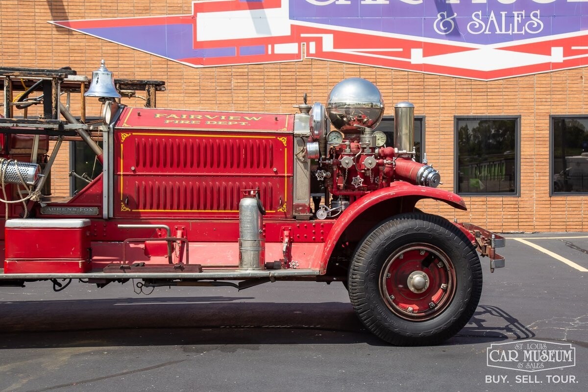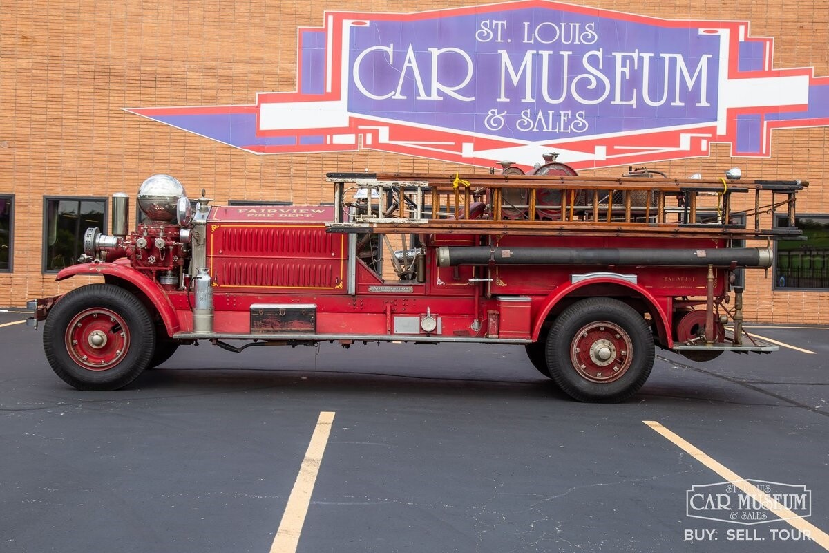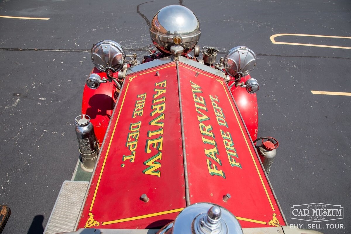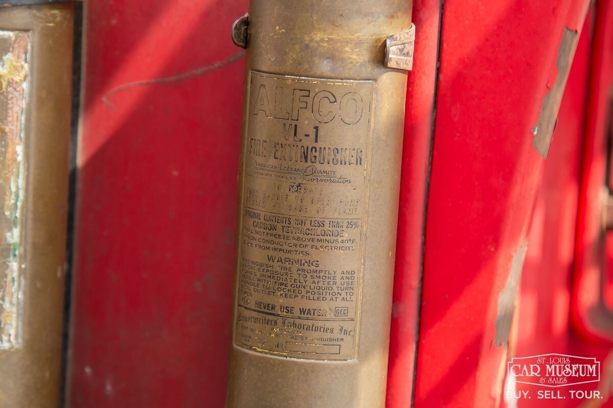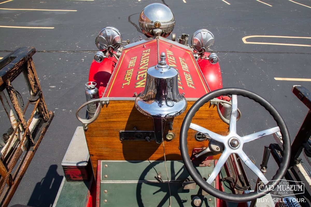The front-mounted piston pump featured the easily identifiable Ahrens-Fox spherical air chamber. Our example was placed in service as the very first motorized engine apparatus ever used by the Fairview Fire Department in 1928. The overall patina of FFD Engine No. 1 is outstanding with much of the original painted filigree details are still faintly visible on body panels and controls, along with the original wood dash, gauges, and green linoleum floor coverings. We replaced the engine oil, cleaned the fuel filter, replaced the original fan belt, & installed a new battery. It continues to start and runs wonderfully providing a robust exhaust note and massive torque! The original fuel tank appears to be in good shape inside, but it now utilizes a smaller, auxiliary fuel cell for operation. We have not made any efforts to utilize the actual pump, but it appears to be all intact like the rest of the truck. Sold on Bill of Sale. Please feel free to call with additional questions or to schedule an opportunity to inspect in person. We look forward to working with you!