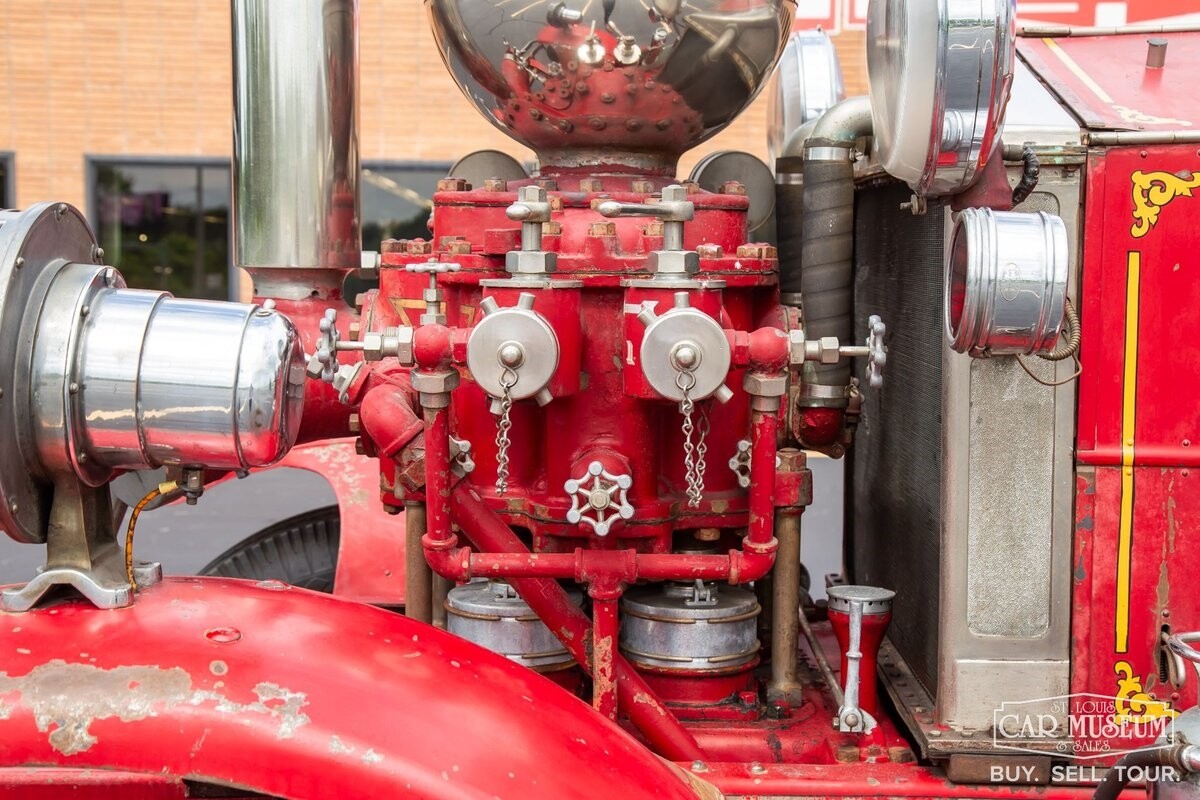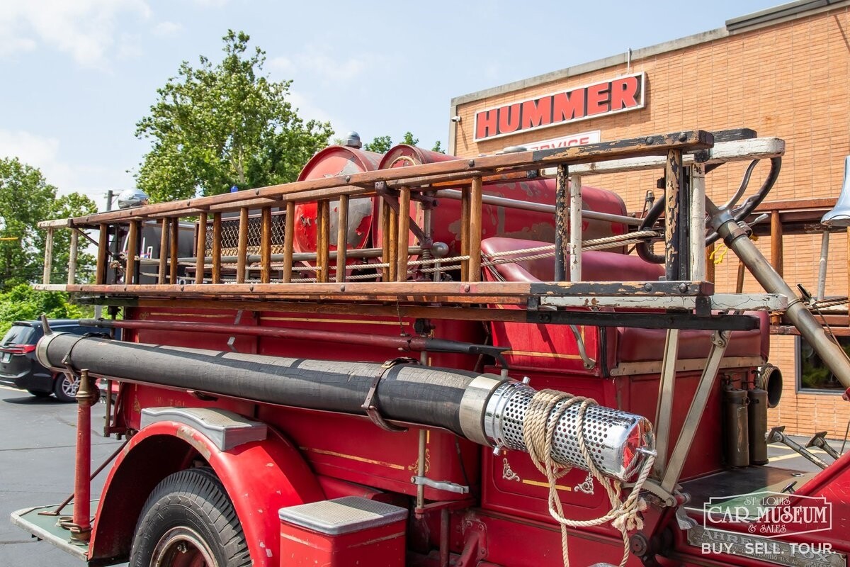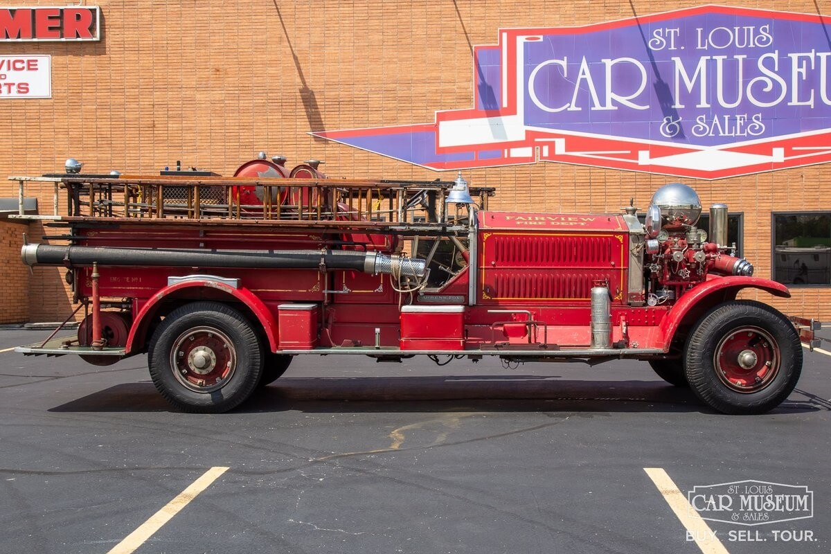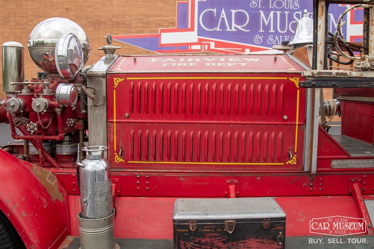 The front-mounted piston pump featured the easily identifiable Ahrens-Fox spherical air chamber. Our example was placed in service as the very first motorized engine apparatus ever used by the Fairview Fire Department in 1928. The overall patina of FFD Engine No. 1 is outstanding with much of the original painted filigree details are still faintly visible on body panels and controls, along with the original wood dash, gauges, and green linoleum floor coverings. We replaced the engine oil, cleaned the fuel filter, replaced the original fan belt, & installed a new battery. It continues to start and runs wonderfully providing a robust exhaust note and massive torque! The original fuel tank appears to be in good shape inside, but it now utilizes a smaller, auxiliary fuel cell for operation. We have not made any efforts to utilize the actual pump, but it appears to be all intact like the rest of the truck. Sold on Bill of Sale. Please feel free to call with additional questions or to schedule an opportunity to inspect in person. We look forward to working with you!