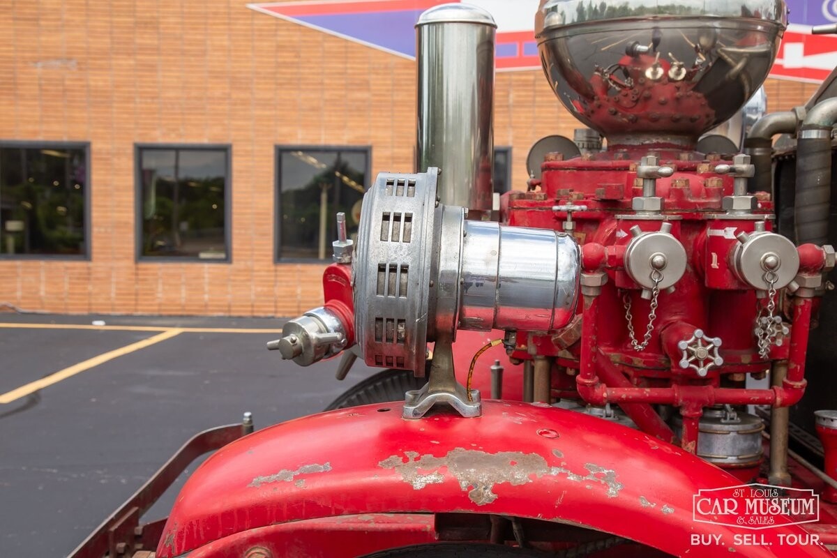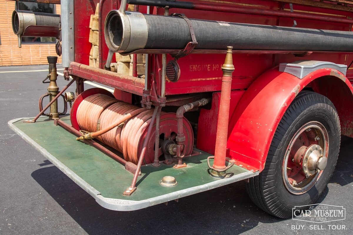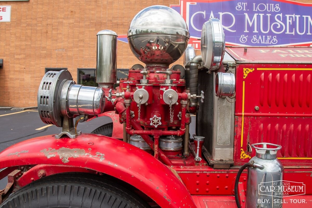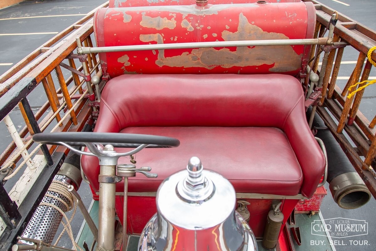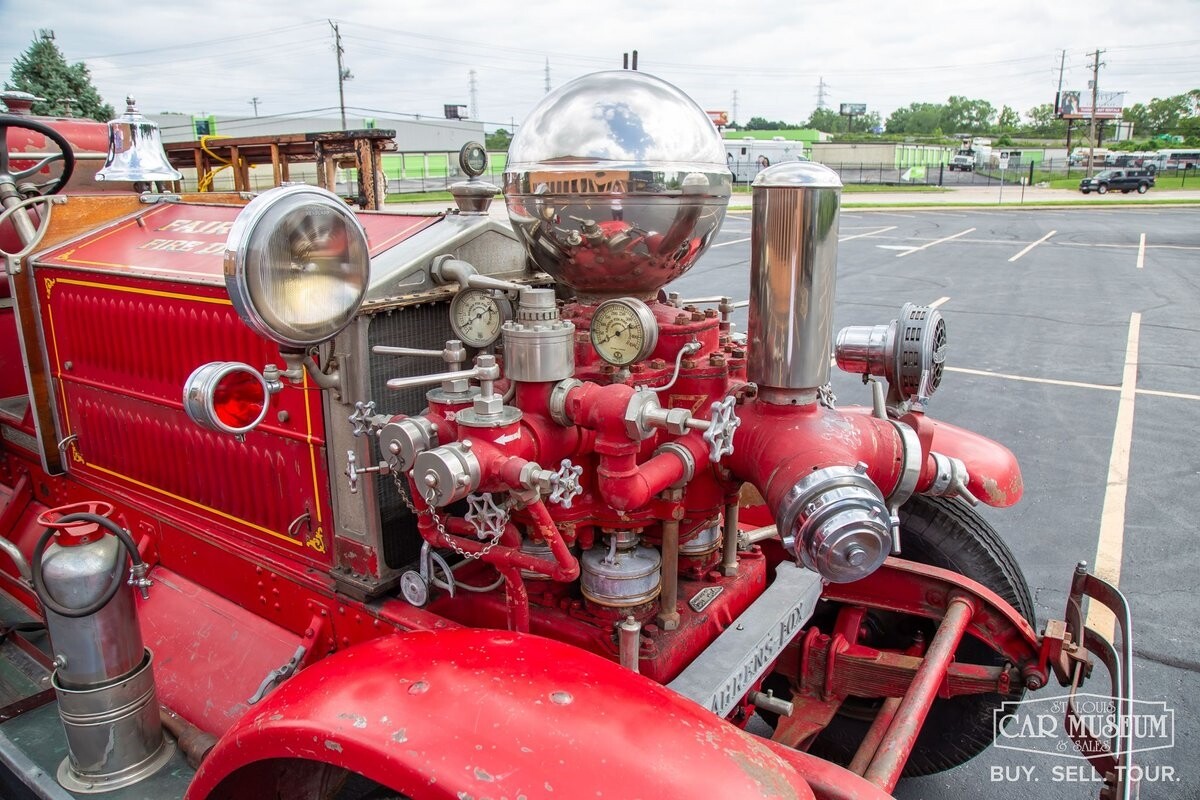 The front-mounted piston pump featured the easily identifiable Ahrens-Fox spherical air chamber. Our example was placed in service as the very first motorized engine apparatus ever used by the Fairview Fire Department in 1928. The overall patina of FFD Engine No. 1 is outstanding with much of the original painted filigree details are still faintly visible on body panels and controls, along with the original wood dash, gauges, and green linoleum floor coverings. We replaced the engine oil, cleaned the fuel filter, replaced the original fan belt, & installed a new battery. It continues to start and runs wonderfully providing a robust exhaust note and massive torque! The original fuel tank appears to be in good shape inside, but it now utilizes a smaller, auxiliary fuel cell for operation. We have not made any efforts to utilize the actual pump, but it appears to be all intact like the rest of the truck. Sold on Bill of Sale. Please feel free to call with additional questions or to schedule an opportunity to inspect in person. We look forward to working with you!