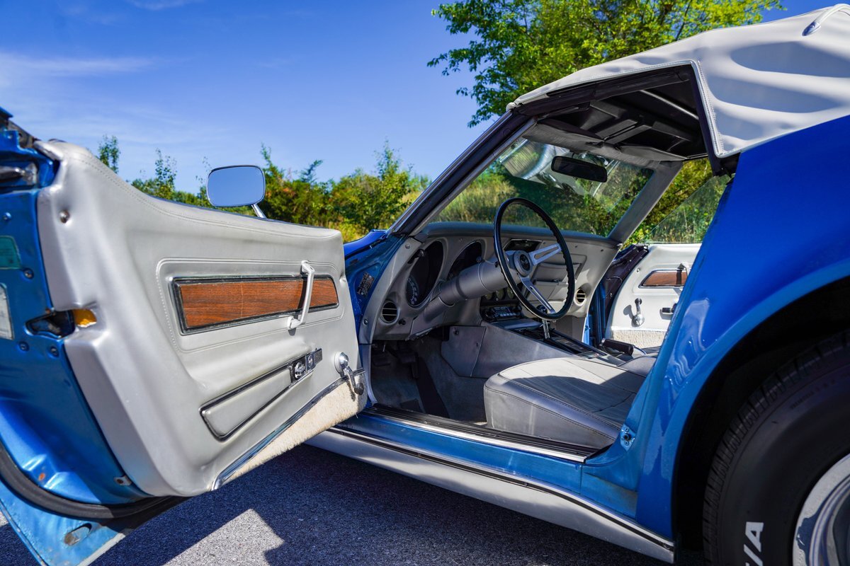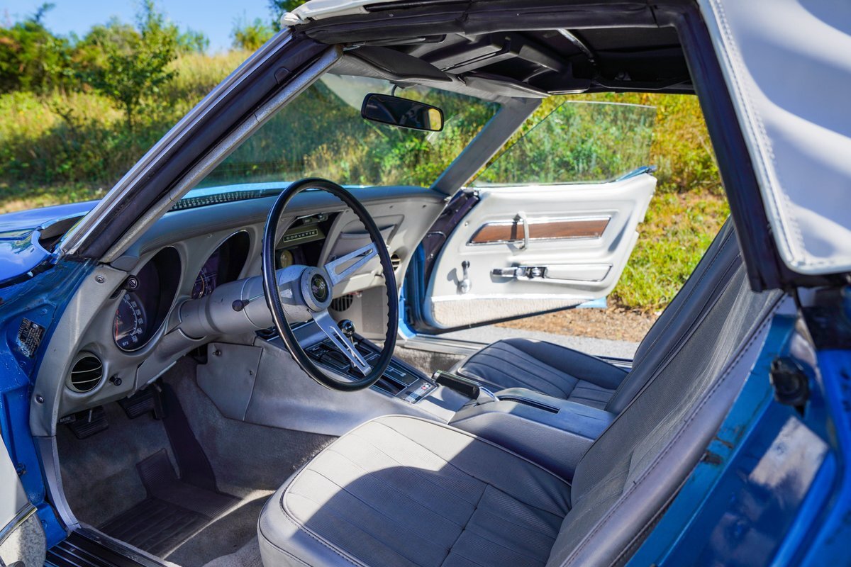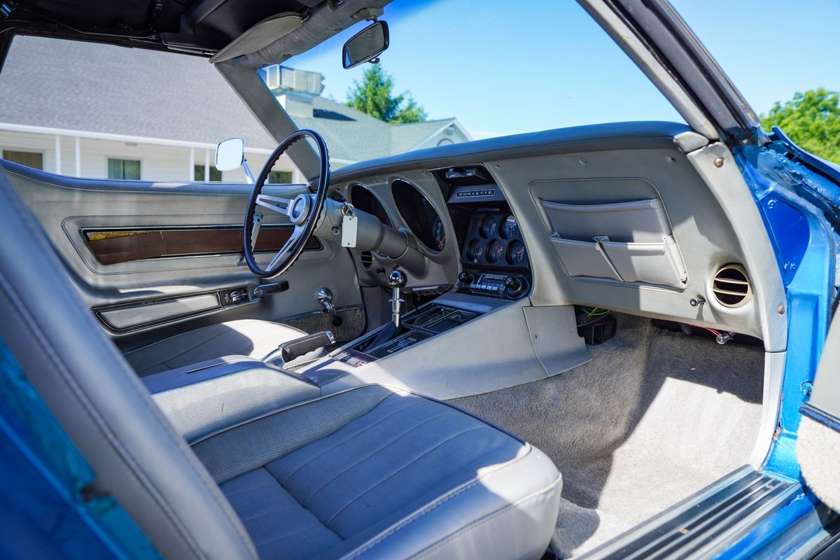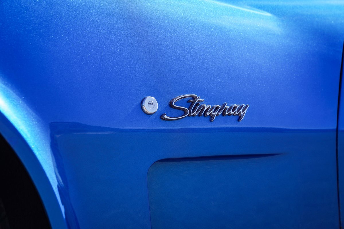 Blue with Silver Interior: The striking blue exterior paired with a sleek silver interior creates a stunning visual contrast, embodying the classic Corvette aesthetic.