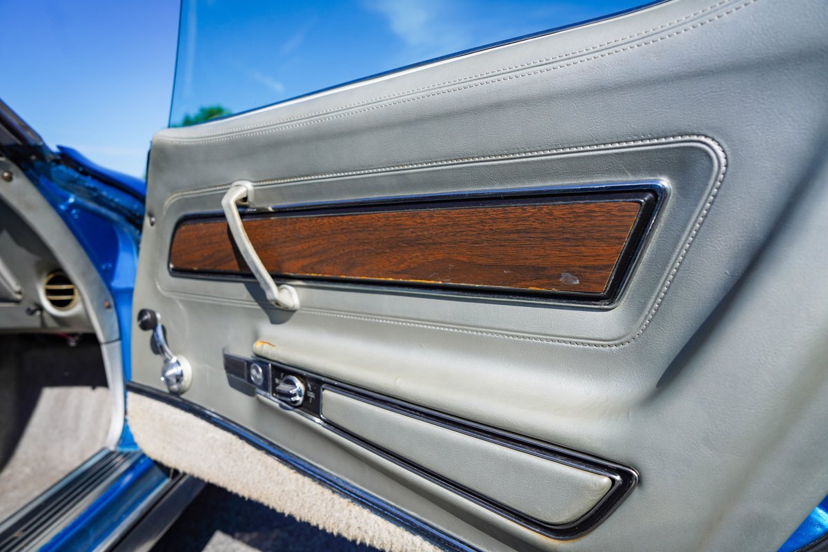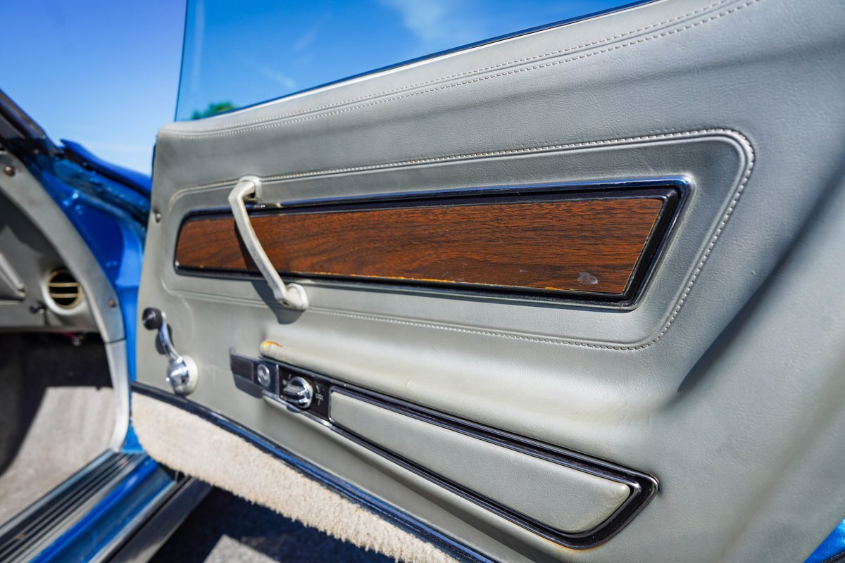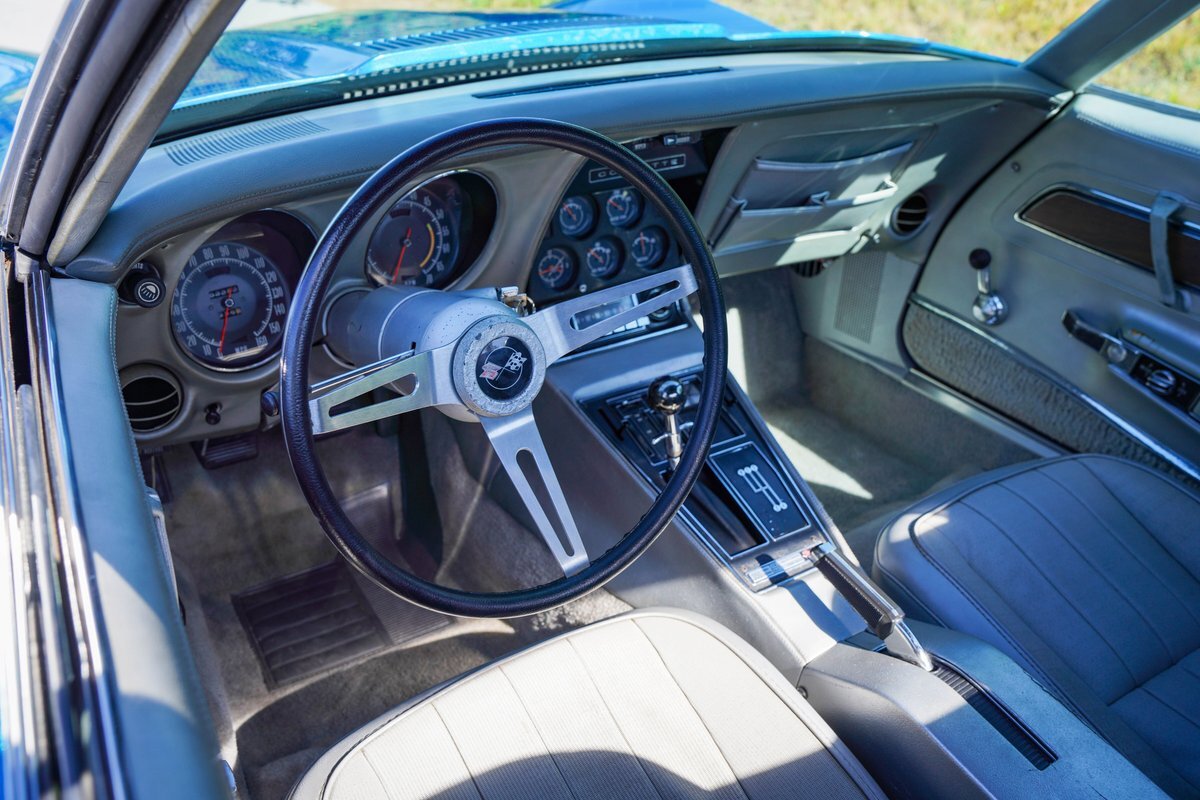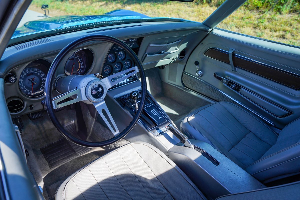 Blue with Silver Interior: The striking blue exterior paired with a sleek silver interior creates a stunning visual contrast, embodying the classic Corvette aesthetic.