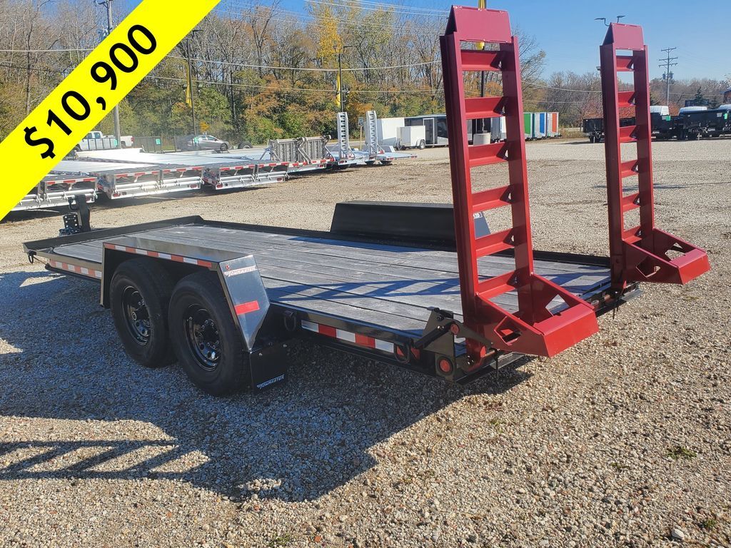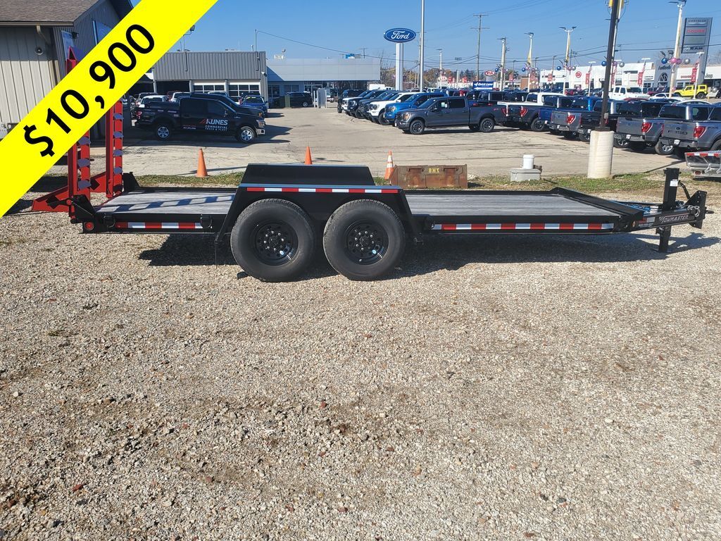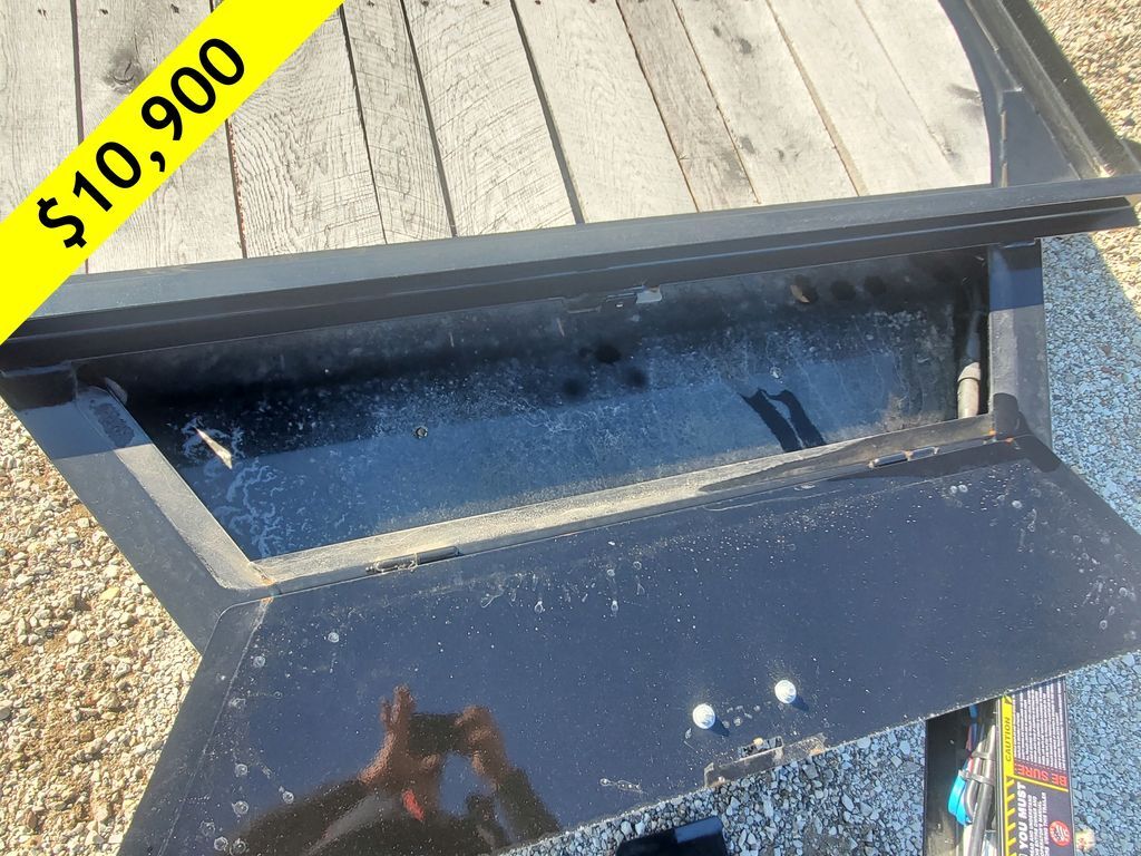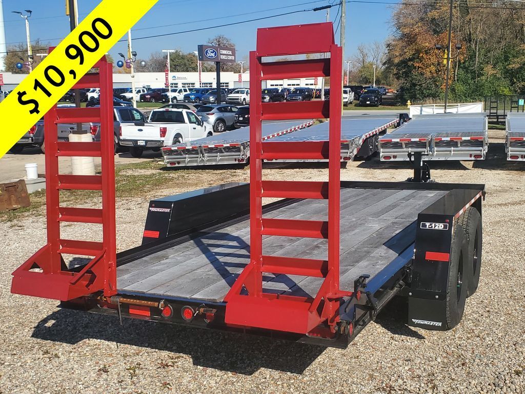 2022 Towmaster T-12D Pintle hitch (adjustable height). Battery break-away with tow charger. 2 nominal white oak wood deck. 6 I-beam frame/tongue (formed). 3 Jr-Ibeam Crossmembers. 24 deck height (empty). 82 between fenders. Rubber torsion axles. Heavy-duty Towmaster fenders. Ladder-style ramps. Auto-Latch ramp hold-ups. LED lights.