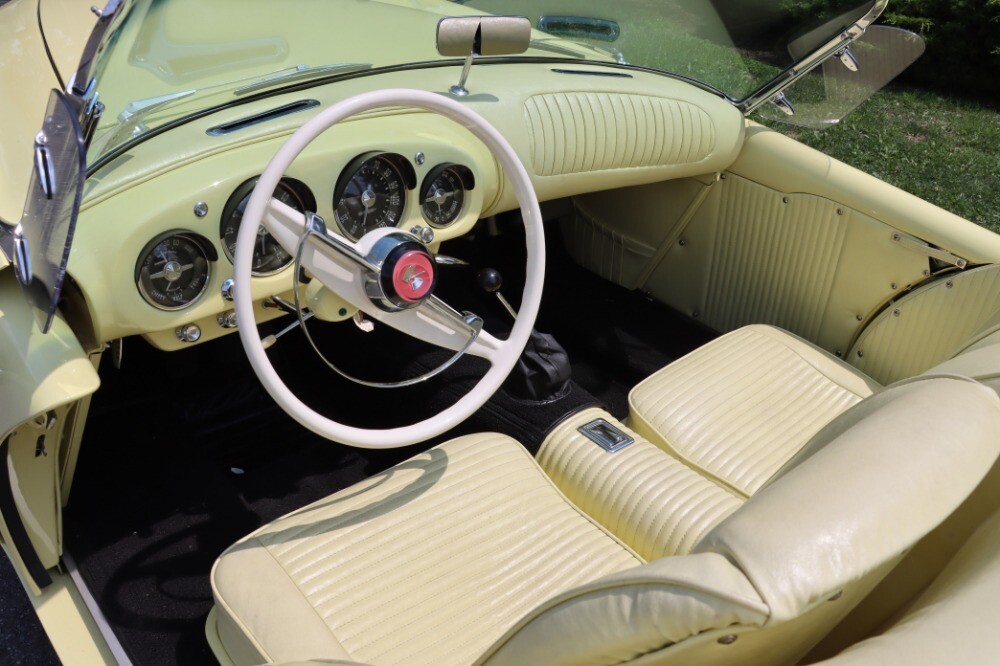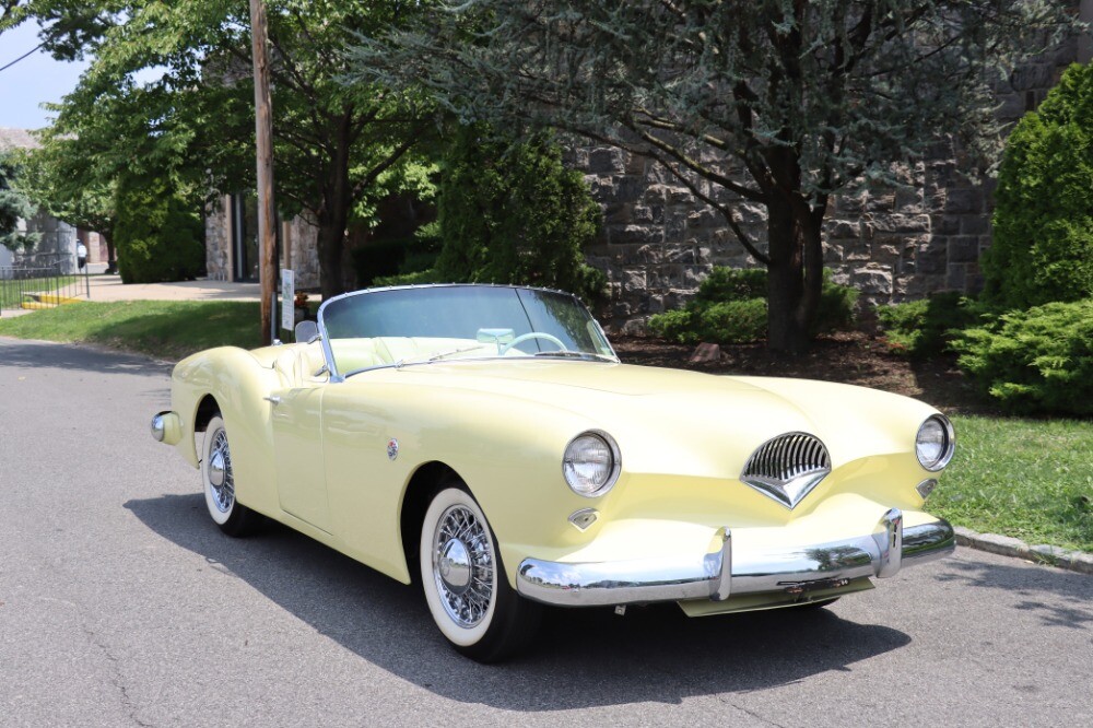 This 1954 Kaiser Darrin is a beautifully restored driver that's ready to be enjoyed by its next loving owner. Yellow with yellow interior. Inline 6-cylinder with 3-speed manual gearbox with overdrive. Offered with soft-top and side windows. This Kaiser Darrin starts right up and drives great. Subject of an older restoration. It wears excellent paint, chrome, and interior. Very clean and solid undercarriage as well. Excellent fiberglass body. The pocket doors slide and operate as they should. Beyond the sweeping profile and heart-shaped grille, the fiberglass-bodied Darrin was most famous for its pocket doors that disappeared into the front fenders on sliding tracks. Just 435 of these stunning cars were built and they were all sold as 1954 models, making them both rare and desirable. An incredible opportunity to enjoy a rare and iconic American sports car. With so few examples left in existence, this lovely example is sure to command attention. Ready to drive or show.