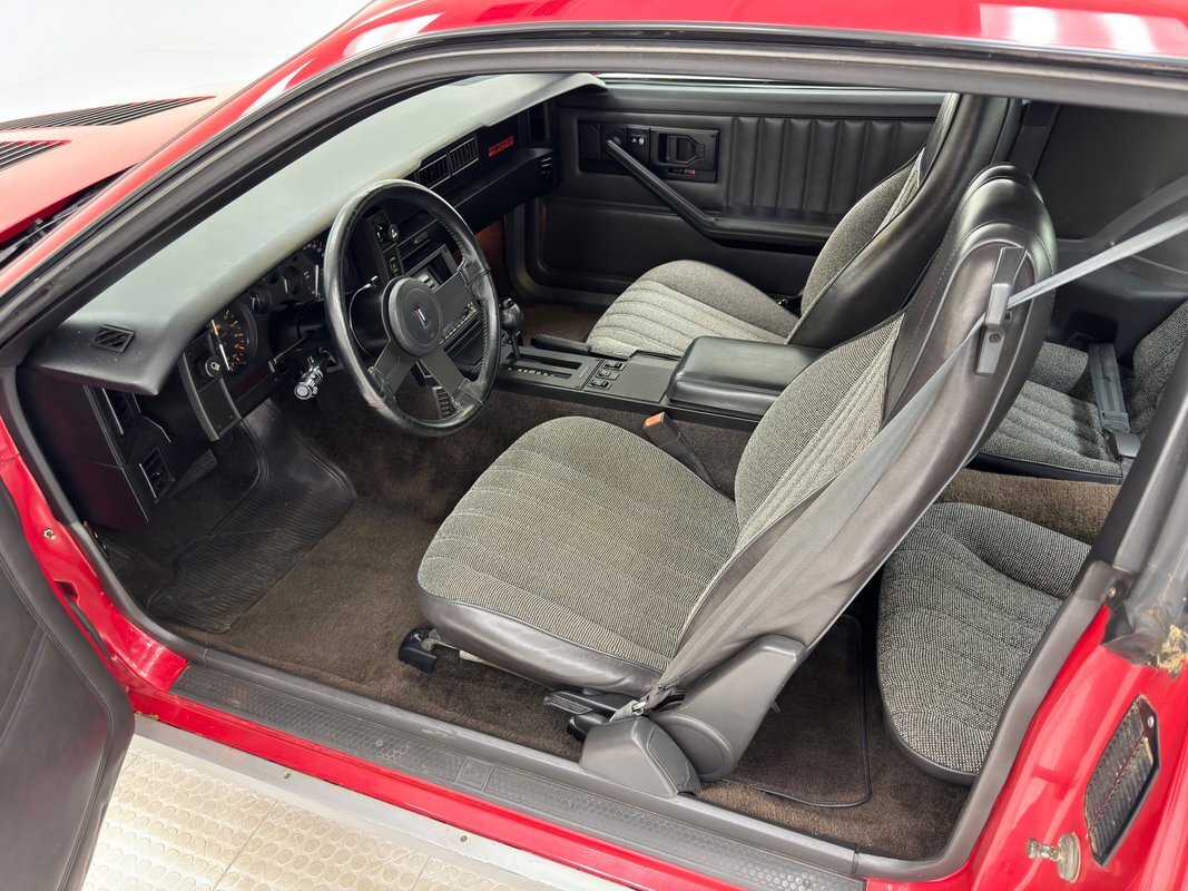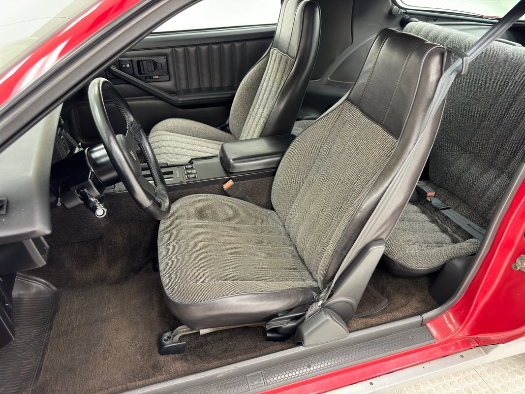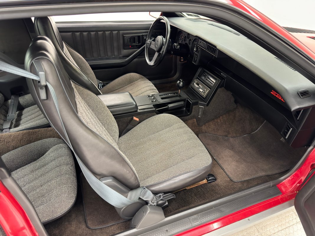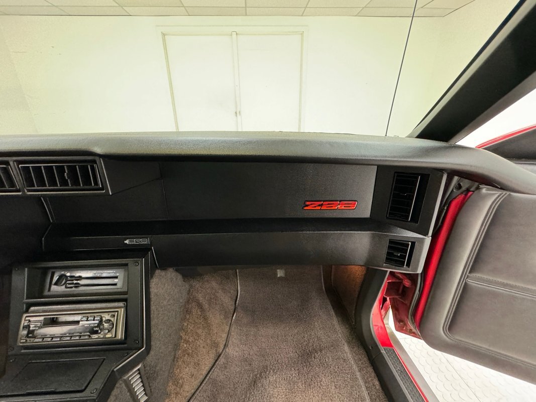 Distinctive deep set headlights in a black lined box along with the gray rocker panel that encircles the car help identify the car as a Z28. There's also those familiar hood vents and a low wing on the decklid, as well as 15-inch 5 spoke wheels that were specific to the Z28. If you wanted a Camaro in 1984 and could afford the insurance, the Z28 was the one to have, and more than 100,000 people signed on the dotted line. Our car is Classic Red and sports a red and maroon stripe over the gray and Z28 badges on every side but the front. Curved rear glass and black trim on the taillights provide a nice view for those behind you and side molding protects your door from those to the side. Overall, the car is in great shape on the outside with imperfections that include scraps on low hanging pieces, discoloration on a fender panel, a long, thin dent under molding on a door, chipped or missing paint on the gas door, and cracking paint on the bumper cover.